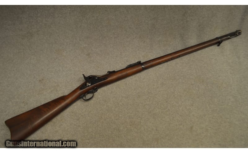 Description: For your consideration is a Springfield Armory 1884 Trapdoor rifle chambered in .45-70 Govt. This rifle retains much of it's reblued finish with the exception of a polished breech block and towards the muzzle. The bore on this rifle is shiny with strong rifling with the exception of some pitting and erosion towards the muzzle. The stock rates very good with various different marks on it one reading "13 NY" and "1892". .45-70 Government SOLD Antique: Yes Metal Condition: Very Good Wood Condition: Very Good Bore Condition: Good Barrels: 32 Weight: 10.2 lbs Item Location: Berlin |