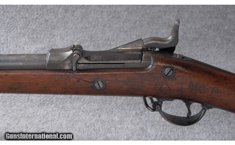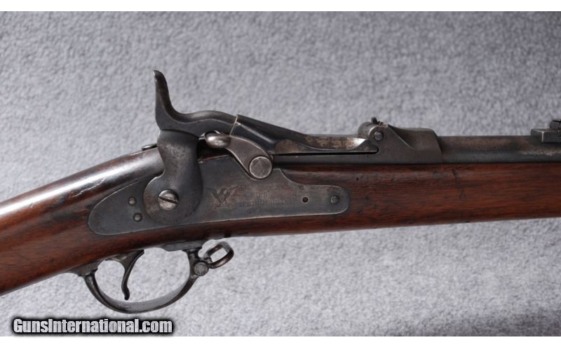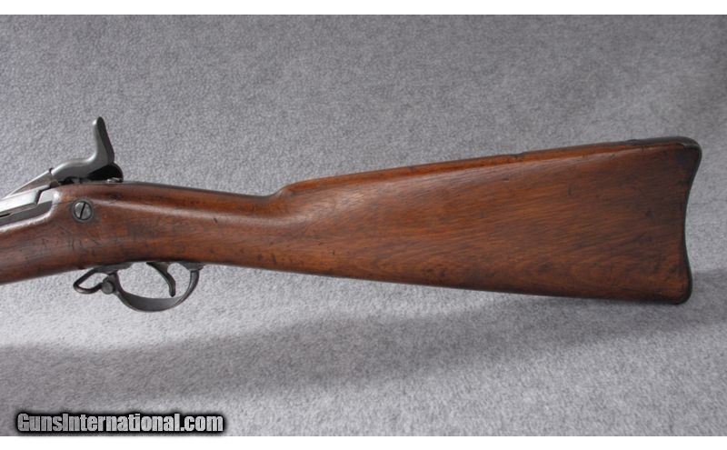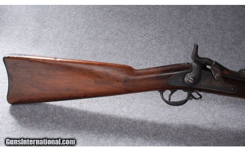 Description: SOLD Caliber Info: .45-70 Gov't. Metal Condition: Patina Wood Condition: Contact and handling marks commensurate with age Bore Condition: Dark with visible rifling Barrels: 32 Stock: Straight grip walnut Stock Dimensions: 13 1/4" LOP Fore End: Full length. Walnut. Butt Pad: Steel butt plate. Weight: 9 Lbs. 1 Oz. Sights: Rear ladder sight. Front blade. Item Location: Billings, MT |