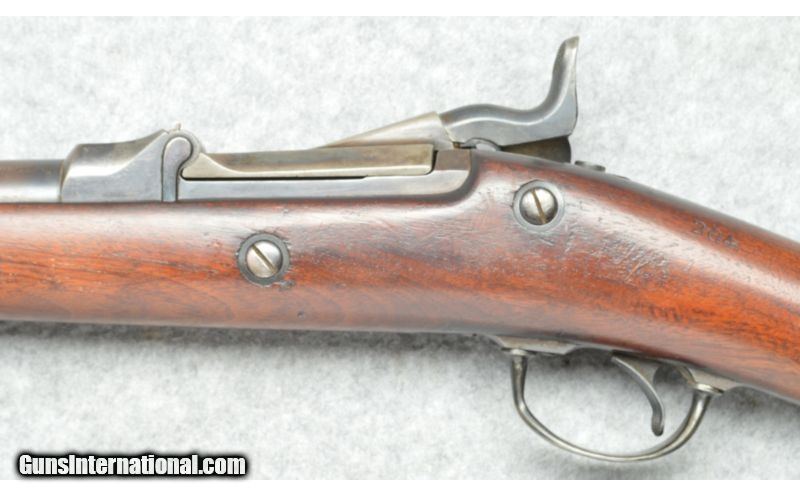 Description: SOLD Antique: Yes Manufacturer: 1886, this is an Antique. Caliber Info: .45-70 Govt. Chambers: Breech load trapdoor single shot. Metal Condition: Good. Wood Condition: Good. Bore Condition: Good. Barrels: 29 1/2 inch round blued rifled barrel. Triggers: Single stage trigger, hammer has half cocked safe position, mid position for loading, and unloading and full cocked to fire. Stock: Smooth wooden stock with the English style straight wrist. Stock Dimensions: 13 1/4 inch length of pull. Fore End: Long straight smooth wooden fore-end is integrated with the stock. Butt Pad: Contoured steel butt plate. Weight: 9 pounds. Sights: Blade sight at the muzzle, 8279 rear sight. Item Location: Berlin, MA |