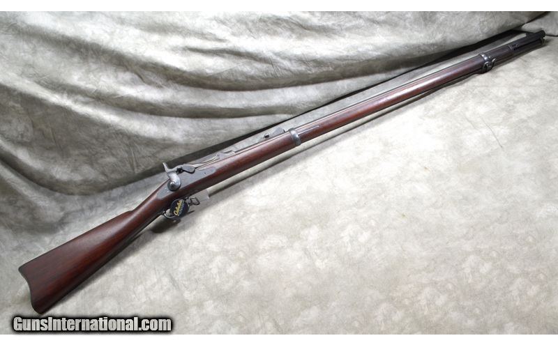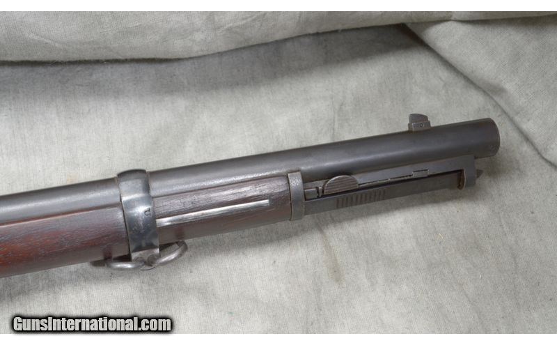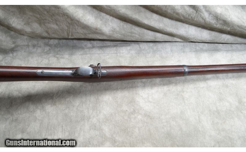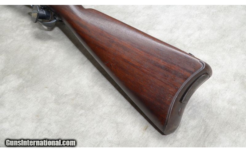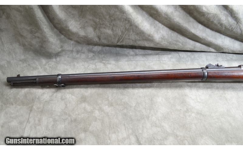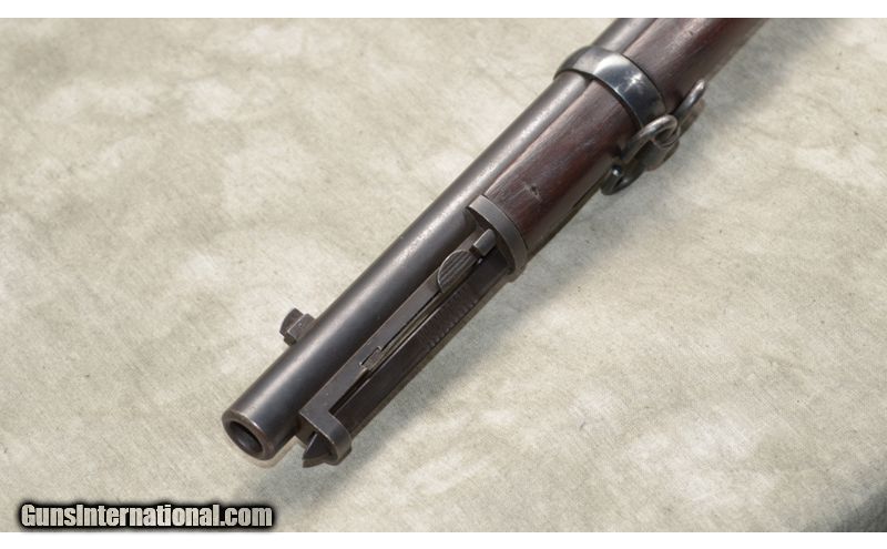 Description: This is an odd variant of the 1873 Trapdoor in that it has an integral bayonet that slides forward from a groove in the stock. It has good blue and some of the case color is still evident. The engravings are all legible and sharp. The stock appears to have been sanded so the cartouches are quite thin. SOLD Antique: Yes Chambers: Single Shot - Trapdoor. Metal Condition: Very good. Good blue and some of case color is still visible. Some pitting but very little considering the age of the gun. The engravings are all sharp and clear. Wood Condition: Good. ood appears to have been sanded and the cartouches are quite thin. Barrels: "32 inch, blue with integral bayonet that telescopes into the stock. Triggers: Factory trigger. Stock Dimensions: 13 -1/4 Inch LOP. Butt Pad: Curved steel plate. Sights: Post and ladder type military sights. Item Location: christiana |