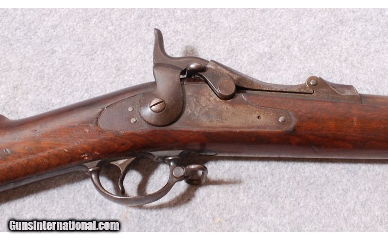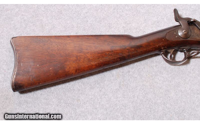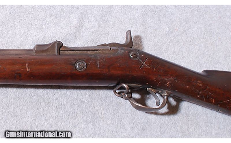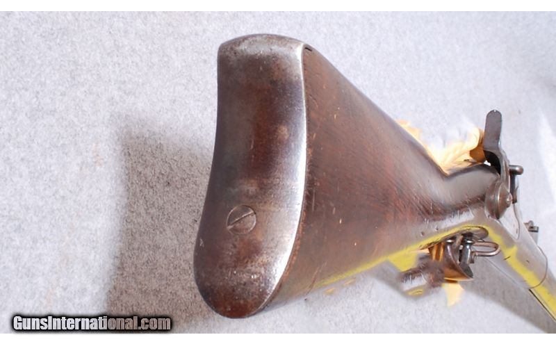 Description: First issued in 1873, the "Trapdoor" Springfield rifle served with American forces all the way up to the Spanish-American War. This example, manufactured in 1884, is in very good condition with an excellent, shiny bore. Whether an admirer or a shooter, this will make a fine addition to your collection. .45-70 Government SOLD Antique: Yes Chambers: .45-70 Government Metal Condition: Patina on all exposed surfaces. Wood Condition: "Scratches, dents, and wear commensurate with age and wear. There is an 'X' scratched in just below the lock on the left side. Bore Condition: "Amazingly, it is shiny. There is some wear evident, but it is in surprisingly good condition. Barrels: 32.5 Triggers: Factory Stock Dimensions: 13" Length of Pull Fore End: Wood Butt Pad: "Steel, as issued Weight: 7 lbs Sights: "Graduated Rear, Barleycorn Front Item Location: Rapid City, SD |