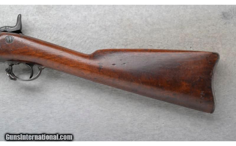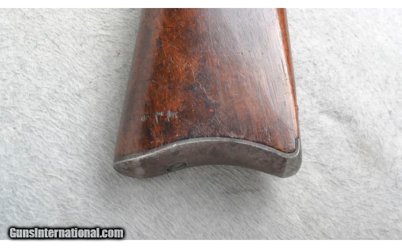Description: This Springfield Model 1873 U.S. is a single shot breech loading trapdoor design rifle in .45-70 Gov't. Cal. It has a 32.5 inch barrel. A blade front sight and an adjustable middle sight. The buttstock is a smooth grip walnut straight grip. The forearm is a smooth grip walnut. Serial number 42778. .45-70 Government SOLD Chambers: Single Shot. Metal Condition: Fair. Has freckling and wear. Wood Condition: Fair. Many handling use marks. Bore Condition: Good. Barrels: 32.5 inch. Stock Dimensions: LOP 13 1/4 inches. Fore End: Smooth grip walnut. Butt Pad: Curved steel plate. Weight: 8 lb. 8 Oz. Sights: Blade front. Adjustable middle. Item Location: Richfield, WI |