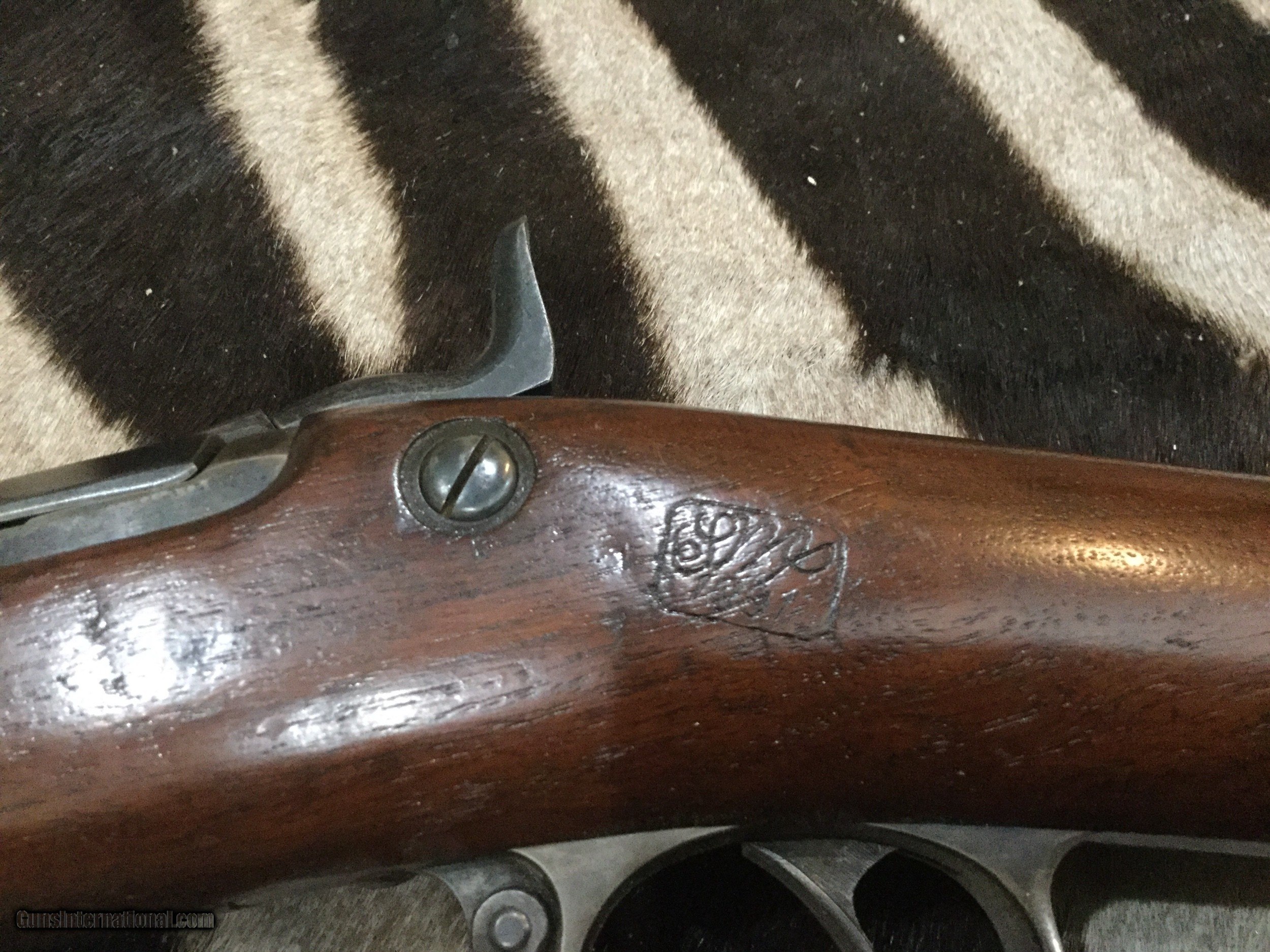 Description: Springfield model 1884 trapdoor 45-70 rifle in amazing 80% original condition with some case coloring left on the metal. Round-rod bayonet version with proper US stamping on the metal and wood. SOLD SOLD Manufacturer: Springfield Model: 1884 Caliber Info: 45-70 Condition: Original Metal Condition: 85% Wood Condition: 80% Bore Condition: 100% Action: Trapdoor |