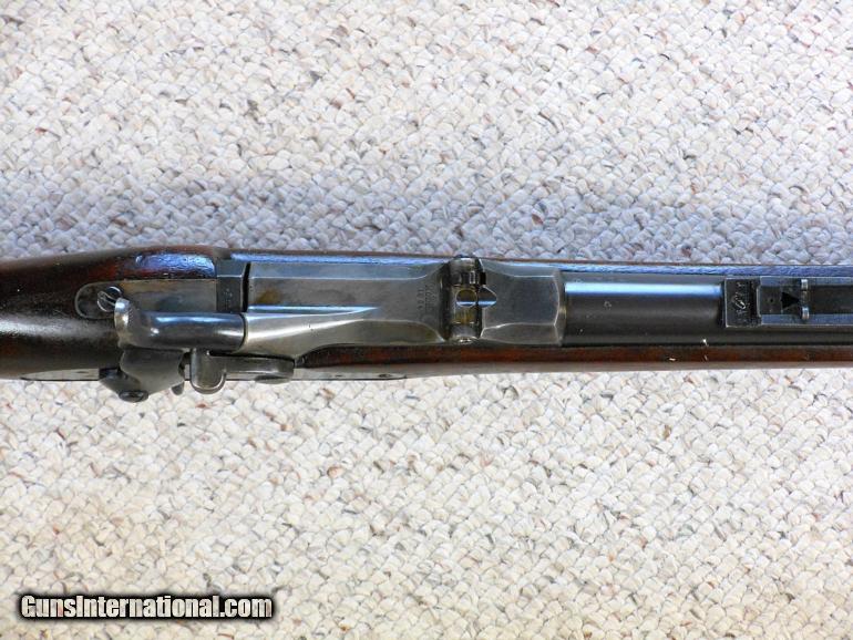 Description: The stock is dated 1891. The wood has a few storage marks. There are no cracks or splits on the stock. The varnish is intact and the government marks and inspection stamps are clear and easy to read. The rod bayonet is original and in clean condition. The blueing is about 96% condition. The color case on the breech block and tang is visible. The bore is bright and clean. The trap door in the butt plate has the original tools as issued. Consisting of the model 1879 combination tool, the wiping tip and the model 1882 headless shell extractor. The musket also has the original sight hood protector. The action works correctly with no problems. This musket is in it's original as issued condition. These model 1888 rod bayonet models are not often seen in nice original condition. Would look great in any collection! Search for Harry Viezens on google. Antique BEEE SOLD Antique: Yes |