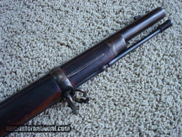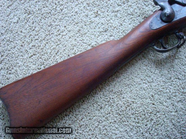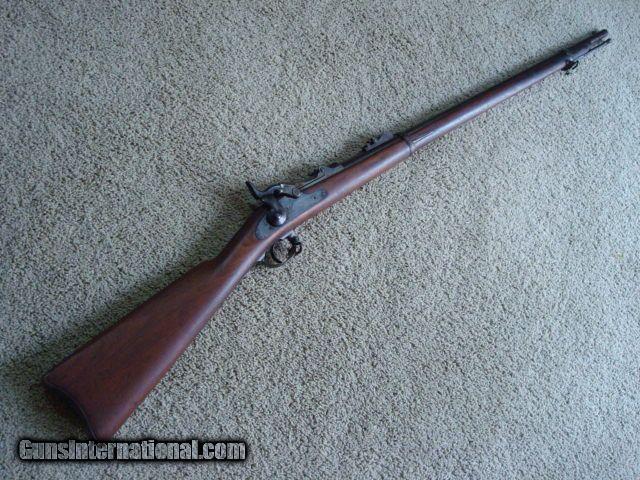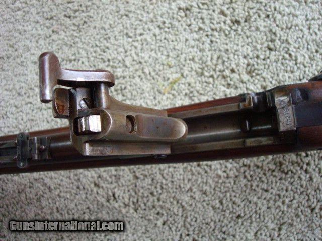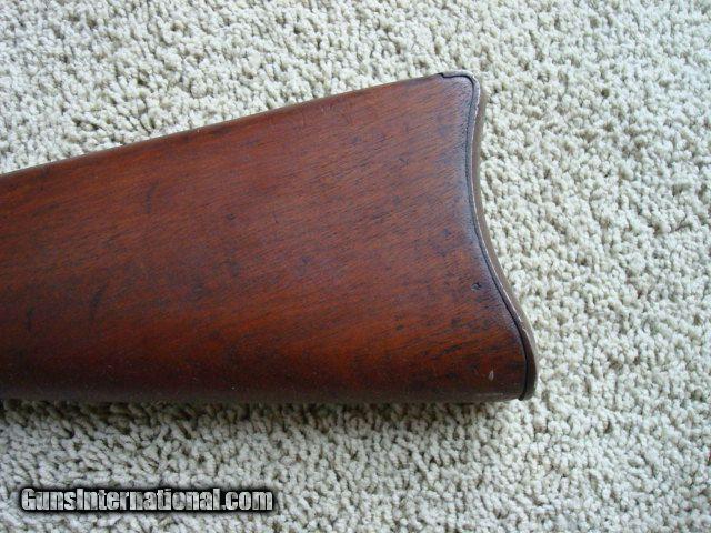 Description: 1873 infantry musket, ladder sight, inspect cartouche' 1881 refurb, Star marking on breach. Nice shootable bore. All in all a very nice honest Trap Door. Buyer pays only exact freight from zip code 59044. SOLD |