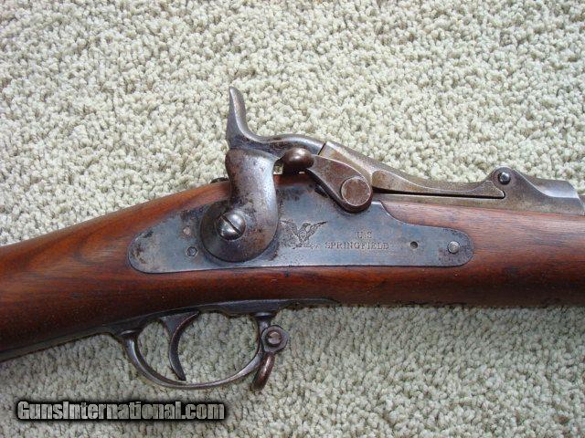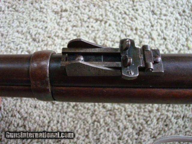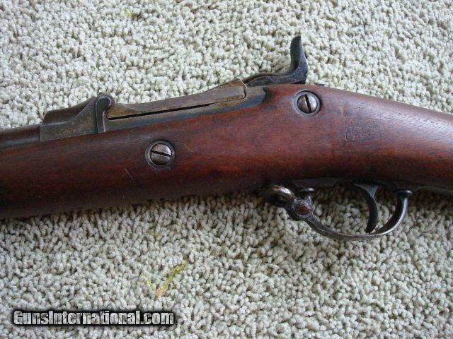 Springfield Trapdoor 1873 infantry musket, ladder sight, inspect cartouche' 1881 refurb, Star marking on breach.