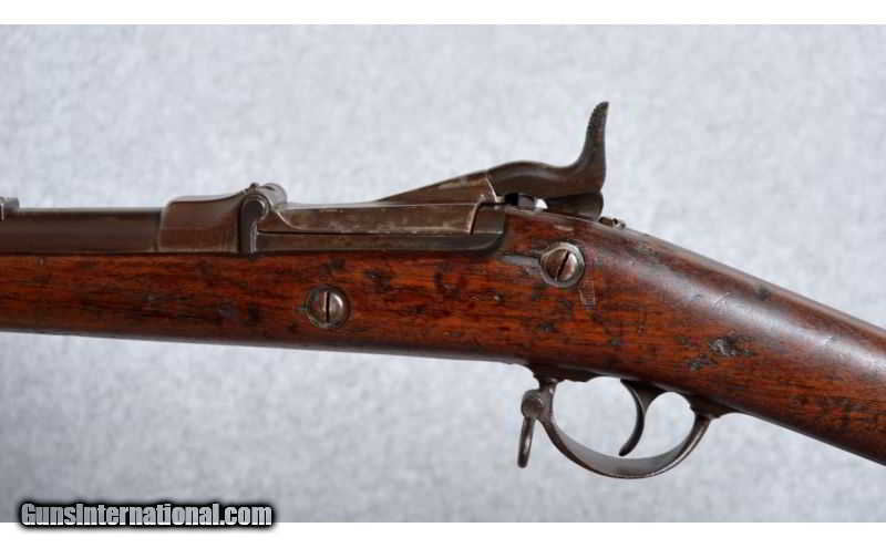 Description: SOLD Antique: Yes Manufacturer: The lock plate is stamped 1884 and the breech block is stamped Model 1873. S# 41234 Caliber Info: .45-70 Government Chambers: 41234 Metal Condition: Frosted with very dark patina throughout. Wood Condition: Fair, has lots of scratches and dings. Bore Condition: Fair, still shiny but has light corrosion with some pitting. Barrels: 29 1/2 Stock: Walnut. Has remnants of the cartouche but it is unreadable. Stock Dimensions: 13 1/2" length of pull. Weight: 8 1/4 lbs. Sights: Period correct 1884 Buffington (3rd type), elevation and windage adjustable rear sight, and a blade front sight. Item Location: Boise, ID |