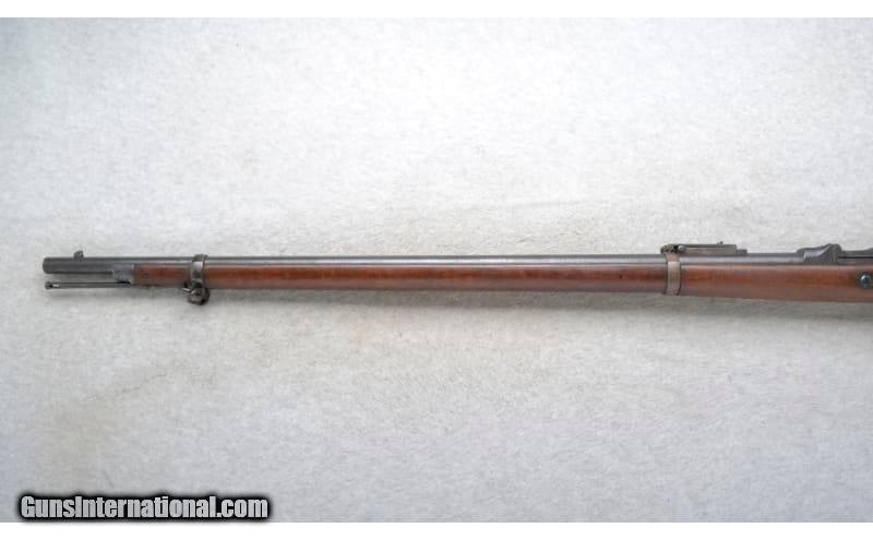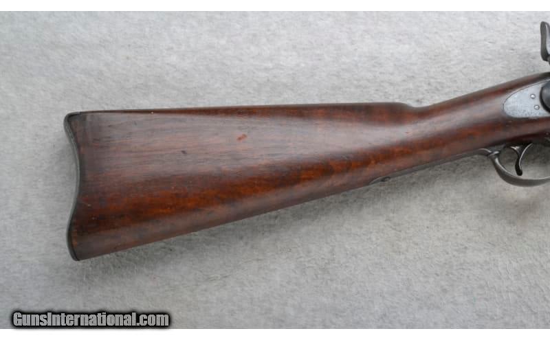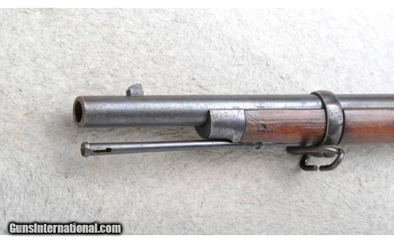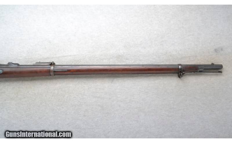 Description: This Springfield U.S. Model 1873 is a breech loading feed system trapdoor action rifle in .45-70 Gov't. Cal. It has a 32.5 inch barrel. A short blade front sight and a flip up adjustable middle sight. The butt stock is a smooth grip walnut straight grip. The forearm is a smooth grip walnut. Serial Number 366710. .45-70 Government SOLD Chambers: Breech Loading. Metal Condition: Fair. Has a lot of freckling and some handling marks. Wood Condition: Has many handling marks. Bore Condition: Very Good. Barrels: 32.5 inch. Stock Dimensions: LOP 13 1/4 inches. Fore End: Smooth grip walnut. Butt Pad: Smooth steel curved plate. Weight: 9 lb. 2 oz. Sights: Short blade front. Flip up adjustable rear. Item Location: Richfield, WI |