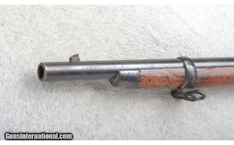 Description: This Springfield U.S. Model 1884 is a single shot breech loading trapdoor design rifle in .45-70 Gov't. Cal. It has a 32.5 inch barrel. A blade front sight and an adjustable middle sight. The buttstock is a smooth grip walnut straight grip. The forearm is a smooth grip walnut. Serial Number 384147. .45-70 Government SOLD Chambers: Single shot. Metal Condition: "Fair. Has freckling, wear and handling marks. Cleaning rod is missing. Wood Condition: Fair. Many handling marks. Bore Condition: Good. Barrels: 32.5 inch. Stock Dimensions: LOP 13 1/4 inches. Fore End: Smooth grip walnut. Butt Pad: Curved steel plate. Weight: 9 lb. 0 oz. Sights: Blade front. Adjustable middle. Item Location: Richfield, WI |