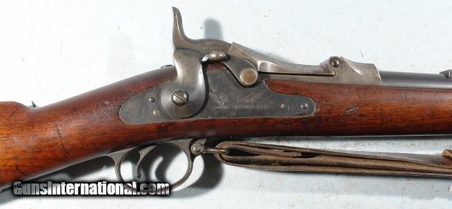 SUPERIOR SPRINGFIELD U.S. MODEL 1888 RAMROD BAYONET TRAPDOOR RIFLE W/ORIG. ROCK ISLAND MODEL 1888 ONE PIECE SLING.