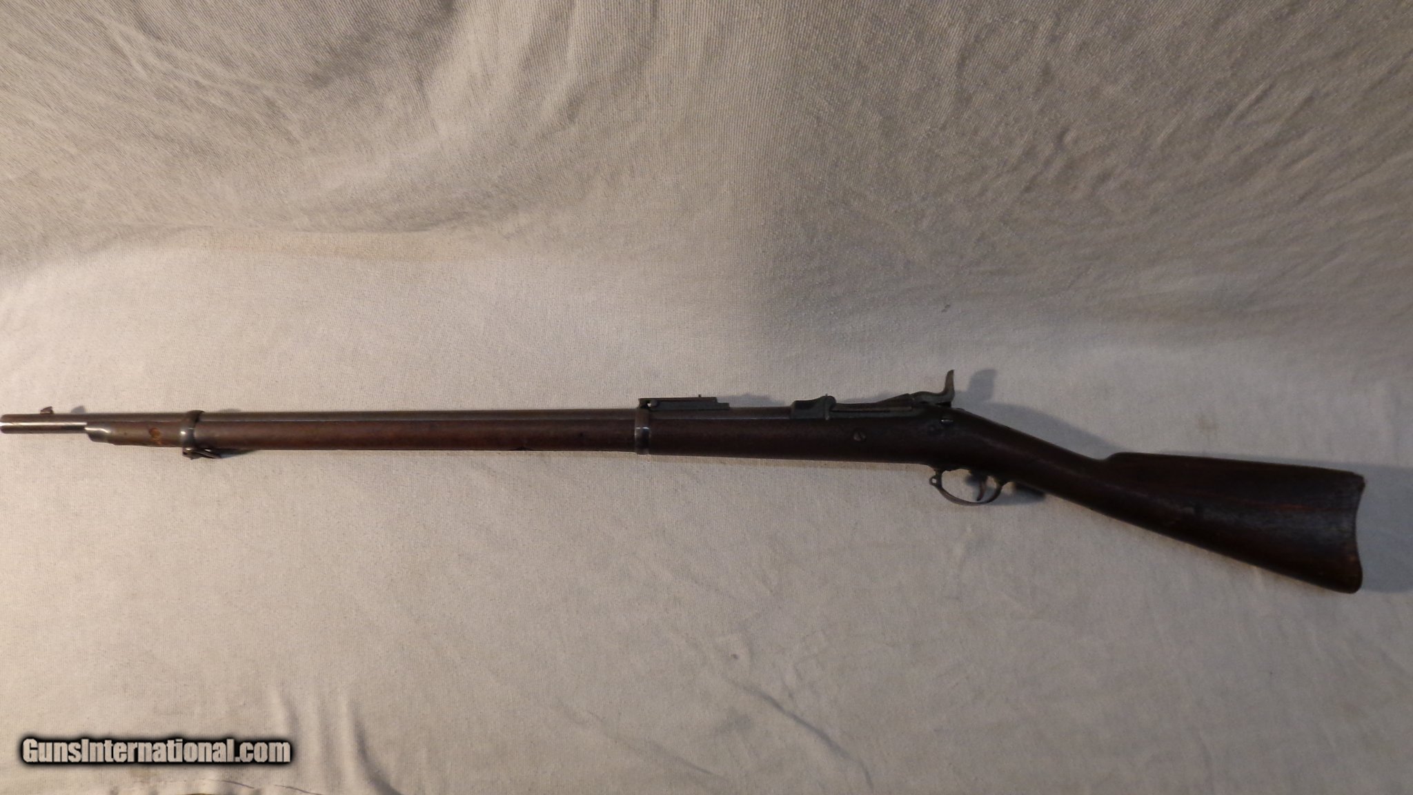 Description: Guns Listing ID: 1172530 This rifle is in fair condition overall some dings, scratches, and finish wear. The cleaning rod is missing. SOLD Manufacturer: U.S. MILITARY & COMMERCIAL LONG ARMS MFG‚‚ Model: Springfield Trapdoor model 1878 Caliber Info: .45-70 GOVT Condition: Used - Non-Certified Barrels: 29.5 BARREL Finish: BLUED |