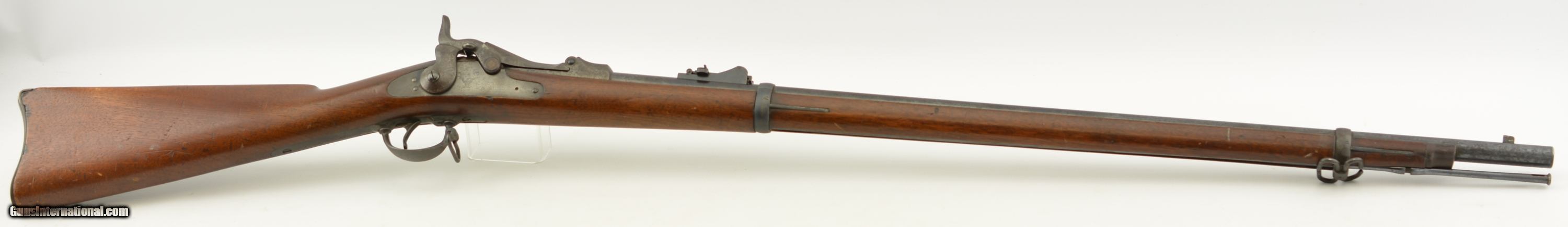 Description: Serial #262446, .45-70, 32 1/2" barrel with an excellent, bright bore. The barrel and bands have about 70-75% of the original blue remaining under light surface freckling and spots of plum-brown, as well as some mild silvering at the muzzle. The lock and receiver have a mixed gray-brown patina with breech block and barrel tang retain a commensurate amount of the original color case-hardening, thinly freckled throughout. The stock has some small handling marks and minor blemishes along the fine, reapplied military oil finish, and the “SWP/1884" cartouche is still quite crisp and clear on the left side of the wrist. Additionally, there is a small, stable chip along the left side of the wrist tang. The original ramrod is still present, and the rifle rates about fine condition overall. Antique SOLD Antique: Yes Manufacturer: Spfld Model: Trapdoor Serial Number: 262446 Caliber Info: .45-70 Gauge Info: .45-70 |