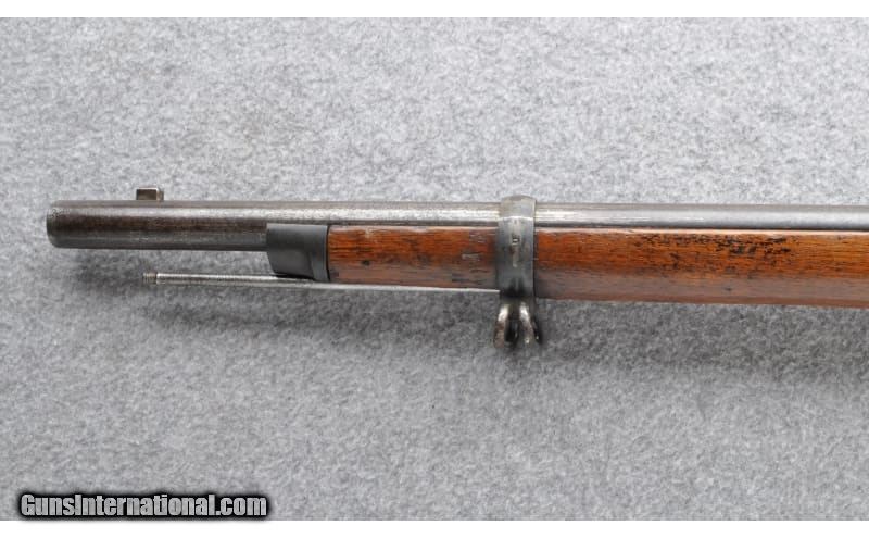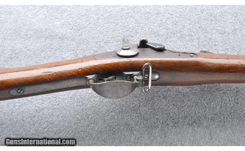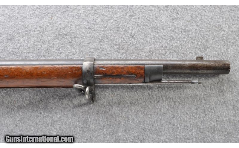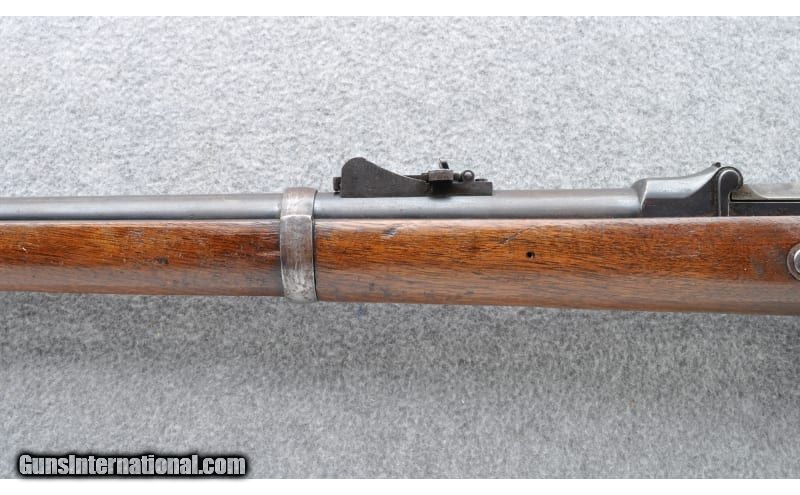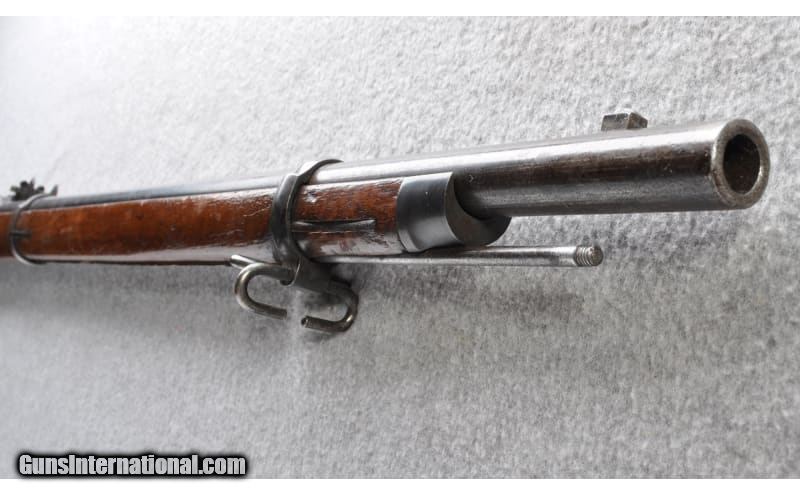 Description: The Springfield Model 1873 was the first breech-loading rifle adopted by the United States Army for issue to troops. This rifle was made in 1874 per serial number search. .45-70 Government SOLD Antique: Yes Chambers: .45-70 Government in a single shot action Metal Condition: Gray/brown patina with scattered pitting. Some case colors remain on the breech block Wood Condition: Various scratches and dents. Wood was varnished some time ago Bore Condition: Good condition with rifling intact. Some light pitting near muzzle Barrels: 32 1/2 Stock Dimensions: 13" LOP Fore End: "Full length walnut with barrel bands, sling swivels, metal tip and cleaning rod Butt Pad: Metal Weight: 8 lbs. 10 oz. Sights: "Barleycorn style front, folding ladder with elevator rear Item Location: Grand Junction, CO |