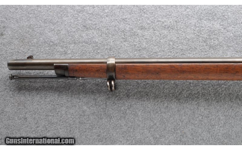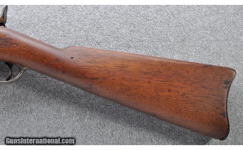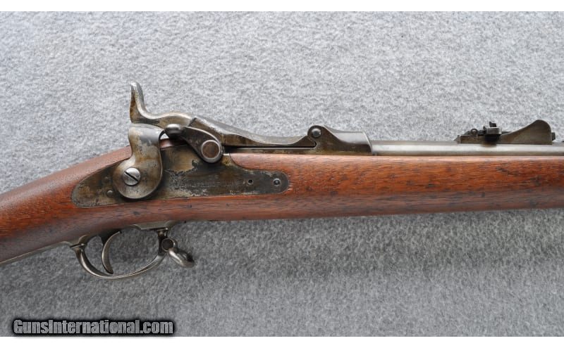 Description: Research shows this rifle being manufactured around 1882. It is in surprisingly nice condition .45-70 Government SOLD Antique: Yes Chambers: .45-70 Government in a single shot trapdoor action Metal Condition: The majority of the metal parts have turned a plum brown patina. The lock and hammer shows some discoloration Wood Condition: The stock is in good condition with few marks Bore Condition: The bore is very bright with prevalent rifling Barrels: 32 1/2 Stock Dimensions: 13 1/4 Fore End: "Full length plain walnut with barrel bands and sling swivels, Plus cleaning rod Butt Pad: Metal carbine style Weight: 9 Lbs. 2 Oz. Sights: "Barleycorn style front, Folding ladder rear Item Location: Grand Junction, CO |
