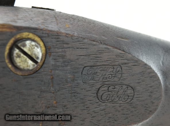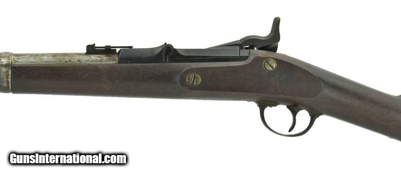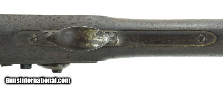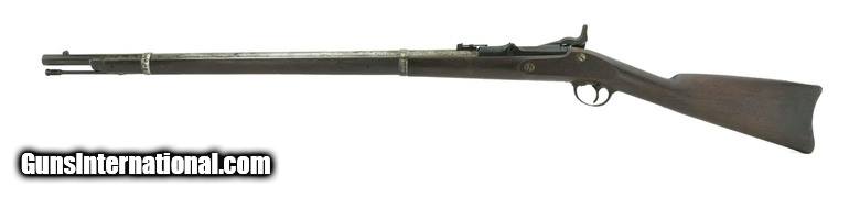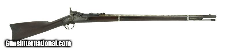 Description: U.S Springfield Model 1868 Trapdoor .50-70 caliber rifle. Metal has areas of brown patina. Breech block and receiver is in the black. Lock plate has beautiful case coloring has dated 1864. Wood is good. Has two sharp cartouches, shows handling and storage marks. Butt plate does have surface pitting. Bore is good, bright with a few small areas of pitting and frosting. SOLD Antique: Yes |