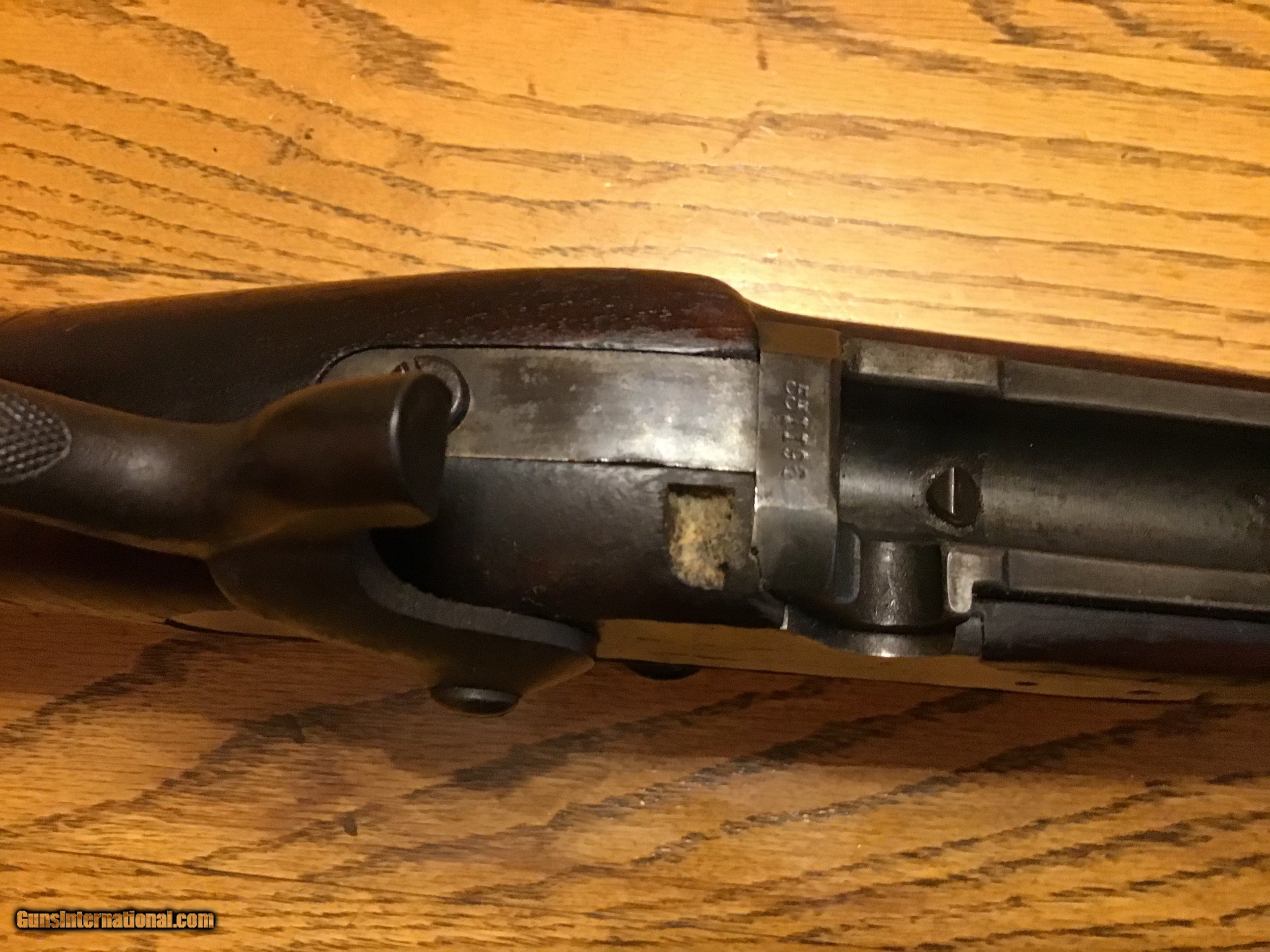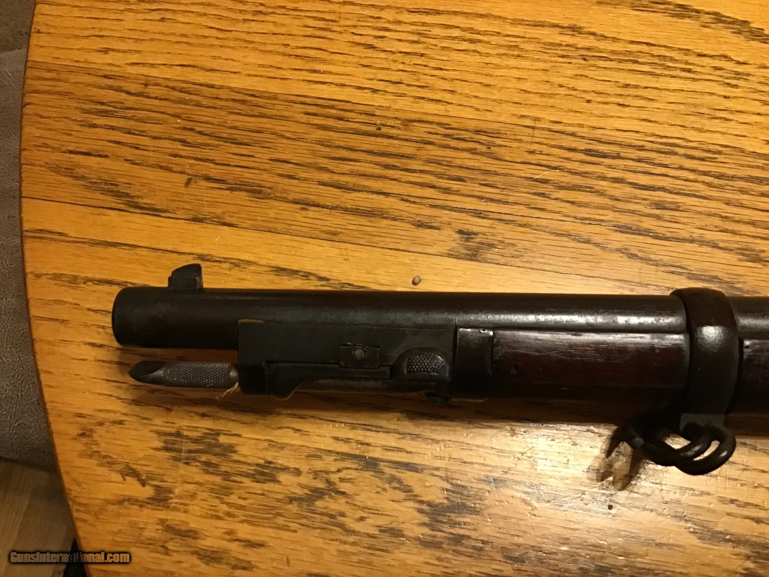 Description: US Springfield Model 1884 Ramrod Bayonet 45-70 caliber trapdoor army rifle. Very good walnut stock with strong 1891 cartouche and circle P, Along with 10th regement and rack number.Breach block marked US Model 1884, lock marked US Springfield with the eagle. Barrel marked VP Eagle P. Correct functioning buffington rear and front sights Bore is good with good rifling. Gun is complete with both sling swivels and cleaning rod. Metal is a mix of Blue, grey and brown. The gun functions as it should. Shipping will be actual cost approximately 50.00 Feel free to call or email with any 218-839-9272 or Chriskobberdahl2gmail SALE PENDING SOLD Antique: Yes Manufacturer: US Springfield Model: 1884 Serial Number: 551196 Caliber Info: 45-70 Condition: Very Good Metal Condition: Good Wood Condition: Very Good Bore Condition: Good Action: Trapdoor |