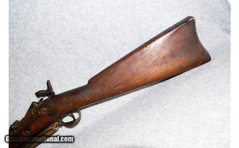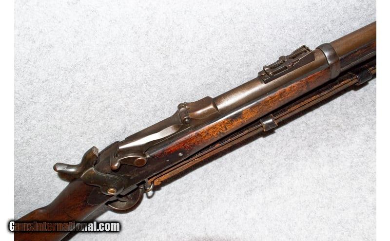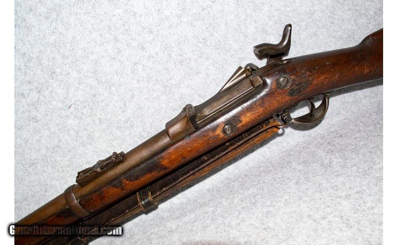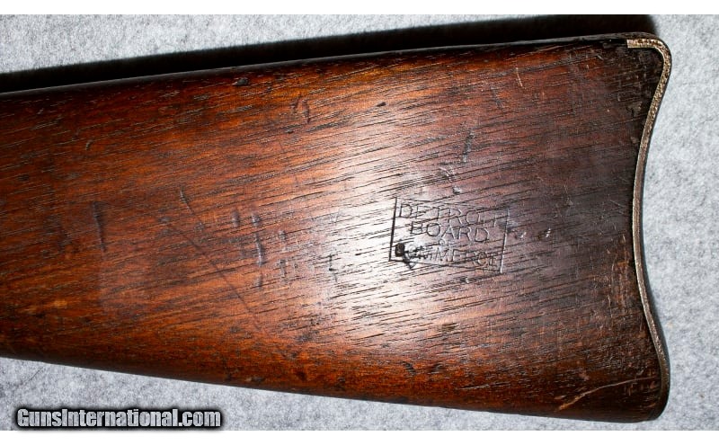 Description: Gun is in good condition for its age and compared to other examples of this era. Bore is good, action tight, all original and not refinished. UNIQUE to this gun is a stamp on the left side of the butt which reads "Detroit Board of Commerce". Also has acceptance proof on the bottom grip area. Other wise no other cartouches are visible. Barrel is 32 5/8ths. .45-70 Government SOLD Barrels: 32.5 Weight: 10 Item Location: Lone Tree, CO |