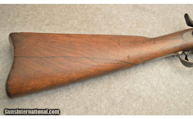 Description: A good condition US Springfield 1878 pattern trapdoor rifle. Has a matching 1883 dated stock that increases collectability. Looks perfectly shootable as well as collectable. SOLD Manufacturer: 1884 Caliber Info: 45-70 Chambers: Trapdoor single shot Metal Condition: Fair amount of spotting and wear Wood Condition: Good with some small signs of use Bore Condition: Shiny Barrels: 33 inch Triggers: Single Stock: Walnut with straight rifle grip marked 1883 Stock Dimensions: 13 1/4 inch LOP Fore End: Matching smooth walnut Butt Pad: Metal buttplate Weight: 9 lbs 3 ozs Sights: Rear notch with ladder and front post Item Location: Berlin, MA |