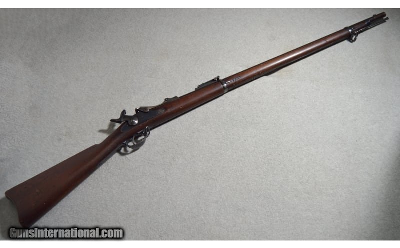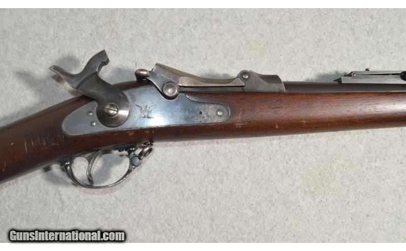 Description: From Wikipedia: "The Springfield Model 1873 was the first standard-issue breech-loading rifle adopted by the United States Army (although the Springfield Model 1866 had seen limited issue to troops along the Bozeman Trail in 1867). The gun, in both full-length and carbine versions, was widely used in subsequent battles. The Model 1873 was the fifth variation of the Allin trapdoor design, and was named for its hinged breechblock, which opened like a trapdoor." These rifles were manufactured from 1873–1884 and in that time approximately 700,000 were produced. .40-70 GOV SOLD Antique: Yes Metal Condition: Good with wear and handling marks Wood Condition: "Good with some scuffs, wear and handling marks Bore Condition: Bright and clear with good rifling Barrels: 34 inch Weight: 9 lbs 6 oz Sights: Buffington rear sight/front post sight Item Location: Fort Worth, TX |