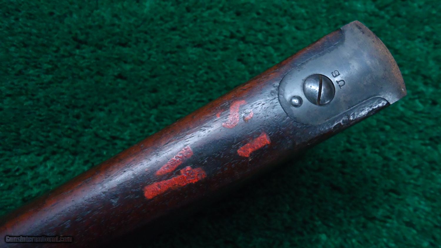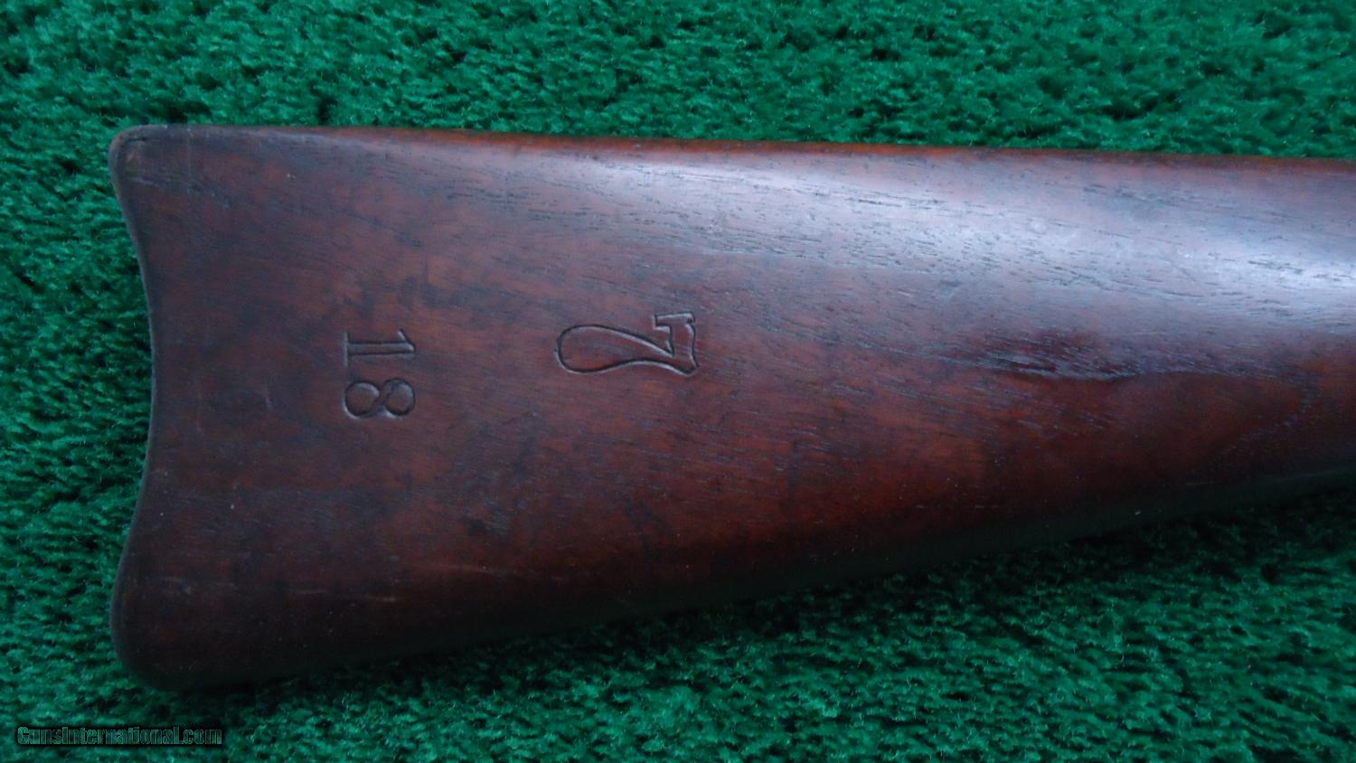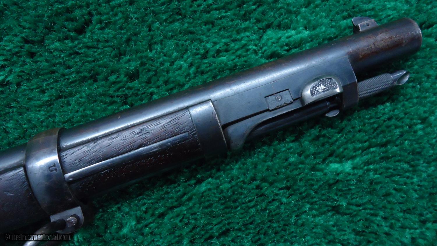 Description: This is the US model 1884 Trapdoor Springfield in cal 45-70 with the unique sliding spike bayonet. A good looking rifle with the majority of the bbl blue remaining. Case color on the frame and trapdoor. Nice solid action. VG+ bore. Stock matches the rest of the gun being VG. A visible cartouche dated 1891. There is a number 7 on the left hand side of the stock and a 7 and 18 on the right side. There is also a painted symbol on the very top of the gun. These would be different unit and rack numbers. A nice Trapdoor! Leroy Merz Antique Firearms specializes in antique and vintage Winchesters and other fine American firearms. Since 1965 Mr. Merz has taken part in the world of firearms and has been a contributor to many well known reference books. Just recently we mailed the 125th edition of our privately-published catalog. We have hundreds of additional guns in every price range at our home online. Search for Merz Antiques in google. SOLD Antique: Yes |