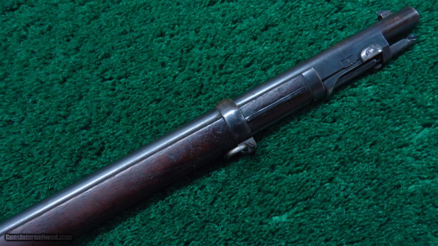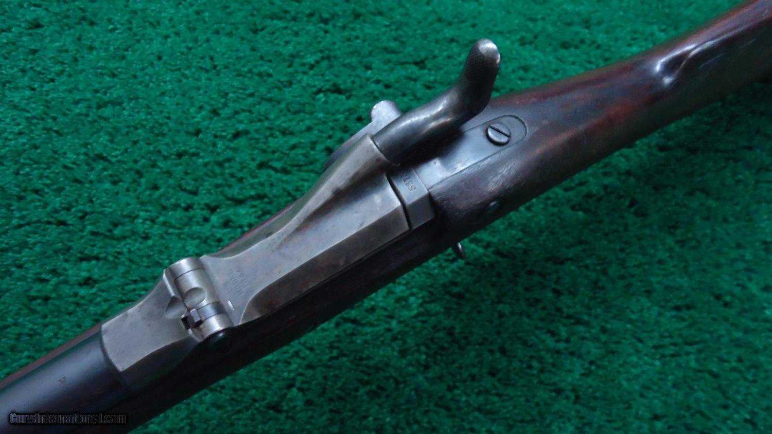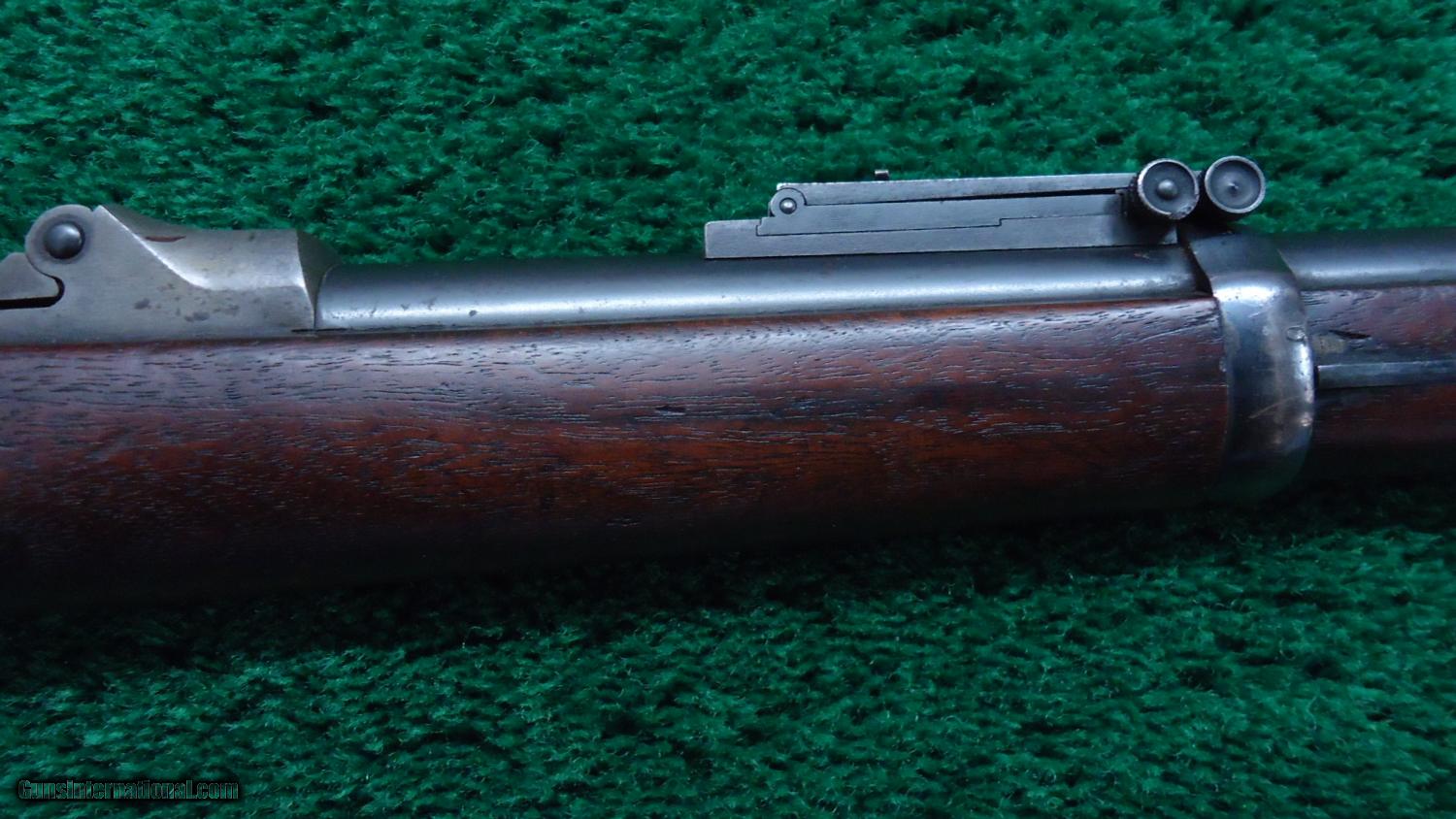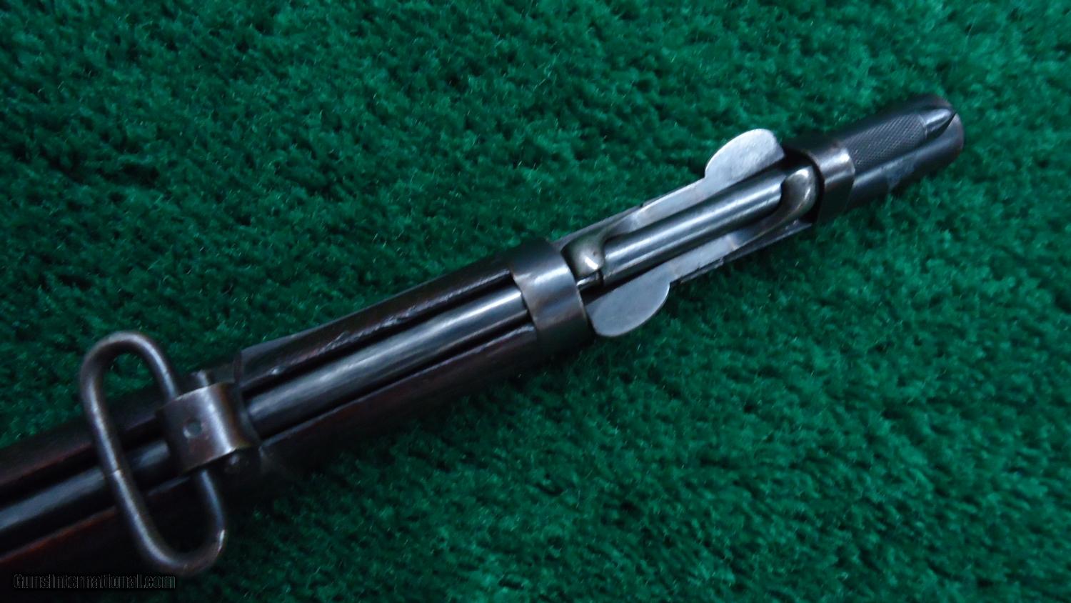 Description: This is the US model 1884 Trapdoor Springfield in cal 45-70 with the unique sliding spike bayonet. A good looking rifle with the majority of the bbl blue remaining. Case color on the frame and trapdoor. Nice solid action. VG+ bore. Stock matches the rest of the gun being VG. A visible cartouche dated 1891. There is a number 7 on the left hand side of the stock and a 7 and 18 on the right side. There is also a painted symbol on the very top of the gun. These would be different unit and rack numbers. A nice Trapdoor! Leroy Merz Antique Firearms specializes in antique and vintage Winchesters and other fine American firearms. Since 1965 Mr. Merz has taken part in the world of firearms and has been a contributor to many well known reference books. Just recently we mailed the 125th edition of our privately-published catalog. We have hundreds of additional guns in every price range at our home online. Search for Merz Antiques in google. SOLD Antique: Yes |