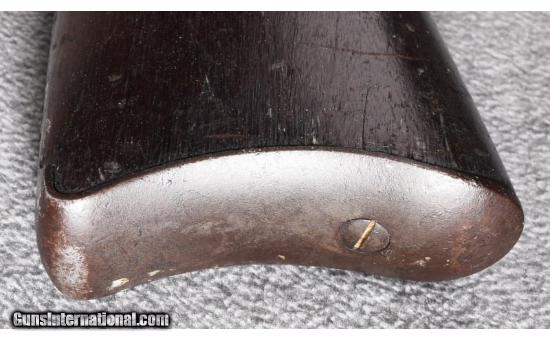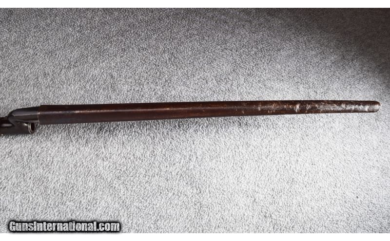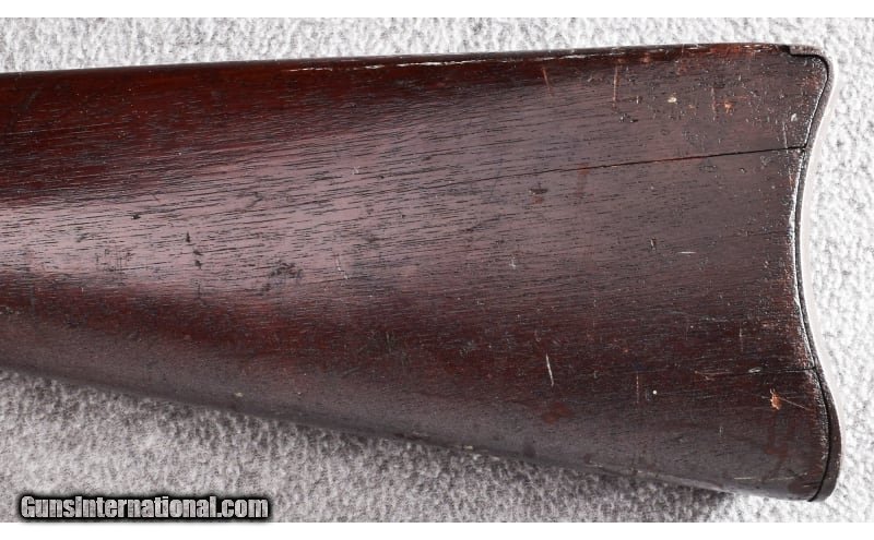 Description: This Springfield Trapdoor Model 1873 was manufactured in 1884 and remains in very good overall condition. Wood is solid but has two hairline cracks on left side of buttstock. There is a very old gouge on left side of stock under rear sight about 3" long and an old large chip missing from left front forend. There is also a very old impression of letters "A.A.D." in bottom under receiver and in front of trigger. Only visible cartouche is the "P" inspectors mark on bottom of wrist. Metal has patinaed with age and has oxidation all over. Metal ramrod is missing from gun. Bore is very good. Gun is complete with 18" spike bayonet with metal cover. This gun is not perfect, but it's not bad for 139 years old! .45-70 Government SOLD Antique: Yes Metal Condition: Very Good Wood Condition: Very Good Bore Condition: Very Good Barrels: 33" Double Band Triggers: Factory Stock Dimensions: 13 1/4" LOP Fore End: Walnut Straight Grip Stock Butt Pad: Crescent Metal Butt Plate Weight: 10 lb Sights: Blade Front - Military Ladder Style Rear Item Location: Wheeling |