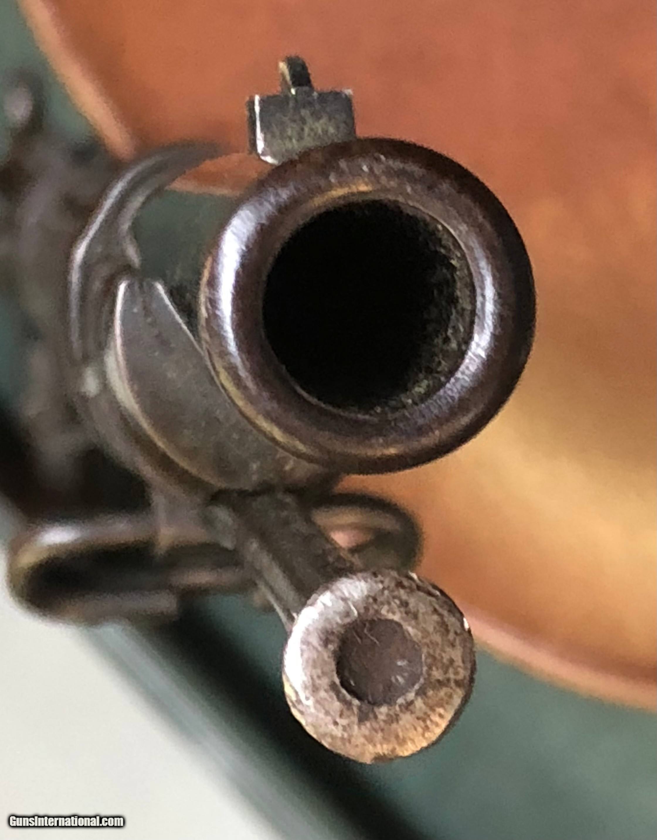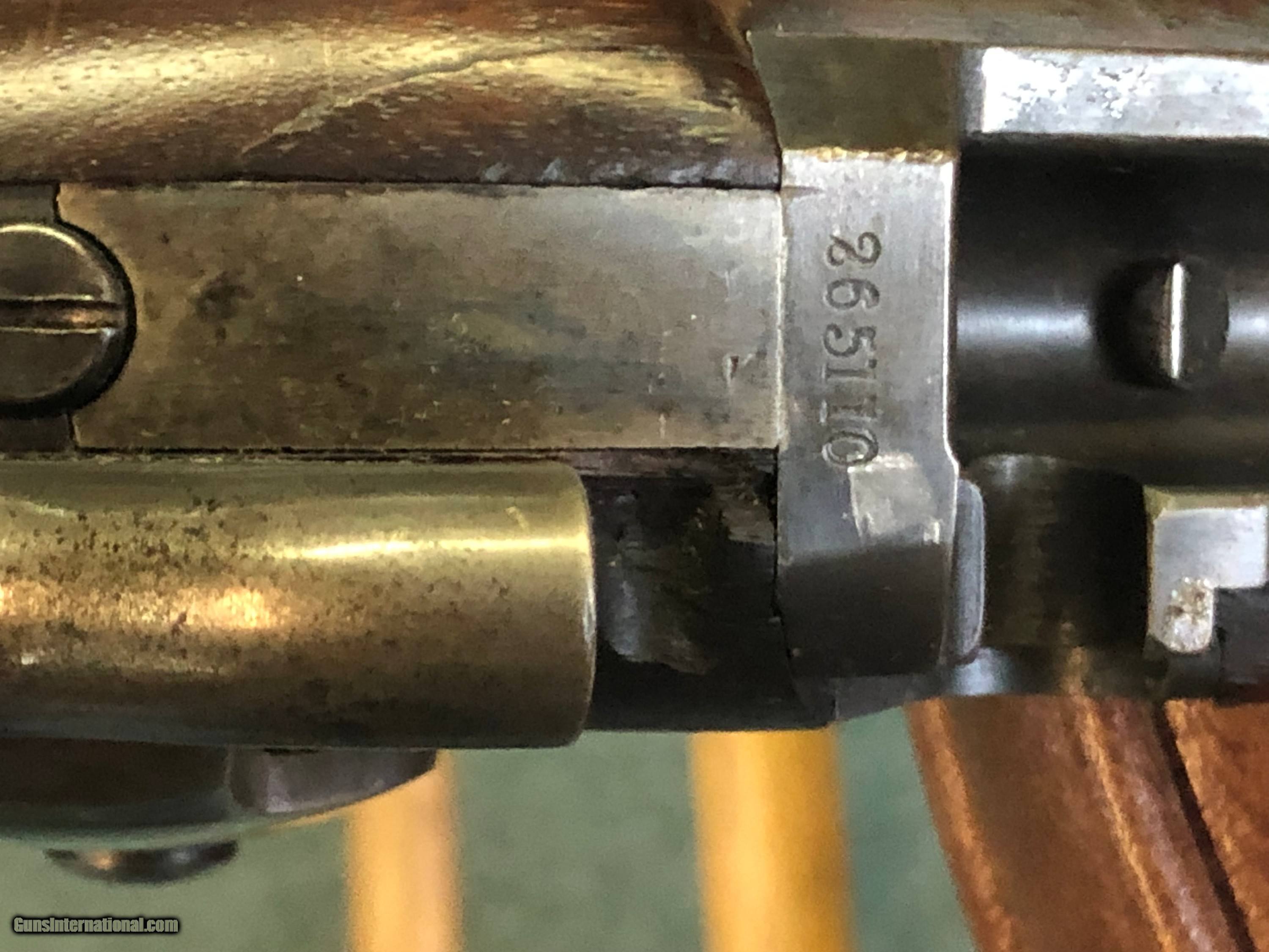 Description: This Model 1878 Trapdoor is in excellent condition showing normal handling marks to the stock. Very crisp proof marks and a strong 1884 cartouche. 32 5/8" barrel with an excellent bore. Some case colors still visible. Blue is also very strong showing very little loss. $70 S&H 4% C/C Fee SOLD Antique: Yes Rifle Caliber: .45-70 Government Manufacturer: Springfield Model: 1878 Serial Number: 265110 Barrel Length: 32 5/8 Condition: Excellent Metal Condition: Excellent Wood Condition: Very Good Bore Condition: Very Good |