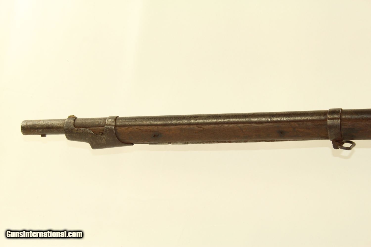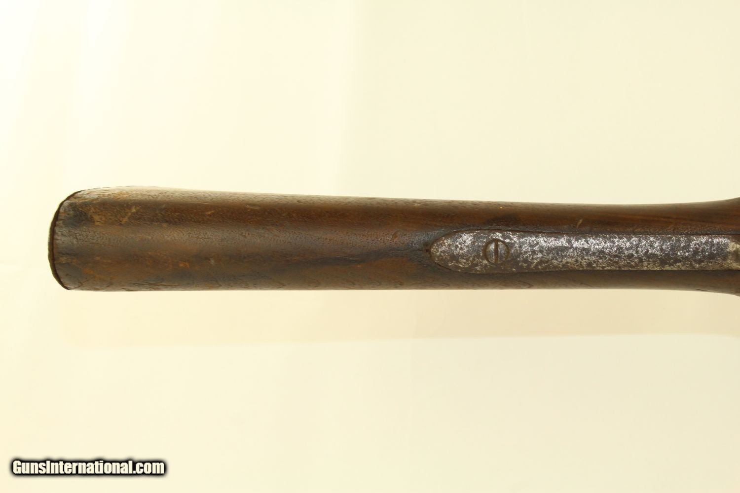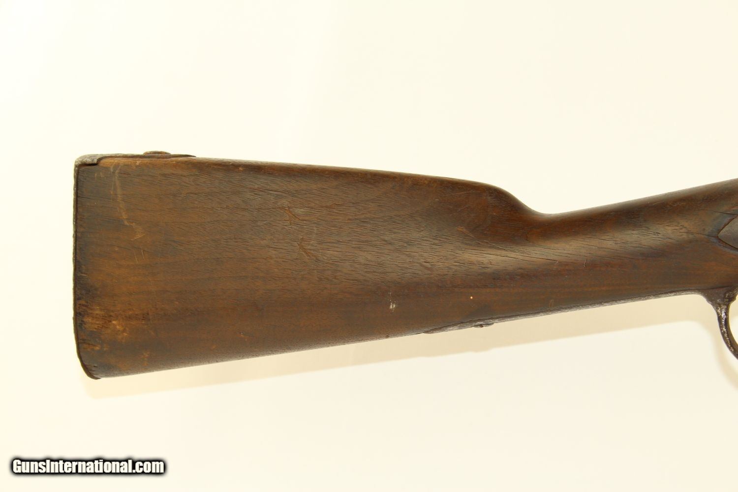 Description: Antique SPRINGFIELD ARMORY M1840 Conversion MUSKET CIVIL WAR Musket Made in 1841 Here we present a Springfield Armory U.S. Model 1840 Conversion Musket, manufactured circa 1841 in Springfield, Massachusetts. This .69 caliber musket originally would have had a flintlock firing system and a 42-inch barrel before being converted to percussion, possibly before it ever left the factory. This Model 1840 flintlock musket has been converted to percussion using the Belgian Style Alteration method, more commonly known as the “Cone Type” conversion. All external lock parts were removed with the screw hole plugged, the pan ground flush with lock plate (leaving the remnants intact) and the small existing cavity in the pan filled with brass to give it a level or squared off profile along the top. The vent hole of the barrel was plugged with a nipple screwed into the threaded receptacle at the top of the barrel, set off center towards the lock side. Then, adding the distinctive arsenal, military hammer. More than 30,000 were produced by the Springfield Armory and two independent contractors, D. Nippes and L. Pomeroy, between 1840 and 1846. The Model 1840 was not dramatically different from the older Model 1835. The Model 1840 featured a longer bayonet with a clasp and a stock with a comb. The designers of the Model 1840 anticipated that the musket would eventually be rifled, and made the barrel heavier than the earlier Model 1835 accordingly. The Model 1840 was the last flintlock musket produced at Springfield Armory. Many were converted to percussion lock before they made it to the field. Although produced as a smoothbore musket, most of the Model 1840s had their barrels rifled later, as the designers had anticipated. The lock is marked “SPRING/FIELD/1841” and has the Federal Eagle stamp. This musket was used hard and shows it. It comes to you untouched with decades of dust in the bore. The iron parts are dark. The walnut stock has a bit of graffiti in the form of Xes on the right side of the stock. There are two good inspector cartouches on the left stock flat. The action remains functional. Here is a musket that saw service both during the Mexican-American War and the American Civil War! Own the original! This is a legitimate antique and not a reproduction. Barrel is 42 inches. Caliber: .69 Percussion Overall condition as seen in photos. Very Fast. Very Safe. FREE SHIPPING WORLDWIDE. Delivered directly to your door by express mail! Guaranteed AUTHENTIC & Includes CERTIFICATE OF AUTHENTICITY. ancestryguns $1200 #190304 SOLD Antique: Yes |