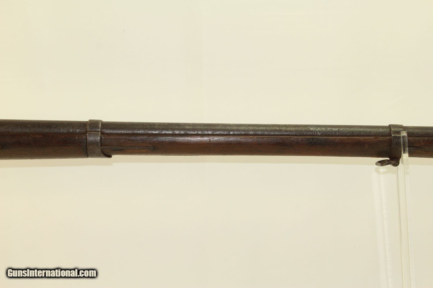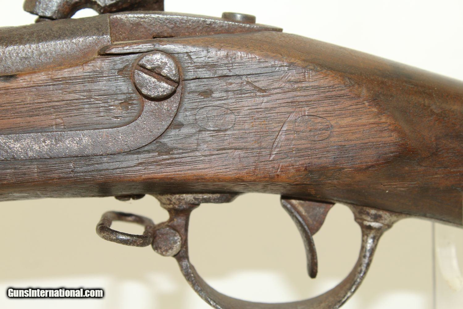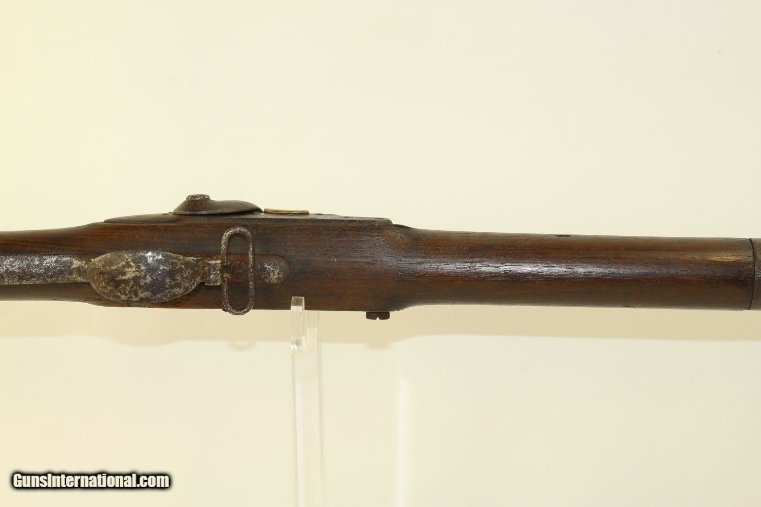 Description: Antique SPRINGFIELD ARMORY M1840 Conversion MUSKET CIVIL WAR Musket Made in 1841 Here we present a Springfield Armory U.S. Model 1840 Conversion Musket, manufactured circa 1841 in Springfield, Massachusetts. This .69 caliber musket originally would have had a flintlock firing system and a 42-inch barrel before being converted to percussion, possibly before it ever left the factory. This Model 1840 flintlock musket has been converted to percussion using the Belgian Style Alteration method, more commonly known as the “Cone Type” conversion. All external lock parts were removed with the screw hole plugged, the pan ground flush with lock plate (leaving the remnants intact) and the small existing cavity in the pan filled with brass to give it a level or squared off profile along the top. The vent hole of the barrel was plugged with a nipple screwed into the threaded receptacle at the top of the barrel, set off center towards the lock side. Then, adding the distinctive arsenal, military hammer. More than 30,000 were produced by the Springfield Armory and two independent contractors, D. Nippes and L. Pomeroy, between 1840 and 1846. The Model 1840 was not dramatically different from the older Model 1835. The Model 1840 featured a longer bayonet with a clasp and a stock with a comb. The designers of the Model 1840 anticipated that the musket would eventually be rifled, and made the barrel heavier than the earlier Model 1835 accordingly. The Model 1840 was the last flintlock musket produced at Springfield Armory. Many were converted to percussion lock before they made it to the field. Although produced as a smoothbore musket, most of the Model 1840s had their barrels rifled later, as the designers had anticipated. The lock is marked “SPRING/FIELD/1841” and has the Federal Eagle stamp. This musket was used hard and shows it. It comes to you untouched with decades of dust in the bore. The iron parts are dark. The walnut stock has a bit of graffiti in the form of Xes on the right side of the stock. There are two good inspector cartouches on the left stock flat. The action remains functional. Here is a musket that saw service both during the Mexican-American War and the American Civil War! Own the original! This is a legitimate antique and not a reproduction. Barrel is 42 inches. Caliber: .69 Percussion Overall condition as seen in photos. Very Fast. Very Safe. FREE SHIPPING WORLDWIDE. Delivered directly to your door by express mail! Guaranteed AUTHENTIC & Includes CERTIFICATE OF AUTHENTICITY. ancestryguns $1200 #190304 SOLD Antique: Yes |
