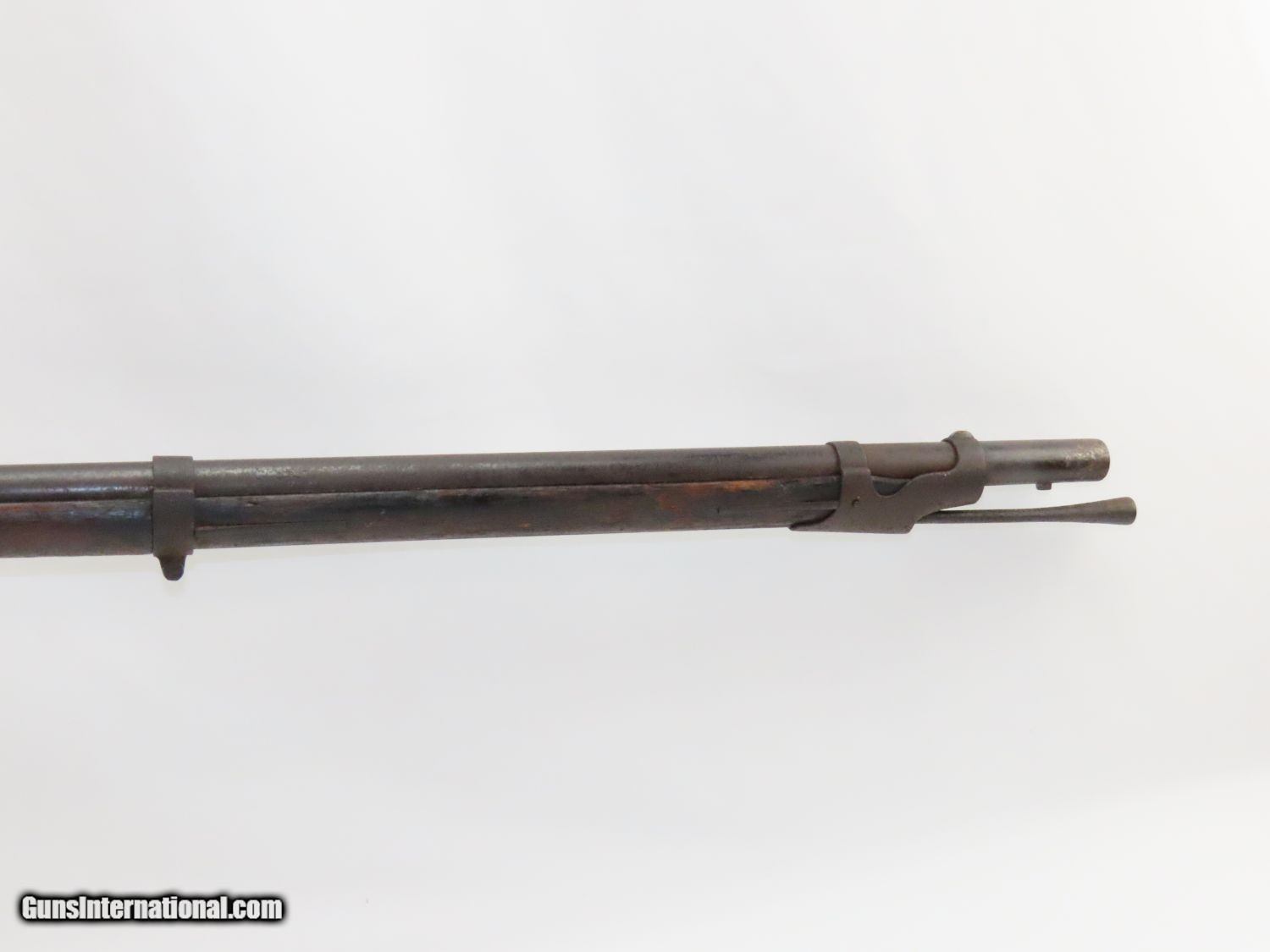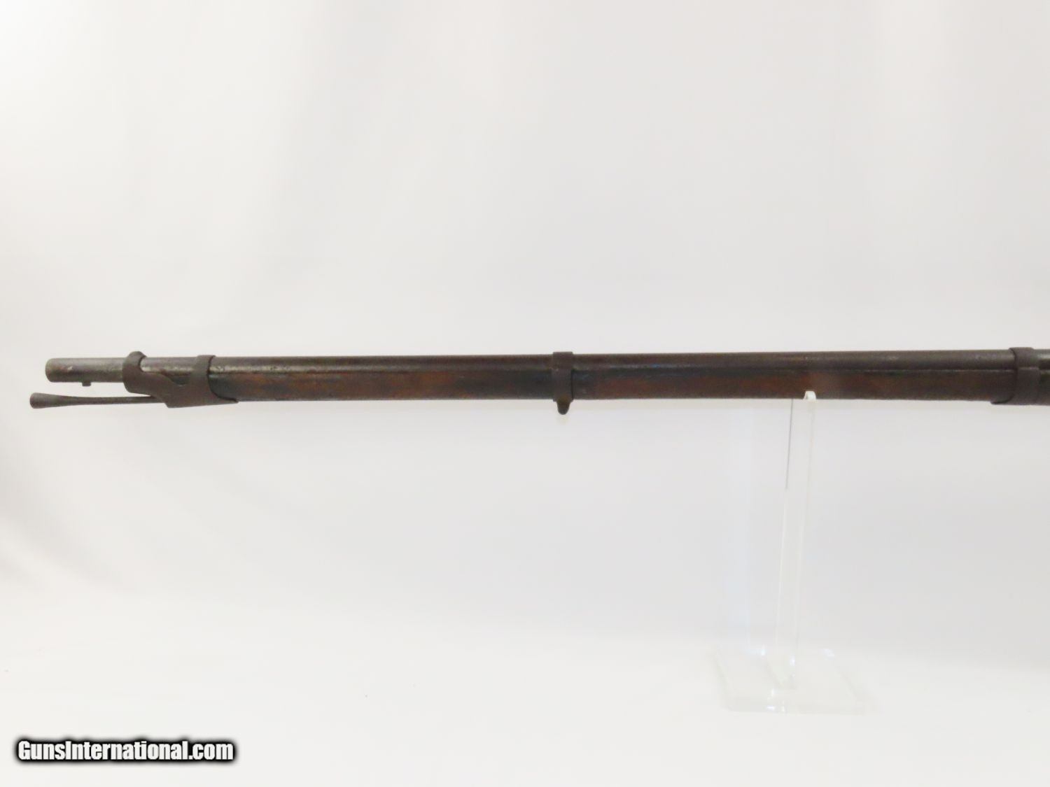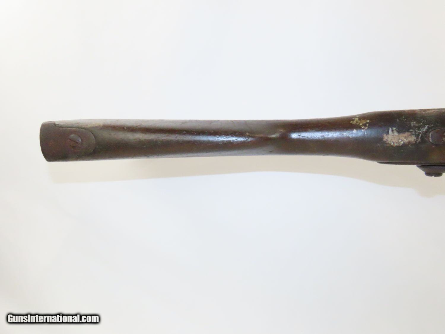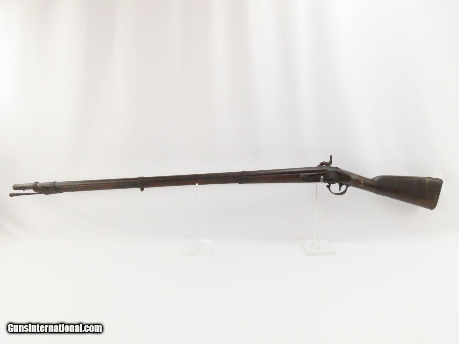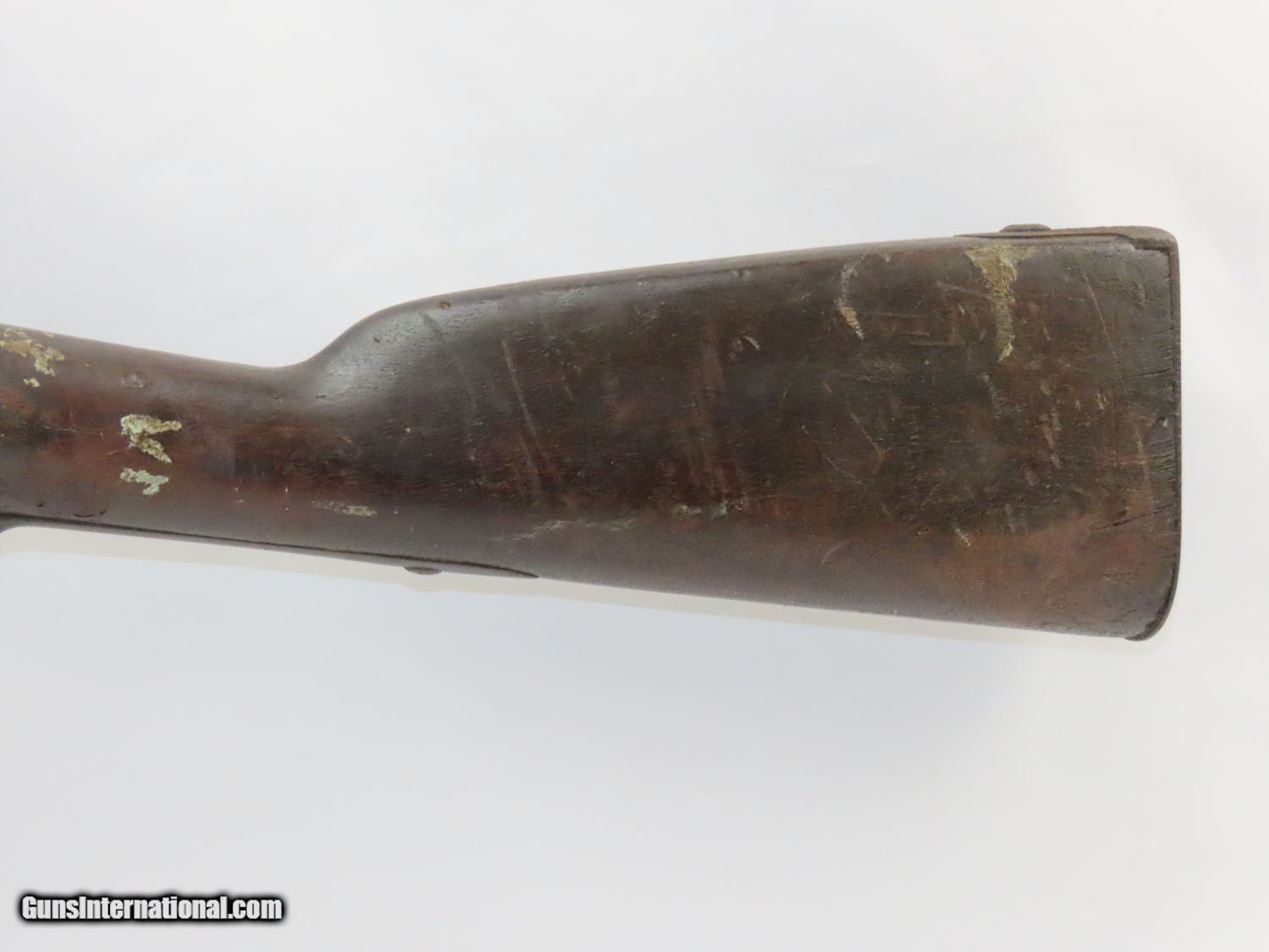 Description: Antique U. S. SPRINGFIELD ARMORY Model 1842 Percussion MUSKET with BAYONET MEXICAN AMERICAN WAR/CIVIL WAR Musket Made in 1845 Here we present a Springfield Armory U.S. Model 1842 Percussion Musket, manufactured circa 1845 in Springfield, Massachusetts. From the period of 1844 until 1855, about 275,000 Model 1842 muskets were manufactured at the Springfield and Harpers Ferry Armories, along with some being made by private providers commissioned to assist in production. Along with usage during the Mexican-American War in 1846 through 1848, these would have been in the hands of local militia all over the antebellum United States and used by both combatants at the outbreak of the American Civil War. Sights were not included in the smoothbore’s design but arrived later as the muskets were rifled later in its life. The Model 1842 was the first regulation percussion musket to be manufactured at both Springfield and Harpers Ferry Armories, as well as the first to be produced by both national armories with fully interchangeable parts. These were also the last .69 caliber smoothbore arms to be produced by the U.S. government. The overall condition is good. The action is strong, and the bore is dark. “1845” is the date on the lock. The stock and iron parts have definitely seen some weather. The bayonet retention ring is currently frozen in place so it does not fit completely over the muzzle. Nevertheless, a fantastic piece of history that would be phenomenal on display. Own the original! This is a legitimate antique and not a reproduction. Barrel is 42 inches. Caliber: .69 Percussion Overall condition as seen in photos. Very Fast. Very Safe. FREE SHIPPING WORLDWIDE. Delivered directly to your door by express mail! Guaranteed AUTHENTIC & Includes CERTIFICATE OF AUTHENTICITY. ancestryguns $1100 #20577 SOLD Antique: Yes |