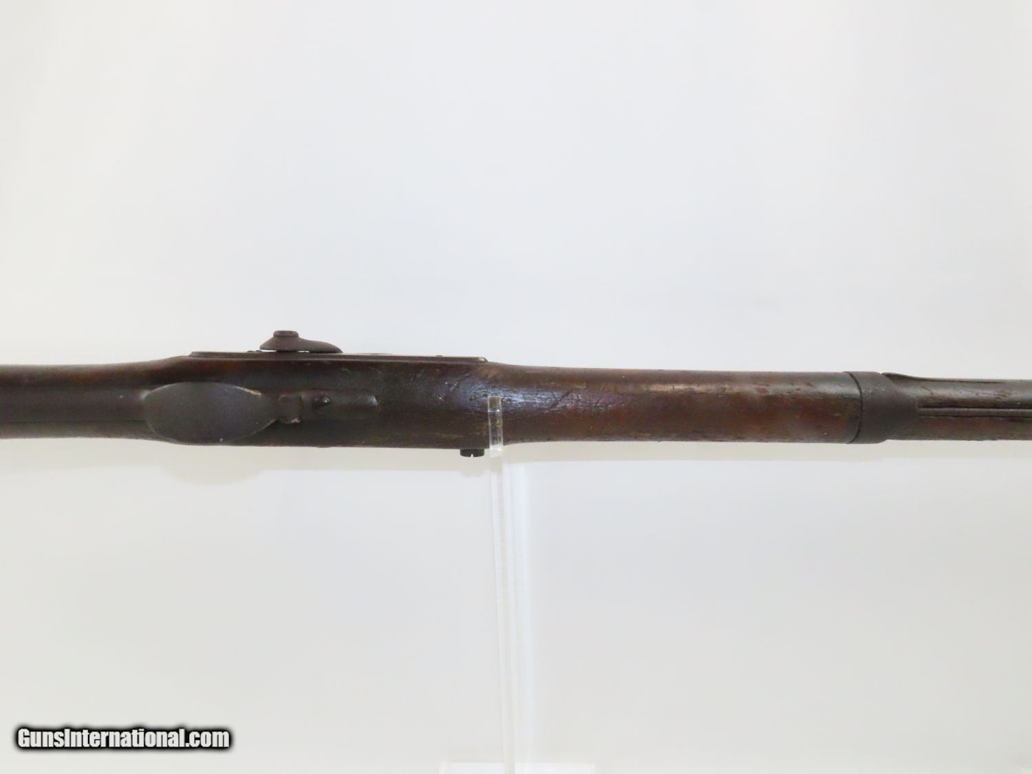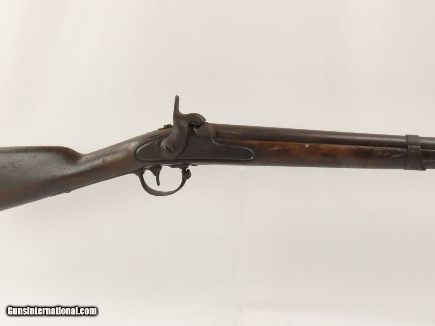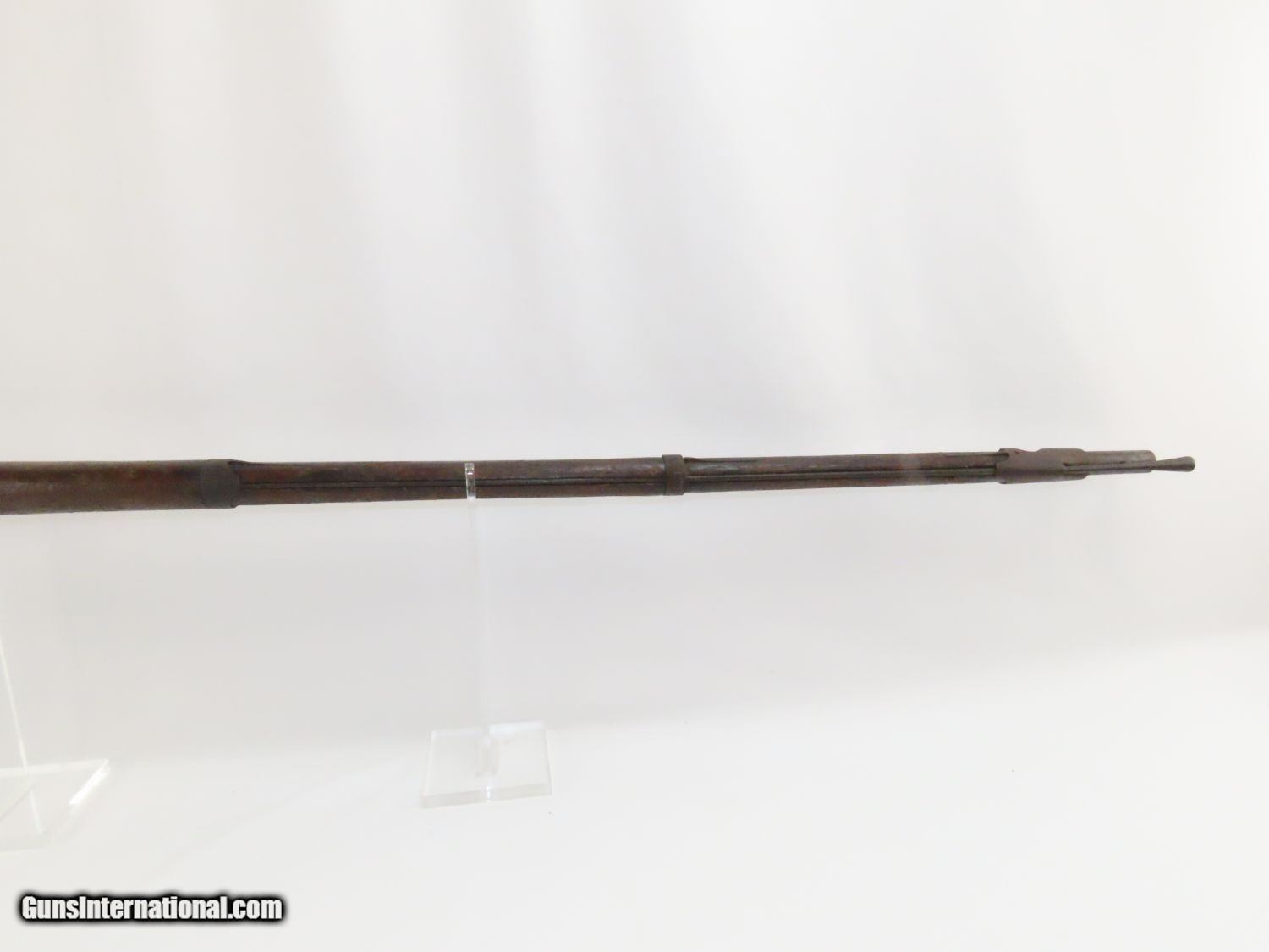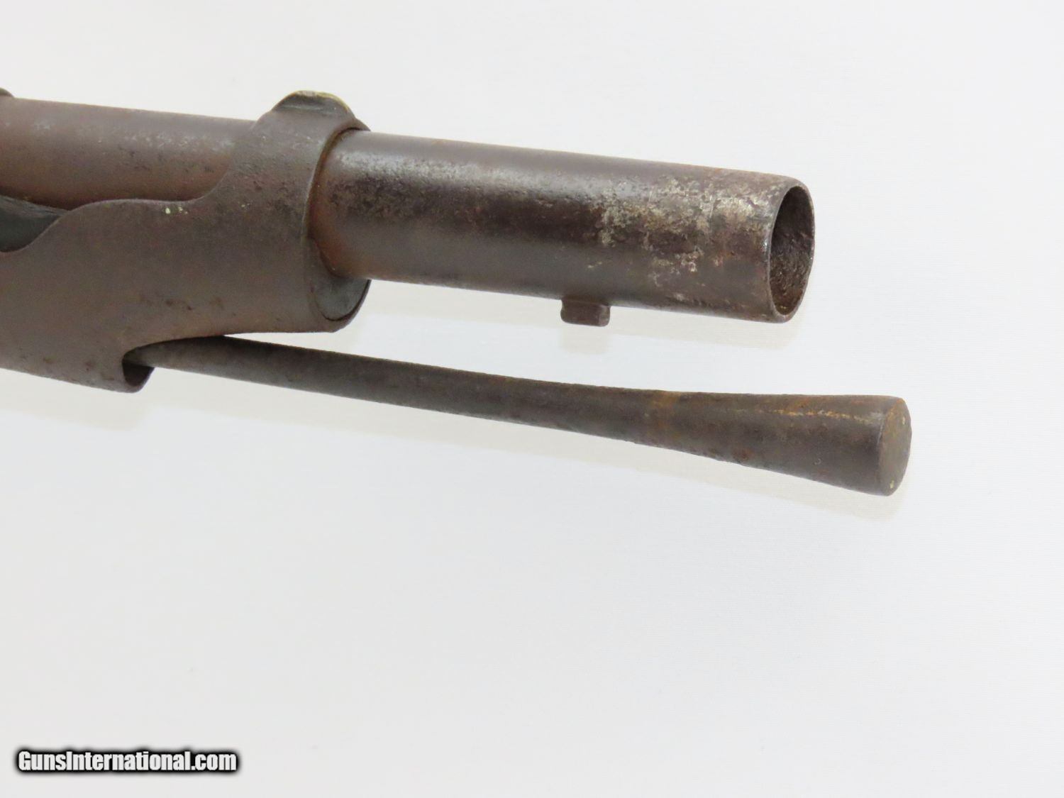 Description: Antique U. S. SPRINGFIELD ARMORY Model 1842 Percussion MUSKET with BAYONET MEXICAN AMERICAN WAR/CIVIL WAR Musket Made in 1845 Here we present a Springfield Armory U.S. Model 1842 Percussion Musket, manufactured circa 1845 in Springfield, Massachusetts. From the period of 1844 until 1855, about 275,000 Model 1842 muskets were manufactured at the Springfield and Harpers Ferry Armories, along with some being made by private providers commissioned to assist in production. Along with usage during the Mexican-American War in 1846 through 1848, these would have been in the hands of local militia all over the antebellum United States and used by both combatants at the outbreak of the American Civil War. Sights were not included in the smoothbore’s design but arrived later as the muskets were rifled later in its life. The Model 1842 was the first regulation percussion musket to be manufactured at both Springfield and Harpers Ferry Armories, as well as the first to be produced by both national armories with fully interchangeable parts. These were also the last .69 caliber smoothbore arms to be produced by the U.S. government. The overall condition is good. The action is strong, and the bore is dark. “1845” is the date on the lock. The stock and iron parts have definitely seen some weather. The bayonet retention ring is currently frozen in place so it does not fit completely over the muzzle. Nevertheless, a fantastic piece of history that would be phenomenal on display. Own the original! This is a legitimate antique and not a reproduction. Barrel is 42 inches. Caliber: .69 Percussion Overall condition as seen in photos. Very Fast. Very Safe. FREE SHIPPING WORLDWIDE. Delivered directly to your door by express mail! Guaranteed AUTHENTIC & Includes CERTIFICATE OF AUTHENTICITY. ancestryguns $1100 #20577 SOLD Antique: Yes |