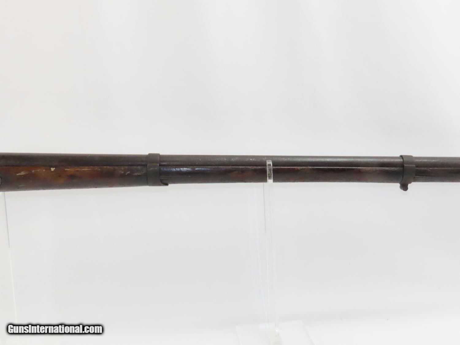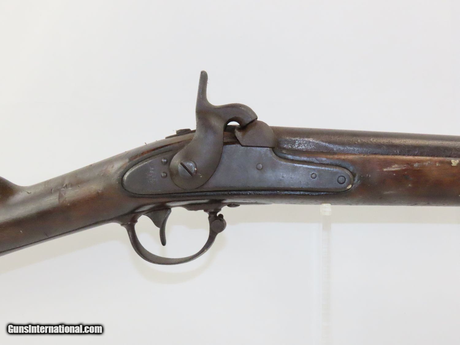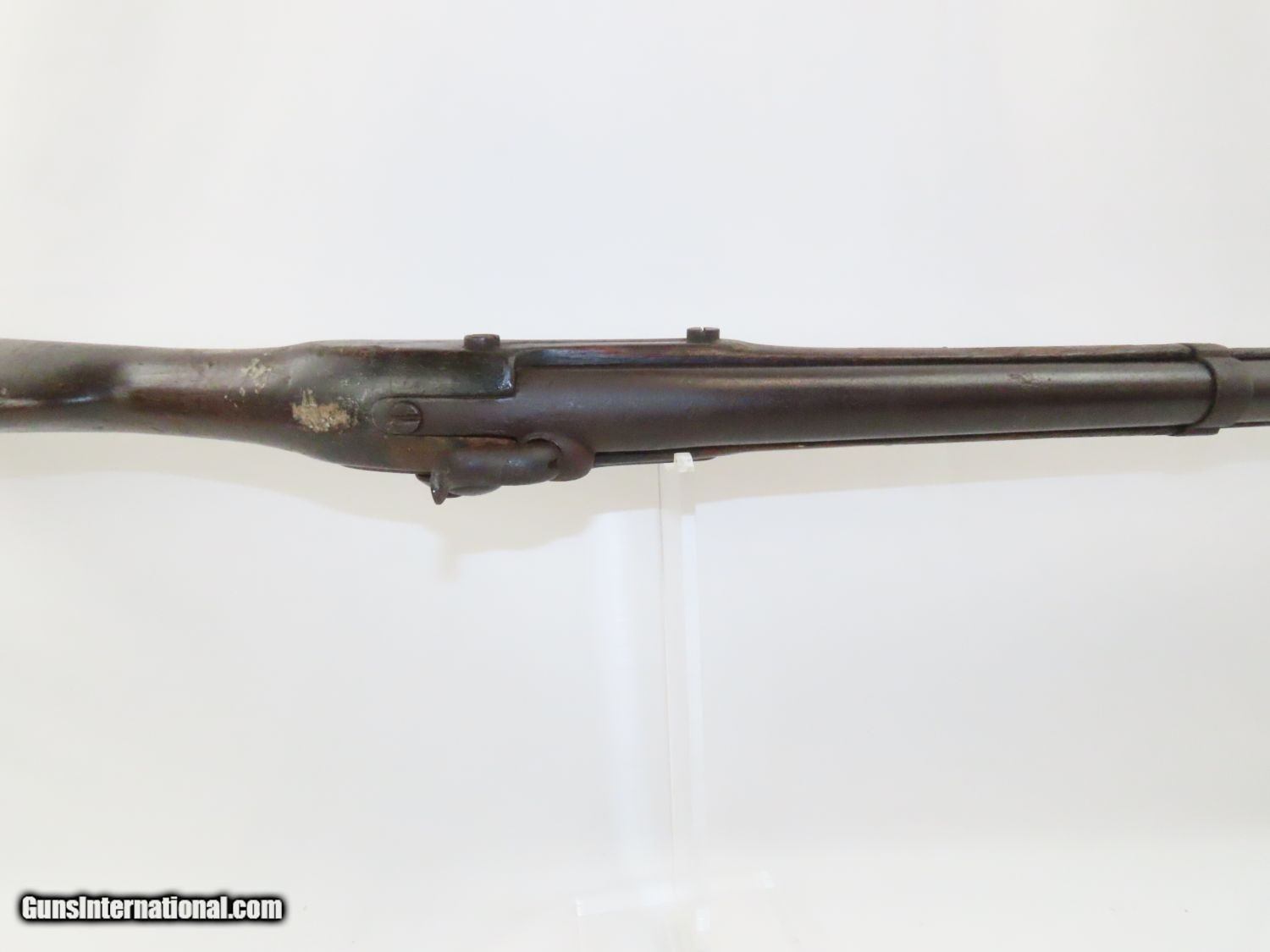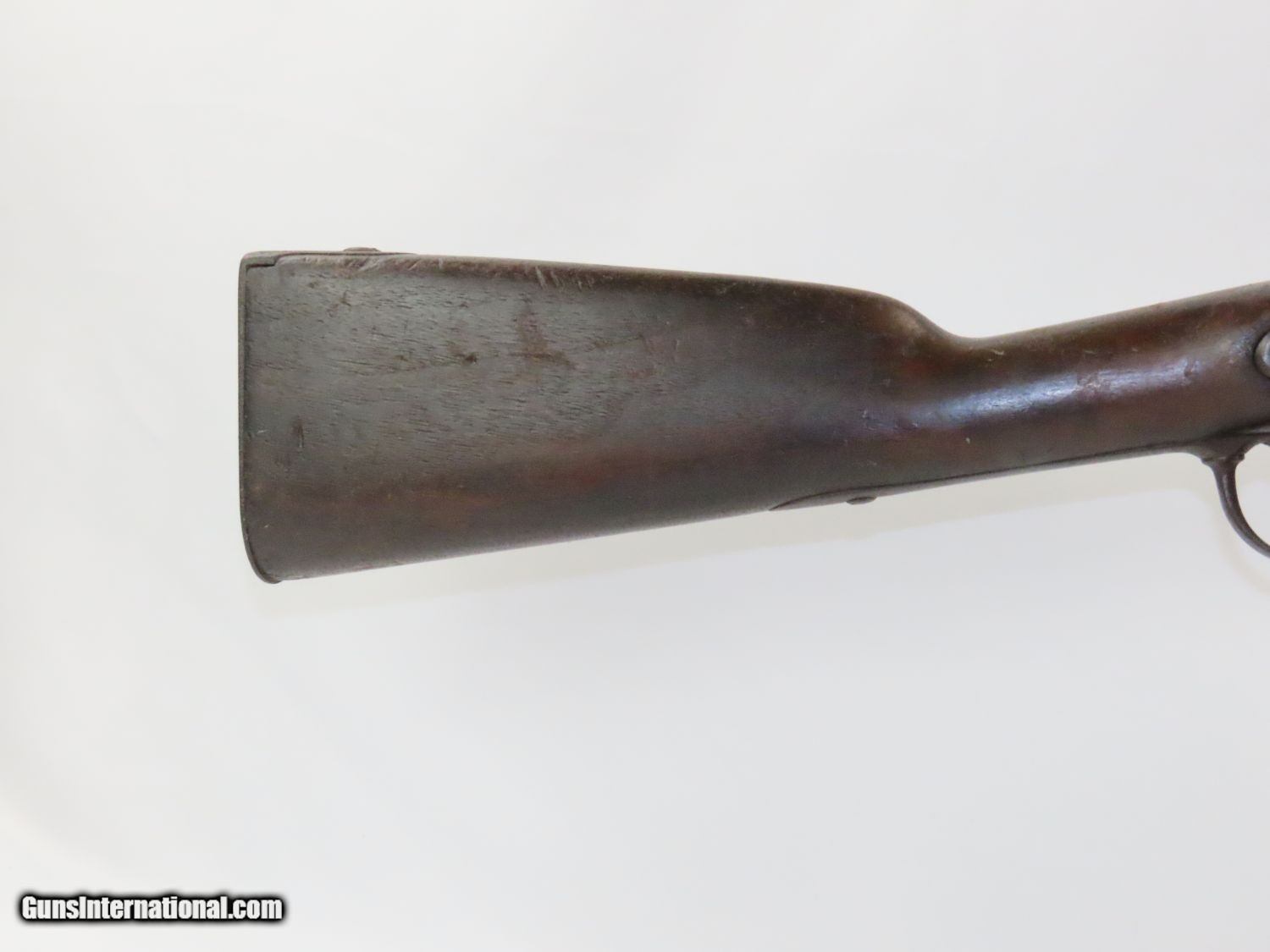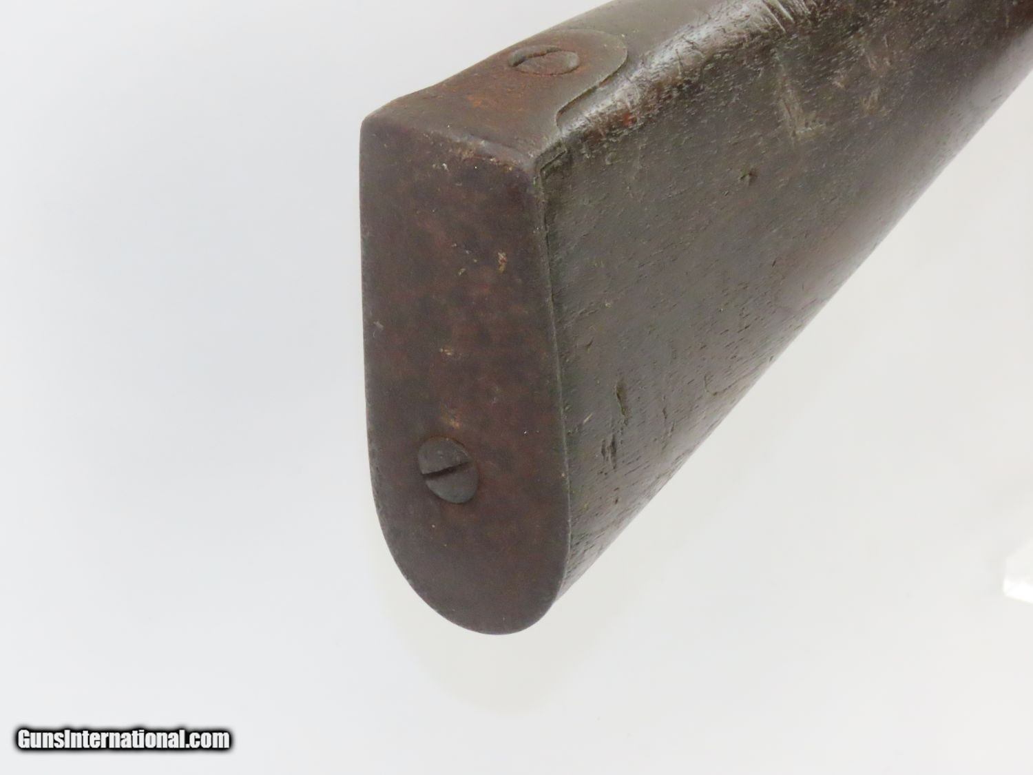 Description: Antique U. S. SPRINGFIELD ARMORY Model 1842 Percussion MUSKET with BAYONET MEXICAN AMERICAN WAR/CIVIL WAR Musket Made in 1845 Here we present a Springfield Armory U.S. Model 1842 Percussion Musket, manufactured circa 1845 in Springfield, Massachusetts. From the period of 1844 until 1855, about 275,000 Model 1842 muskets were manufactured at the Springfield and Harpers Ferry Armories, along with some being made by private providers commissioned to assist in production. Along with usage during the Mexican-American War in 1846 through 1848, these would have been in the hands of local militia all over the antebellum United States and used by both combatants at the outbreak of the American Civil War. Sights were not included in the smoothbore’s design but arrived later as the muskets were rifled later in its life. The Model 1842 was the first regulation percussion musket to be manufactured at both Springfield and Harpers Ferry Armories, as well as the first to be produced by both national armories with fully interchangeable parts. These were also the last .69 caliber smoothbore arms to be produced by the U.S. government. The overall condition is good. The action is strong, and the bore is dark. “1845” is the date on the lock. The stock and iron parts have definitely seen some weather. The bayonet retention ring is currently frozen in place so it does not fit completely over the muzzle. Nevertheless, a fantastic piece of history that would be phenomenal on display. Own the original! This is a legitimate antique and not a reproduction. Barrel is 42 inches. Caliber: .69 Percussion Overall condition as seen in photos. Very Fast. Very Safe. FREE SHIPPING WORLDWIDE. Delivered directly to your door by express mail! Guaranteed AUTHENTIC & Includes CERTIFICATE OF AUTHENTICITY. ancestryguns $1100 #20577 SOLD Antique: Yes |