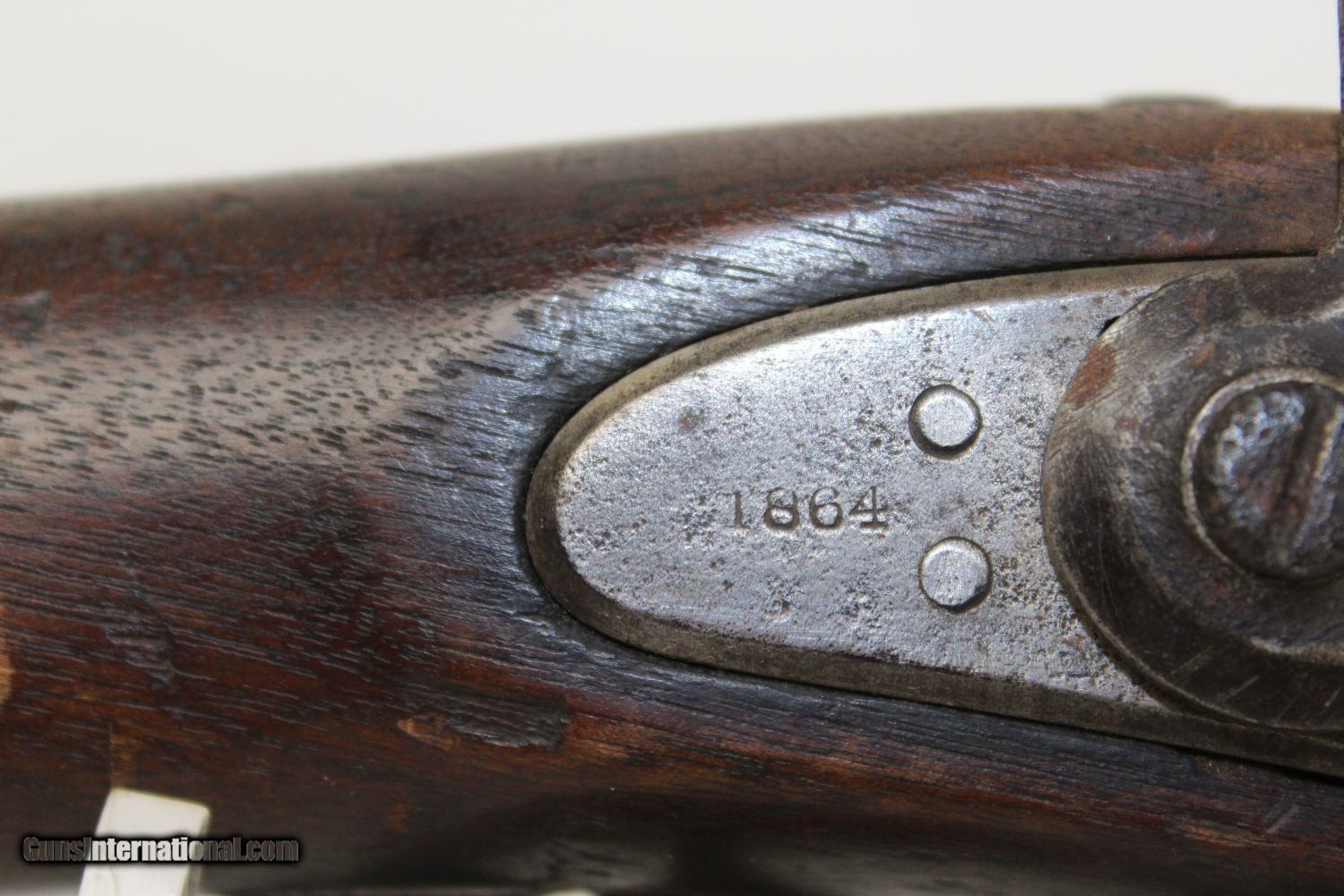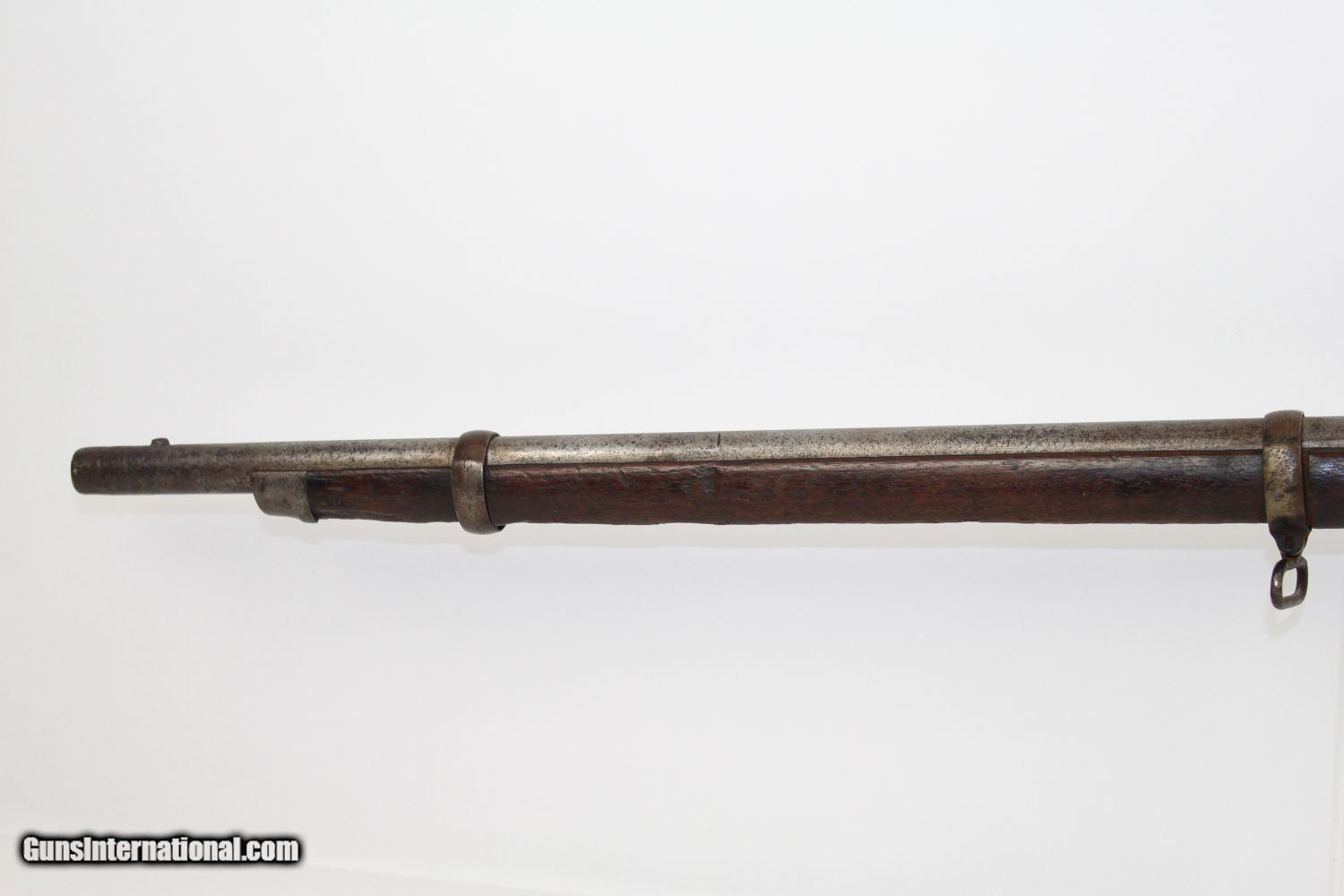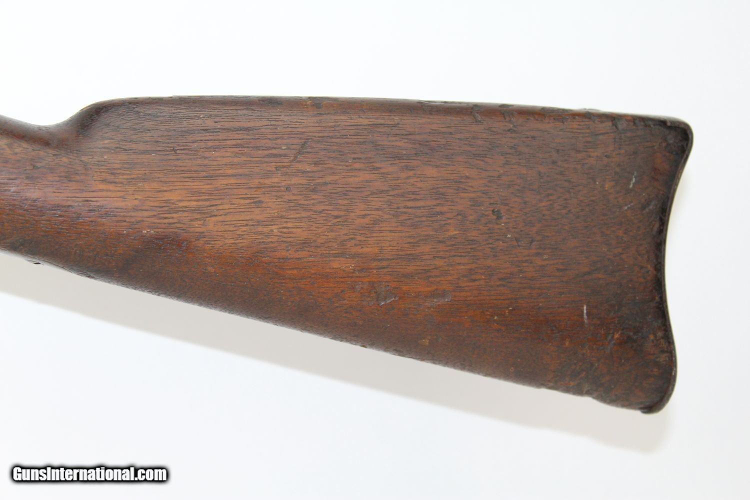Description: CIVIL WAR Antique SPRINGFIELD 1861 INFANTRY Rifle-Musket UNION ARMY .58 Primary Infantry Weapon of the Union Here we present an antique Springfield Armory Model 1861 Civil War Smoothbore Rifle-Musket, made in 1862 in Springfield, Massachusetts. The M1861 is representative of the “everyman’s” rifle during the war. About 1.5 million rifle-muskets were made in the U.S., over 800,000 of which were made by the Springfield Armory. This was the last hurrah of the rifle-musket as arms development and tactics rapidly advanced during the short period of the American Civil War. Nevertheless, the 1861 represented new technology as it was made for use with the Minié ball, a hollow based, conical projectile that was small enough to quickly push down the muzzle of a rifled barrel and expanded to create a good gas seal unlike a solid, round ball. Almost immediately after the war, the US military switched from the old muzzle loading type weapons to the newer breech loading rifles, bringing an end to the musket as a standard frontline firearm in American history. The lock is marked “EAGLE/U.S./SPRINGFIELD” and dated “1864” on the tail of the lock. The top of the butt stock is marked “US”. There are two faint cartouches on the left stock flat. The metal surfaces are dark with age. The percussion nipple and ramrod are absent. The action is functional and locks into both the half- and full-cocked positions. The bore is rough. The stock shows much use and some signs of weathering. A great piece to start a Civil War collection with! Own the original! This is a legitimate antique and not a reproduction. Barrel is 40 inches. Caliber: .58 Percussion Overall condition as seen in photos. Very Fast. Very Safe. FREE SHIPPING WORLDWIDE. Delivered directly to your door by express mail! Guaranteed AUTHENTIC & Includes CERTIFICATE OF AUTHENTICITY. ancestryguns $1125 #7233 SOLD Antique: Yes |
