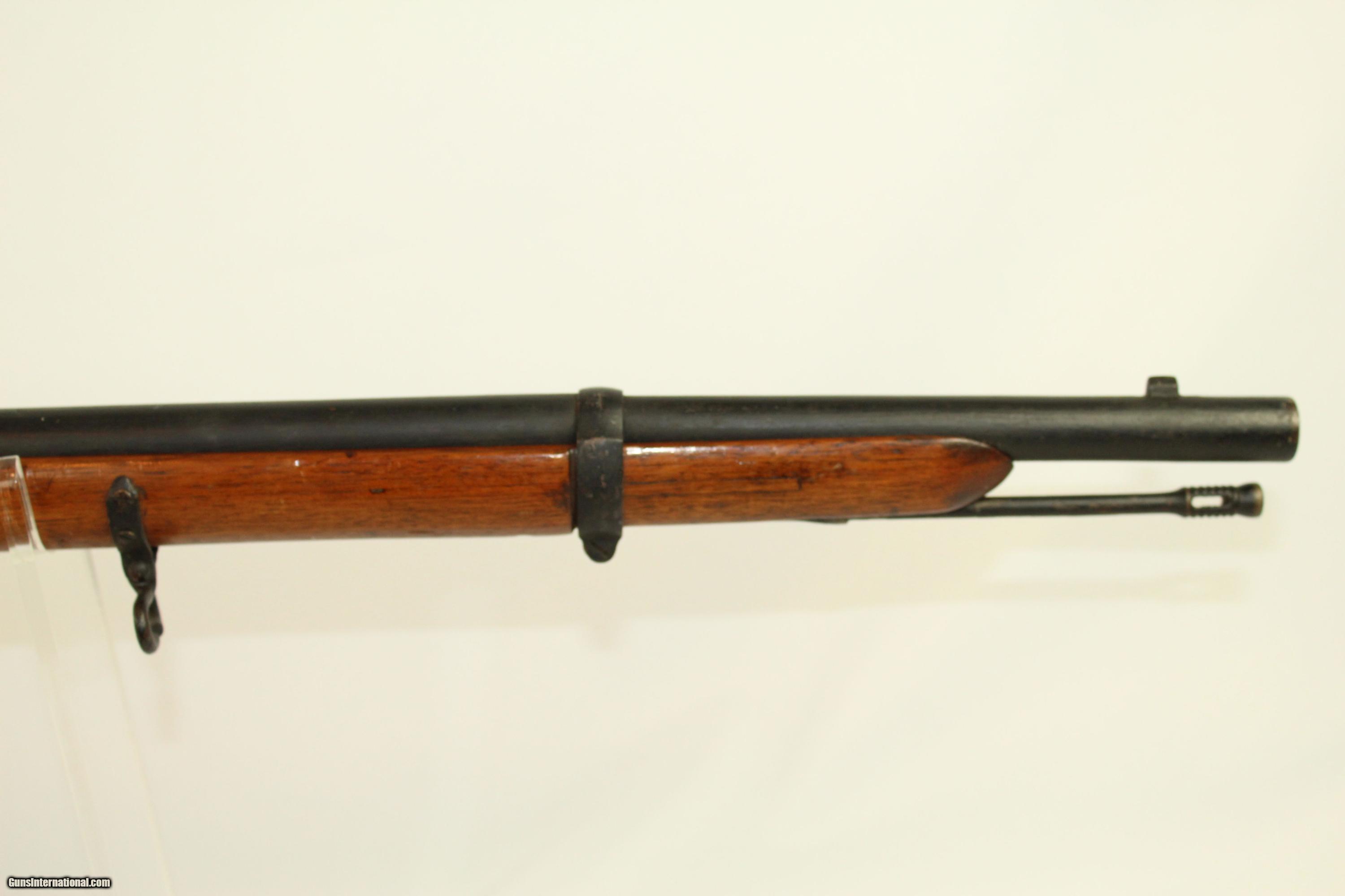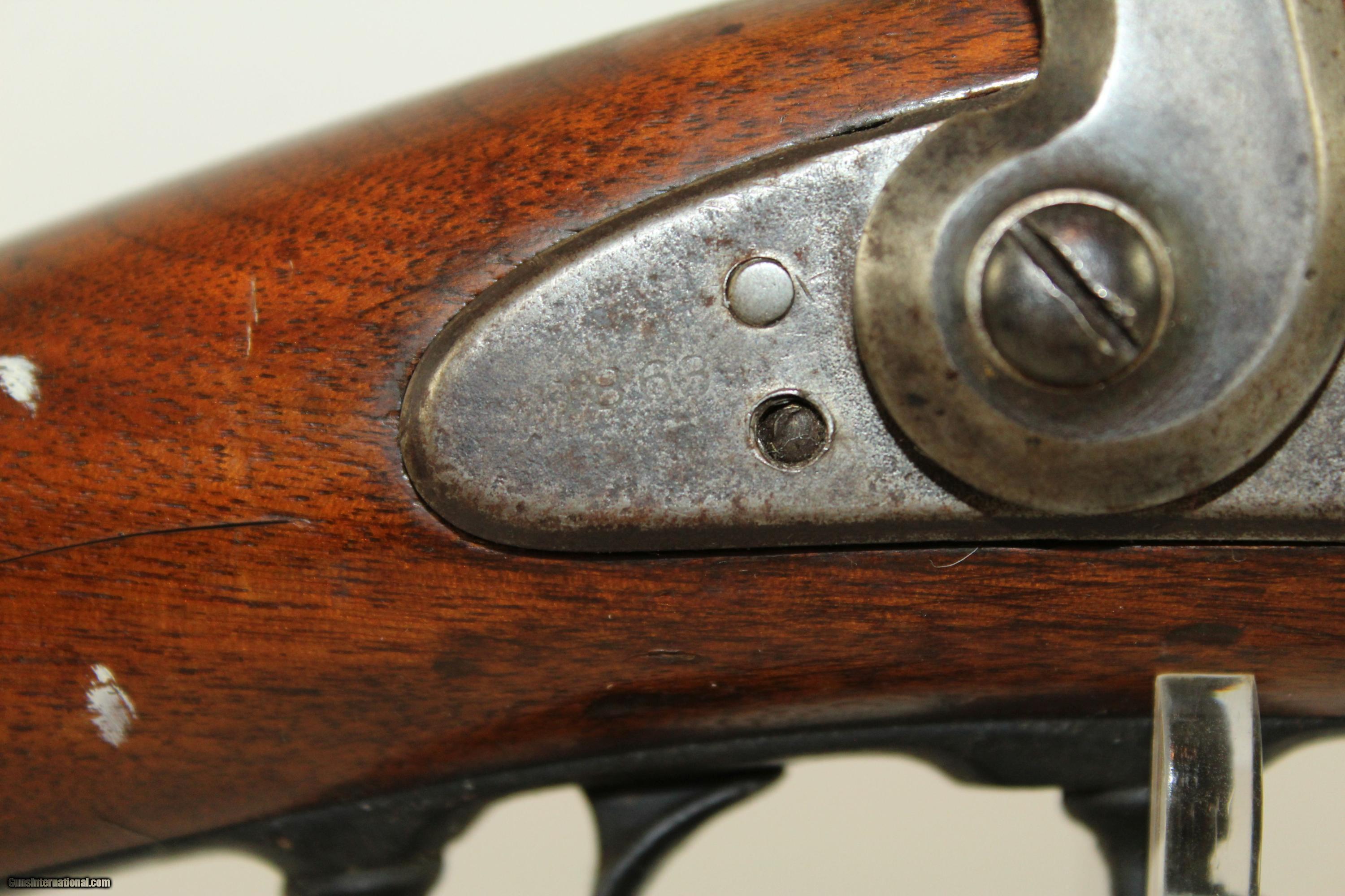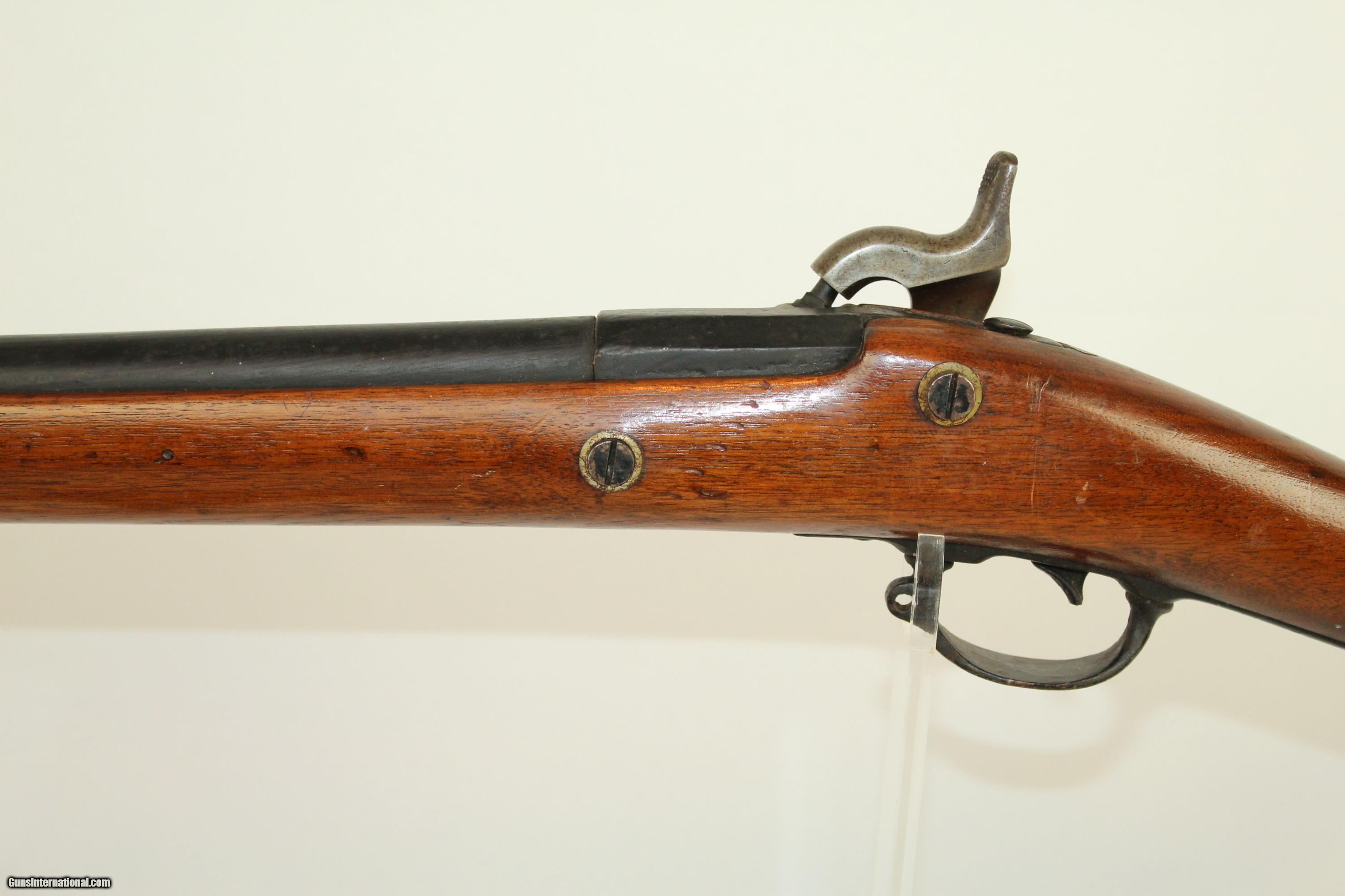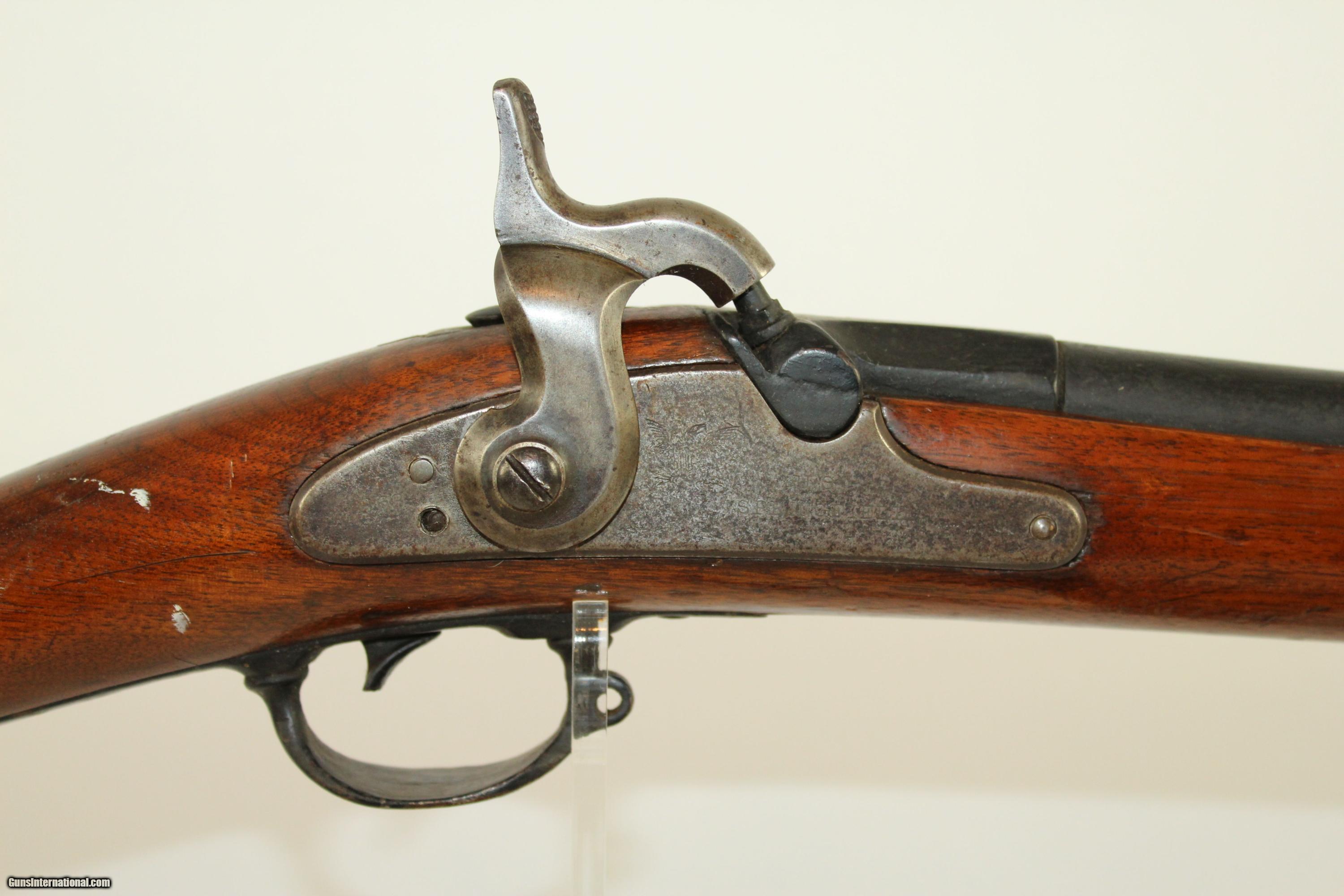 Description: CIVIL WAR Trainer US Springfield 1863 Rifle-Musket Primary Infantry Weapon of the American Civil War Here we present an antique U.S. Springfield Model 1863 Rifle-Musket Trainer, the lock of which was made in 1863 at Springfield Armory in Springfield, Massachusetts. The M1863 is representative of the “everyman’s” rifle during the American Civil War. About 1.5 million rifle-muskets were made in the U.S., over 800,000 of which were made by the Springfield Armory. This was the last hurrah of the rifle-musket as arms development and tactics rapidly advanced during the short period of the American Civil War. Nevertheless, the 1863 represented new technology as it was made for use with the Minié ball, a hollow based, conical projectile that was small enough to quickly push down the muzzle of a rifled barrel, and expanded to create a good gas seal unlike solid round ball. This specimen utilizes an 1863 dated lock, and it is conceivable that it may have been used to train troops or perhaps they were even made for children to play or drill with. The lock is marked “1863” and “U.S. Springfield” with a federal eagle. There is an 8 inch section of hollow metal tube, while the rest of the barrel is made of wood. Overall condition is good. The stock is solid wood. Lock has no spring tension. Own the original! This is a legitimate antique and not a reproduction. Barrel is 29 inches in length. Caliber: Not meant to fire The firing mechanism is functional. Overall condition as seen in photos. Here is an interesting piece that would be an interesting collectible or a historically themed gift for a child. Very Fast. Very Safe. FREE SHIPPING WORLDWIDE. Delivered directly to your door by express mail! Guaranteed AUTHENTIC & Includes CERTIFICATE OF AUTHENTICITY. ancestryguns $600 #10377 SOLD Antique: Yes |