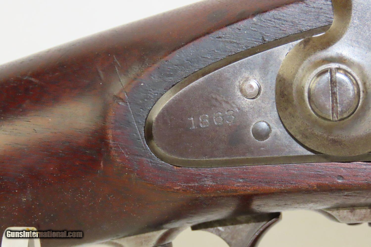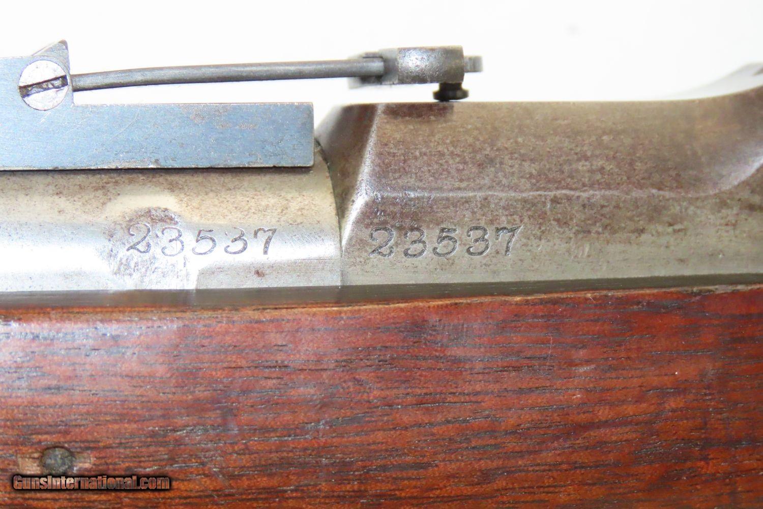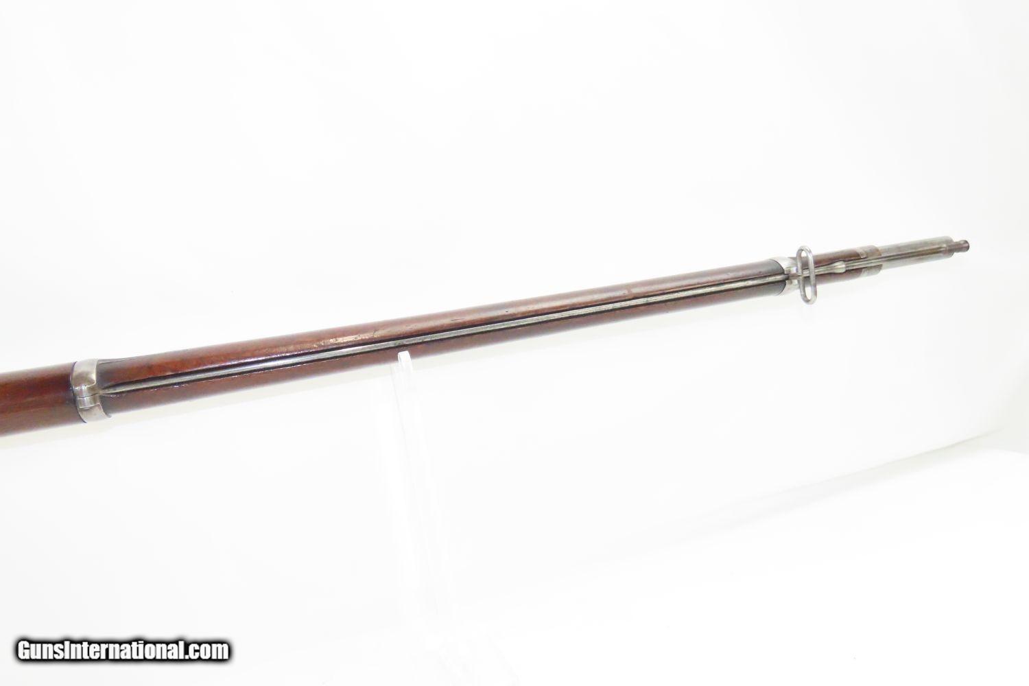 Description: INDIAN WARS Antique SPRINGFIELD Model 1868 Breech Loading TRAPDOOR Rifle Primary Infantry Rifle of the Post-Civil War/Indian War Era Here we present an antique Springfield U.S. Model 1868 Trapdoor Rifle, made circa 1870 in Springfield, Massachusetts for the U.S. Military. Over 51,000 Model 1868 rifles were produced at the Springfield Armory between 1868 and 1872. These arms feature the distinctive “Trap Door” breech loading system designed by Master Armorer Erskine S. Allin, who was the key to many military issued and experimental arms between 1865 and 1894. Some Model 1868 rifles, including this one, were produced with lockplates bearing the dates of 1863 or 1864, while barrels are dated 1869 or 1870. The Trapdoor Rifle was the primary weapon in the U.S. military from the end of the Civil War to the end of the 19th Century, encompassing the Indian Wars and even the Spanish-American War in Cuba. It was still being used when the Springfield 1903 was adopted. These rifles were initially made by converting muzzle loading Civil War muskets to single load cartridges from the breech by installing a “trapdoor”. Later iterations were purpose built from the ground up and chambered for .45-70 GOVT, but these early conversion examples were chambered for the even more massive .50-70 GOVT. The overall condition is very good+. The action is strong all around. The bore is bright with sharp rifling. Nice patina and silvered case colors. All markings are clear and legible. This example features 4 cartouches on the left side of the stock! The butt plate tang is stamped “US”. A great, working example of the famous Trapdoor Springfield! Own the original! This is a legitimate antique and not a reproduction. Barrel is 32-1/2 inches. Caliber: .50-70 GOVT Overall condition as seen in photos. Very Fast. Very Safe. FREE SHIPPING WORLDWIDE. Delivered directly to your door by express mail! Guaranteed AUTHENTIC & Includes CERTIFICATE OF AUTHENTICITY. ancestryguns $1825 #201631 SOLD Antique: Yes |