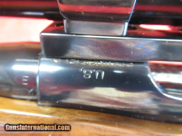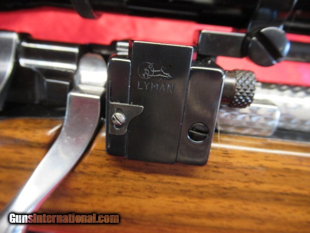 Description: 22" Barrel, 13 1/4" lop to White Line Pad, Top of trigger stamped Jeager, Beautiful English Walnut Stock, Great bore, 99% blue, wood shows light handling marks, Comes with Lyman 2.5 Scope with post reticle, Beautiful Jeager Custom 22 rifle!!! Buyer pays 50.00 shipping Pa residents add 6% sales tax Price is for check or money order, Cc add 3% SOLD |