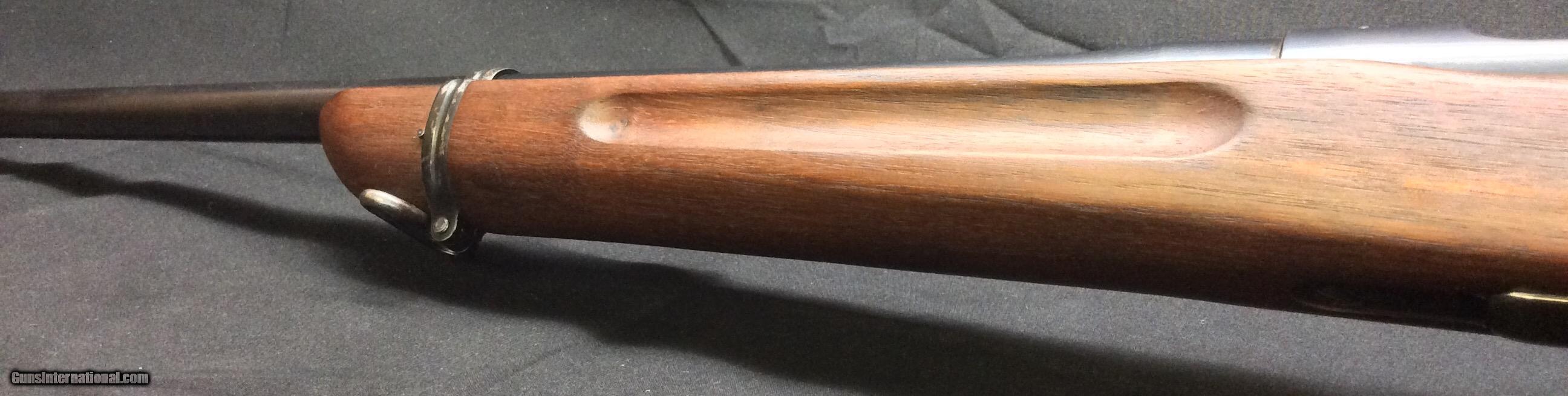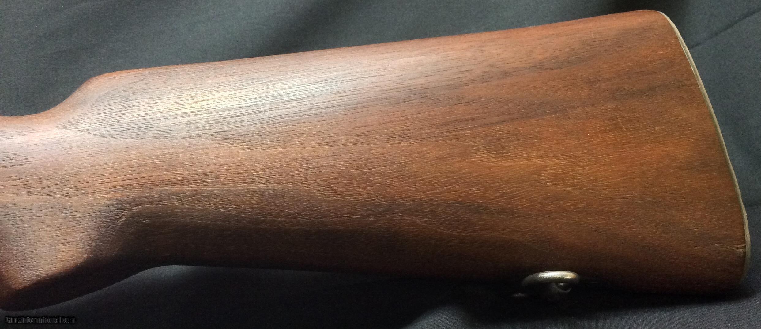 Description: Springfield 1922 .22 Hornet. Marked serial number “3”, on the top of the barrel proximal from the front sight is marked per the standard Springfield markings with a “4-22”. On the bolt handle “WL3” is marked on the top and “716” on the bottom. No other visible stamped markings, although there is “4307” electro penciled on the receiver. 24" barrel with a good bore. Sharply checkered butt plate, stock in excellent shape, normal action wear and some user wear on the finish including some scratches, also note some superficial rust on the trigger guard and floorplate. Authentic standard Lyman rear sight. Follower and spring are missing. Possible Prototype or early production. SOLD |