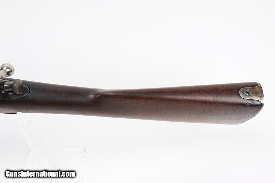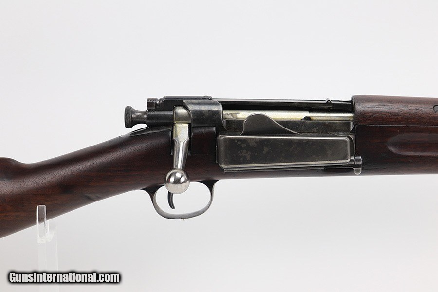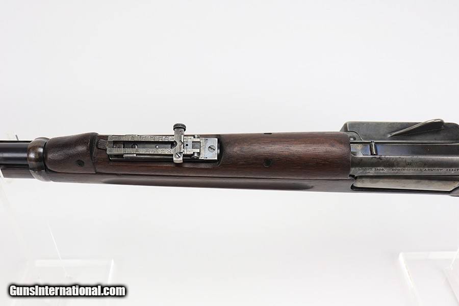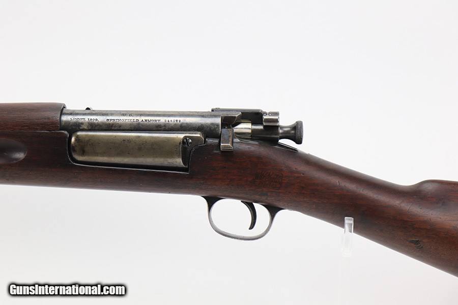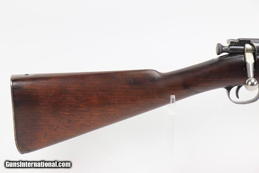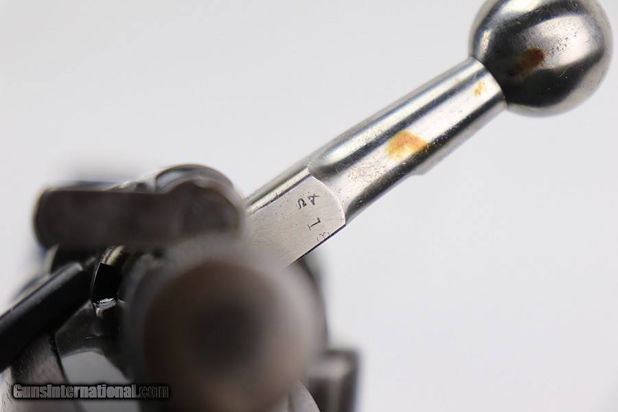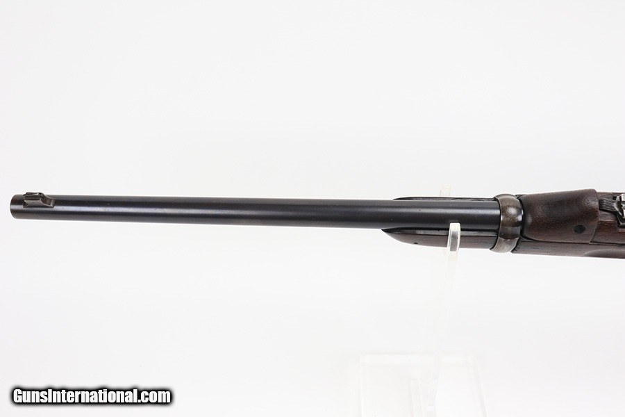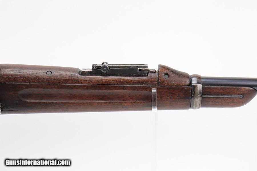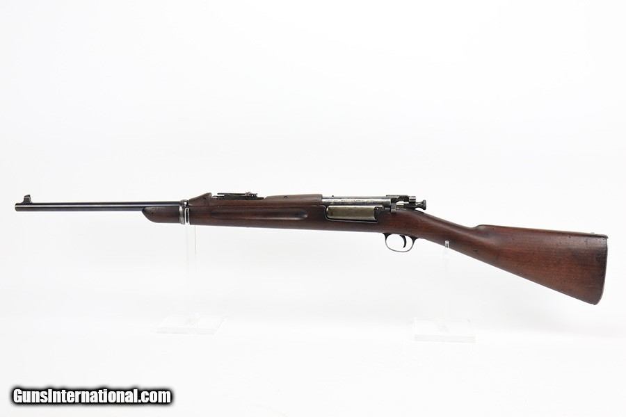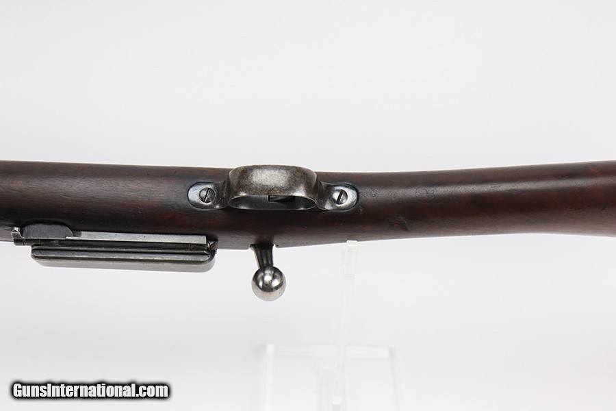 Description: This is a nice example of a Springfield Krag Model 1898 Carbine manufactured in 1900. The gun is matching, the receiver is "US" property marked, and there is a visible military cartouche on the left side of the stock - dated 1900. This particular gun is outside the accepted serial range for these carbines, but it does have a properly "C" marked rear sight. It has retained roughly 60% of its finish with the majority of the bluing loss on the barrel band, receiver, and trigger guard. Spotty discoloration on the magazine. Some areas of spotty oxidation here and there, most noticeable on the butt plate. Excellent wood stock with only minor dings here and there. The bore is shiny with great rifling and very minor pin-pricking throughout. Now on GB SOLD Curio/Relic: Yes Rifle Caliber: .30-40 Krag |