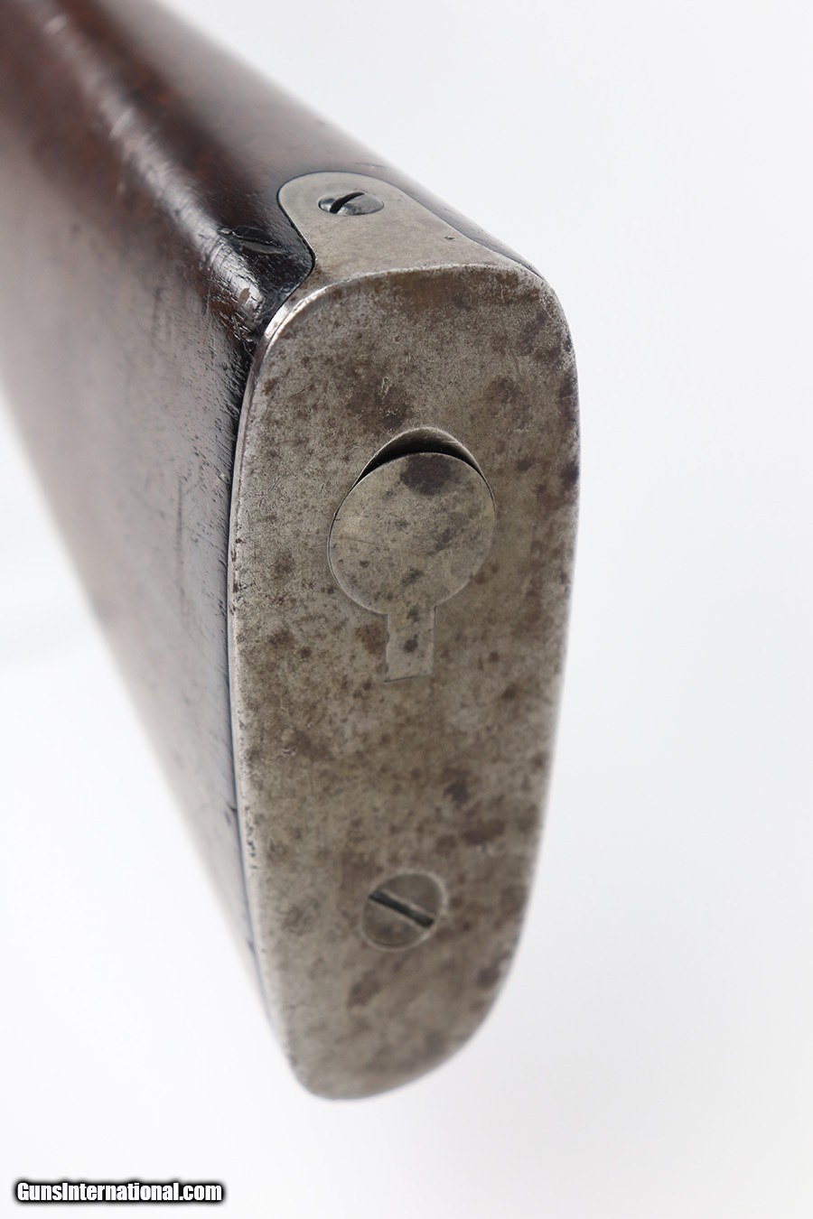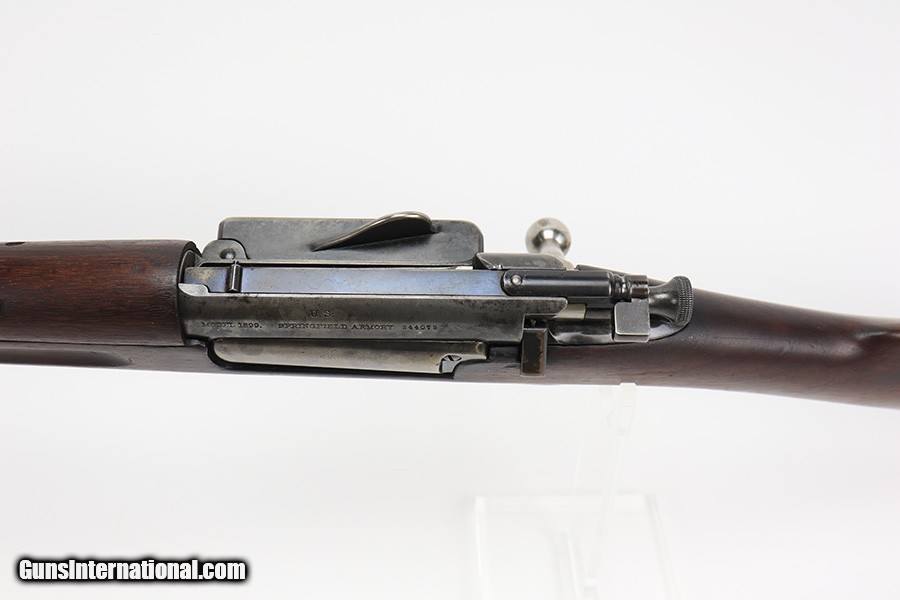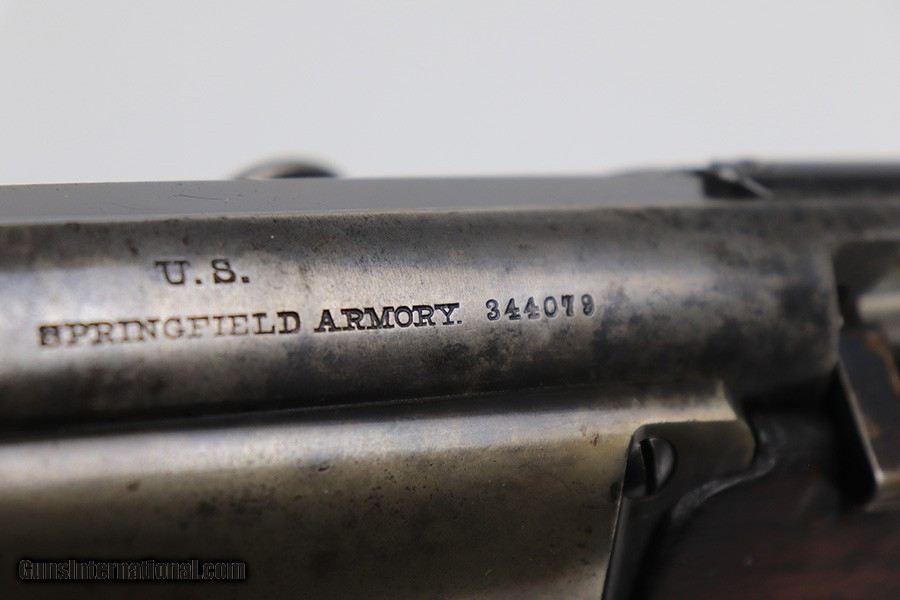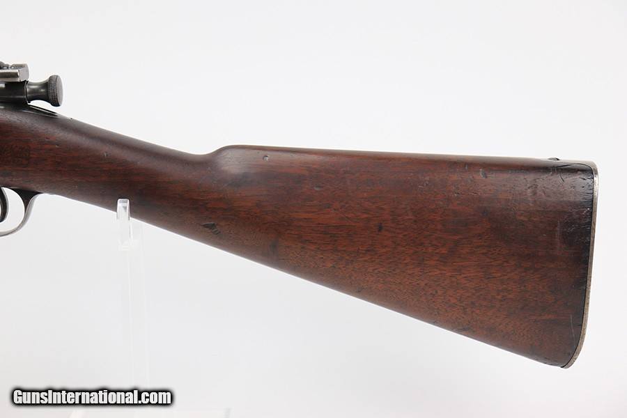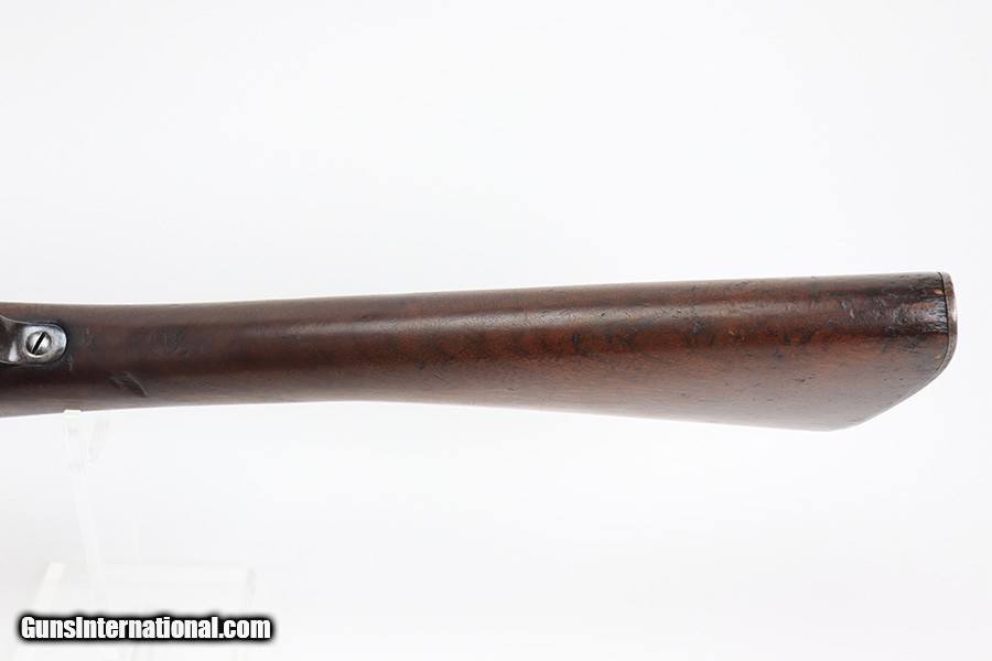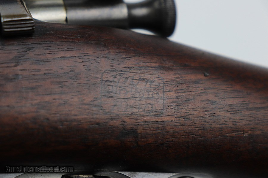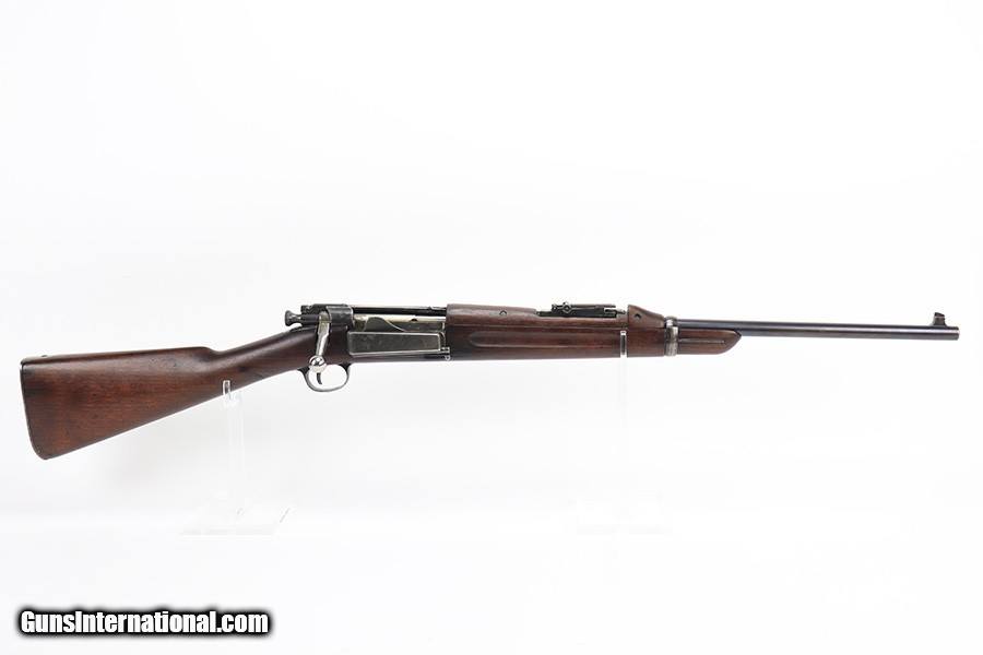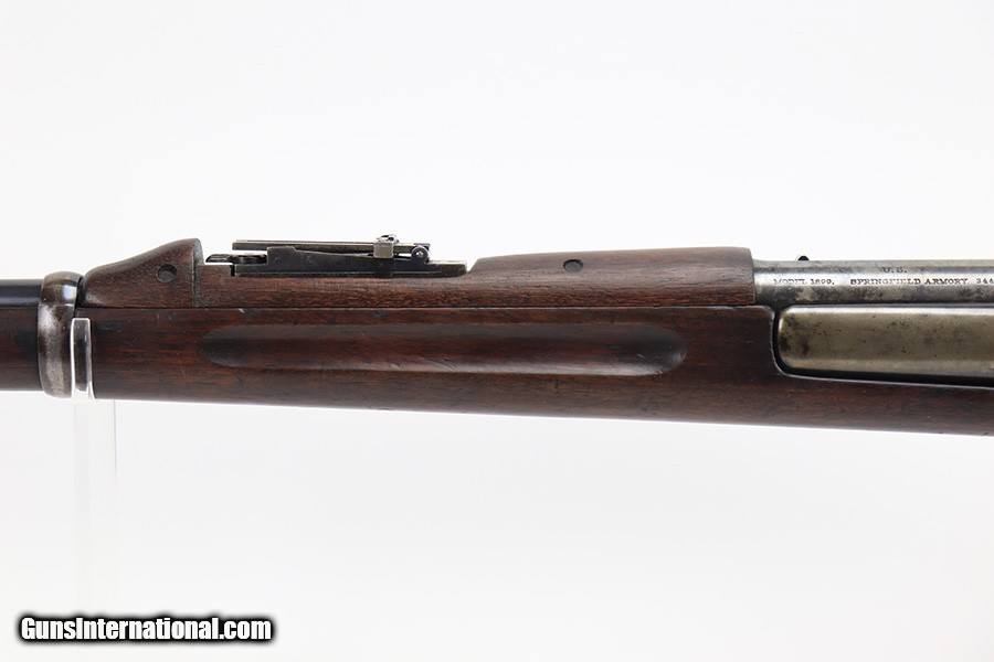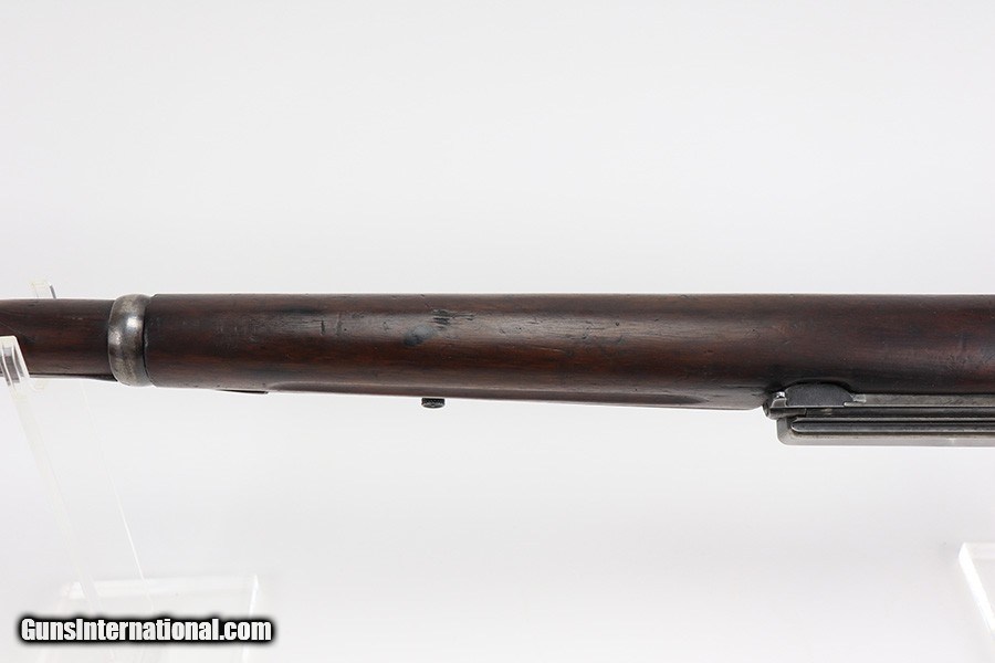 Description: This is a nice example of a Springfield Krag Model 1898 Carbine manufactured in 1900. The gun is matching, the receiver is "US" property marked, and there is a visible military cartouche on the left side of the stock - dated 1900. This particular gun is outside the accepted serial range for these carbines, but it does have a properly "C" marked rear sight. It has retained roughly 60% of its finish with the majority of the bluing loss on the barrel band, receiver, and trigger guard. Spotty discoloration on the magazine. Some areas of spotty oxidation here and there, most noticeable on the butt plate. Excellent wood stock with only minor dings here and there. The bore is shiny with great rifling and very minor pin-pricking throughout. Now on GB SOLD Curio/Relic: Yes Rifle Caliber: .30-40 Krag |