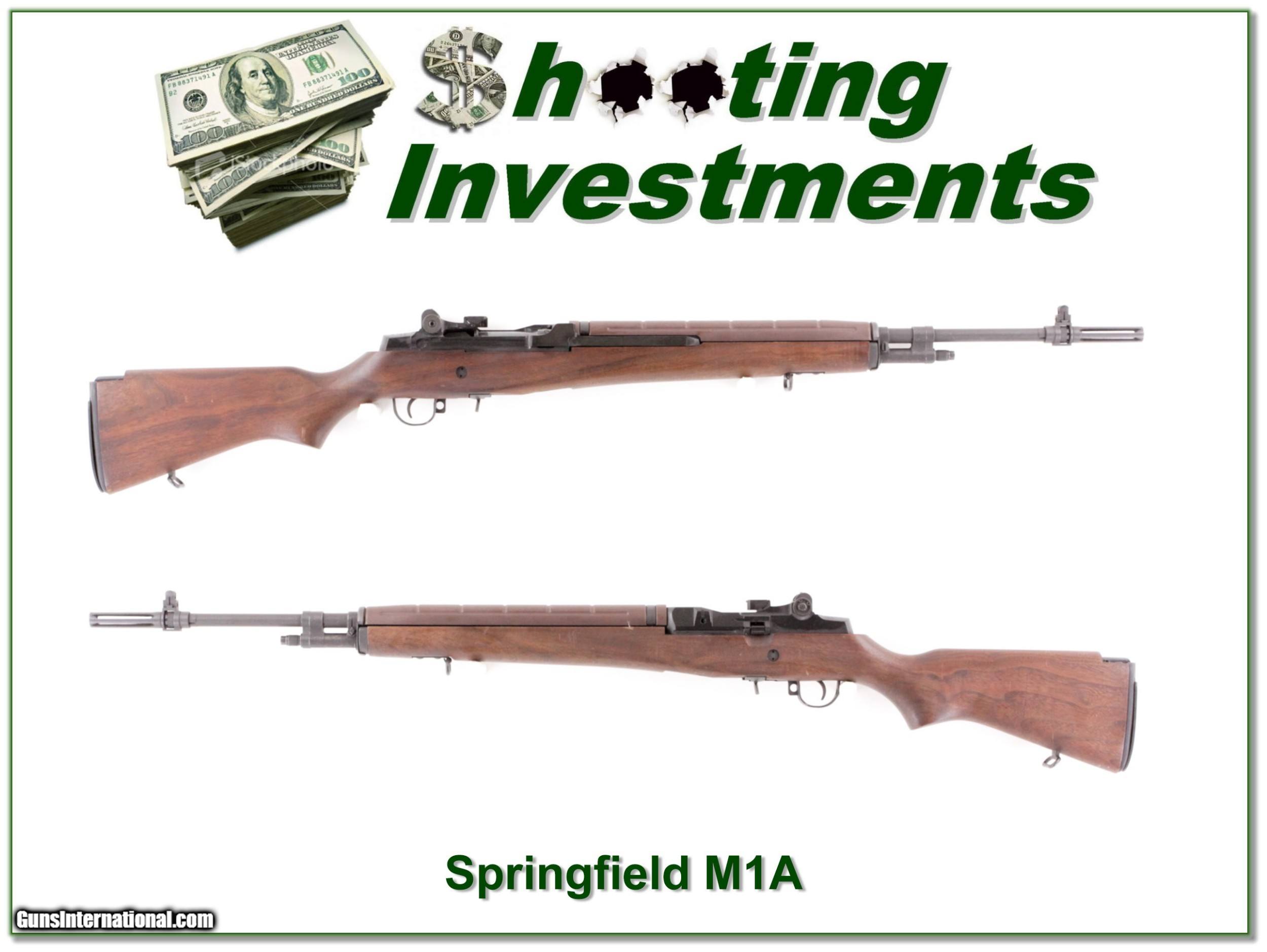 Description: Shooters and collectors this is an excellent condition Springfield M1A. It was made in 2005 and comes as seen with no magazine. Its owner could find it! I am selling this one on consignment and as such lay-a-way can’t be used. It does of course have the standard 3-day inspection. Shipping with insurance is $39. Please email me with any questions or larger pictures. (Consign your quality firearms with Shooting Investments for only 12%! Let me know if you have any you would like to sell!) 18-1034 Payment: Payment is by Money Order, Cashiers Check or Personal Check. I can now also accept MasterCard and Visa with a 3% convenience fee. PayPal can be used for some items but never firearms. Please let us know if you would like to pay via PayPal. Shipping: The shipping charge will be listed in each description. It is $39 for most long guns and $29 for most handguns. Some heavy guns or those insured for over $2000 will be higher. Shipments to Alaska and Hawaii are higher because air shipment is required. Most firearms are shipped on Tuesday and Thursday and usually in 5 days of receipt of payment. We package all shipments carefully and insure them. For long guns you can purchase a new Plano case for $19. They now cost us $22 when buying 100 at a time. Optics are shipped Priority Mail and most other non-firearm shipments are shipped First Class. Returns: Our return policy is simple. If for any reason you are not pleased with your purchase, you may return your item for a full refund of purchase price. Ammunition cannot be returned. It is important to us that you are happy. Guns cannot be fired or dissembled before returning them and they must be returned in the same condition as received. Notification of a return must occur with-in 3 days of receipt at your dealer. Shipping, convenience and dealer fees are not refundable and are the responsibility of the buyer. Lay-a-way: If needed, we offer a 60 day lay-a-way option on most firearms. It is 1/3 now, 1/3 in 30 days and 1/3 in 60 days. Lay-a-way firearm sales are final and if not completed the first payment cannot be returned. Consigning your firearms with Shooting Investments: We will help you get top dollar for your firearms. While most local guns shops charge 20% or more, our fee is only 12% with a minimum of $75. At your local gun shop it might take months to sell. Selling on-line provides instant access to thousands of interested buyers. You won’t find any other on-line dealer willing to sell your firearms for only 12% or listing every gun on 3 separate s. Selling through an House typically costs the seller 15% and the buyer an addition 15% (so 30%) and you have to wait several months to sell and longer to receive funds. If properly priced, we will sell your firearms in a few weeks. Send us an email or give us a call and we’ll explain how easy it is for you to get top dollar. Trading: Trading for use is really just buying your gun to re-sell. If you have a gun you want to trade, please email a picture and we will let you know what we can give or it. You will always get more if we sell it for you on consignment. Help for California Buyers: We are happy to ship to California. It is the buyer’s responsibility to make sure any item you buy is legal in your state. We are also happy to help with your purchase of a firearm from someone other than us. If you see a gun you would like to buy but the seller can’t or won’t ship to California they can ship to use and we’ll then ship it to your California dealer. The cost for this service is only $30 + shipping. Let us know if we can help! SOLD |