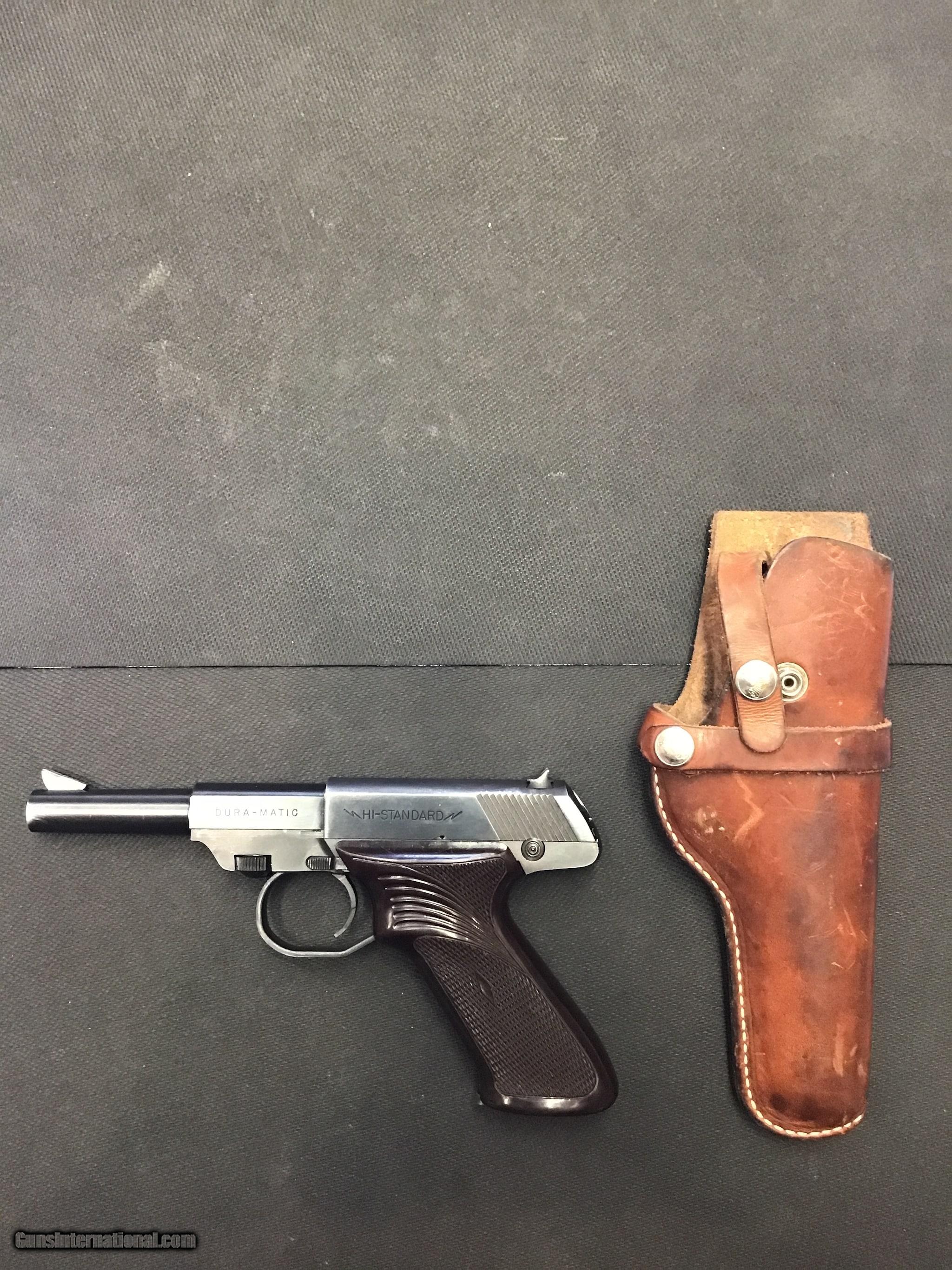 Description: Guns Listing ID: 996961 One magazine Leather owb holster SOLD Manufacturer: HI-STANDARD Model: M-101 DURA-MATIC Caliber Info: .22 LR Condition: Used - Non-Certified Barrels: 4 BARREL Finish: BLUED |