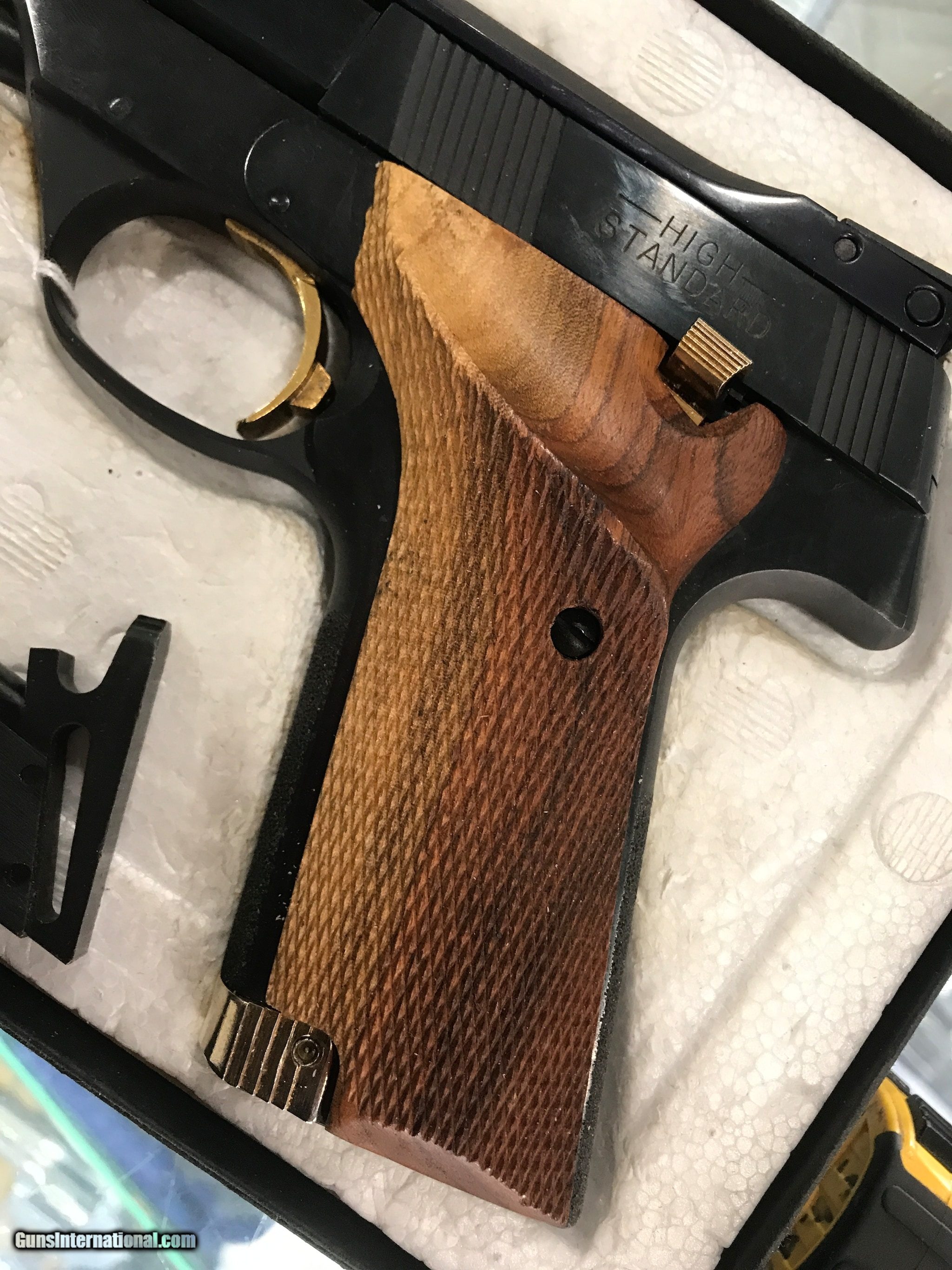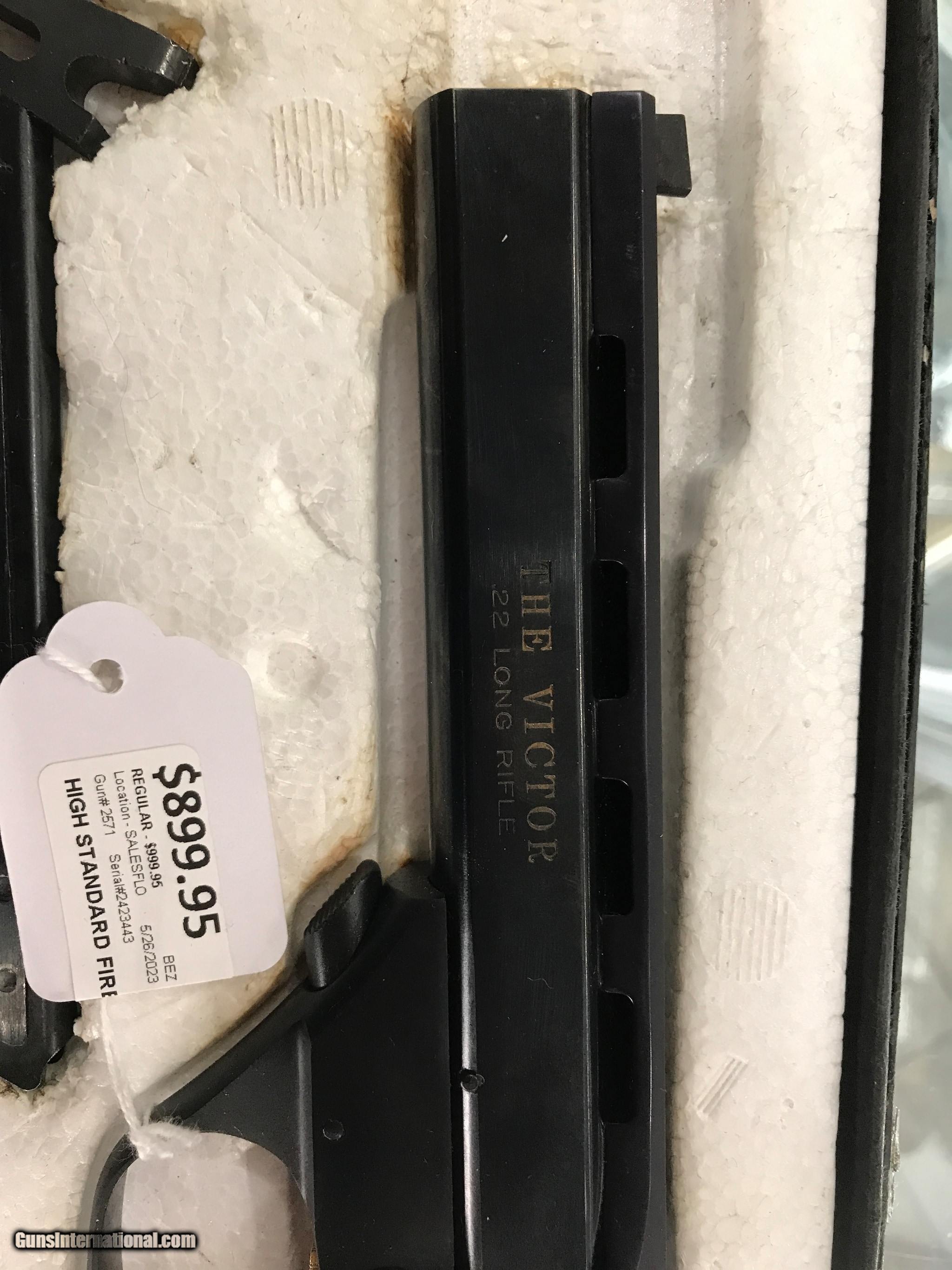 Description: Guns Listing ID: 871029 Great condition Wood grips Very light scratching Clean Golden trigger SOLD Manufacturer: HI-STANDARD Model: THE VICTOR Caliber Info: .22 LR Condition: Used - Non-Certified Barrels: 5.5 BARREL Finish: BLACK /W WOOD STOCK |