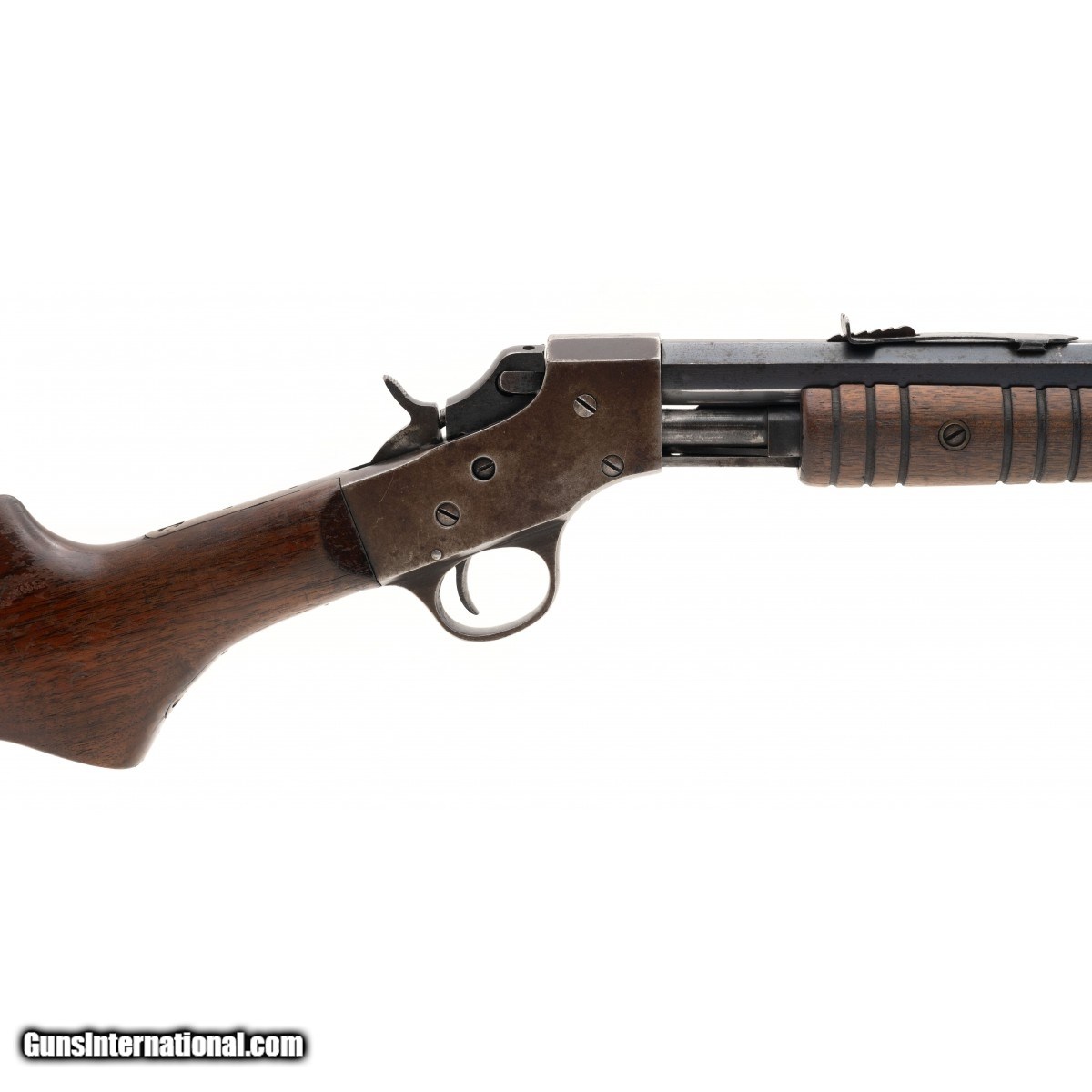 SN: A943. Manufactured circa 1915, .22LR with a 24"" barrel. Bore is excellent. Slide action rimfire rifle with unique visible action . The stock is in very good condition with the original buttplate