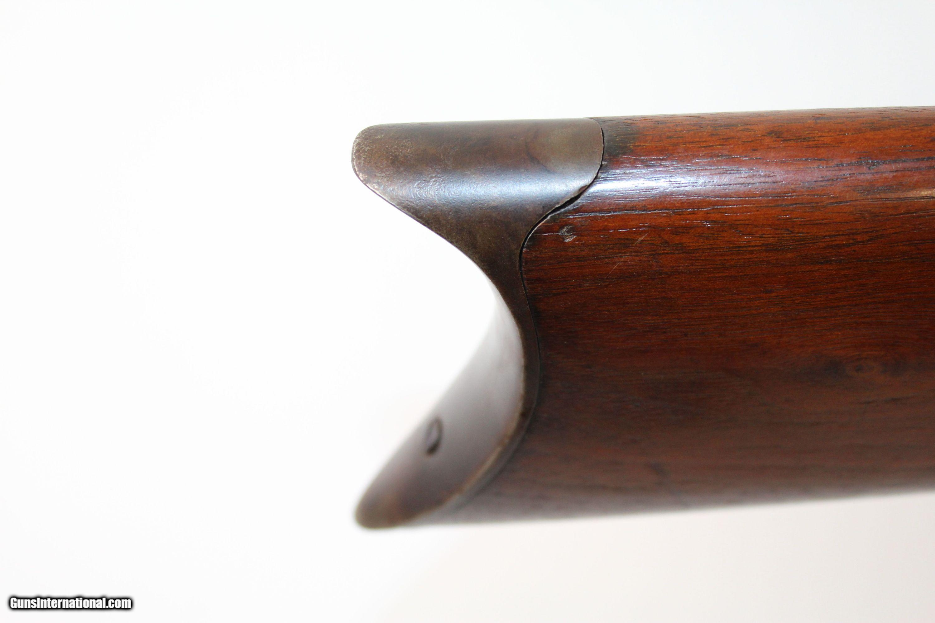 Description: Beautiful STEVENS Arms Co. “IDEAL” No. 44 Rifle Chambered in the Venerable .38-55! Here we present a Stevens Arms & Tool Co. Ideal No. 44 Rifle, made around the turn of the 20th Century in Chicopee Falls, Massachusetts. This rifle is numbered very early, but cannot be dated since the Stevens factory records were burned in their entirety. Production began in 1894 and went on through the early 20th Century. This rifle is chambered in .38-55, a very effective medium bore cartridge with minimal recoil. This rifle was manufactured right around the time that Stevens Arms & Tool Company was becoming the largest producer of sporting firearms in the world. By 1915, Stevens was a leader in the American arms business as a maker of target and small game hunting guns. This specimen is in great condition with vibrant case colors and would have been a fantastic hunting rifle. The barrel is a No. 2 weight, half-octagonal, half-round. The front sight has two available pictures: one is a small post, while the other is a fine bead inside a hood. The rear sight is an adjustable buckhorn. This rifle is also equipped with a tang sight for those ultra-precise long shots. The top of the barrel is marked “J. STEVENS A&T CO./CHICOPEE FALLS, MASS U.S.A PA’DAPR 17.94”. The left side of the barrel is marked “38.55” for the cartridge it chambers. The overall condition is very fine. The original blue finish is 60%. The original case colors are about 75%. The markings are clear and legible. The walnut stock is very fine. The bore is sharp and shiny. The action is strong. This rifle’s Achilles heel is one shared by many a No. 44. The link pins have stretched, so that the breech block falls when the hammer is cocked. Overall, this is a gorgeous example that just needs a little mechanical attention. This firearm is classified as a Curio & Relic. Barrel is 26 inches. Caliber: .38-55 WCF Overall condition as seen in photos. Very Fast. Very Safe. FREE SHIPPING. Will need to be sent to your local FFL or C&R licensee. This firearm is classified as a Curio & Relic. Guaranteed AUTHENTIC & Includes CERTIFICATE OF AUTHENTICITY. ancestryguns $1300 #6008 SOLD Curio/Relic: Yes |