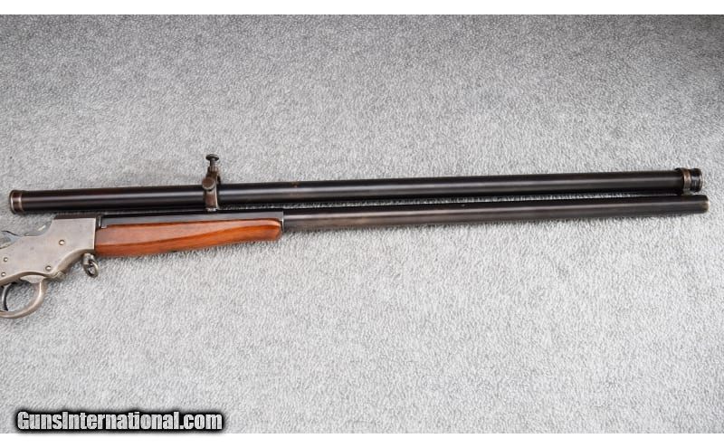 Description: This Stevens Arms & Tool Co. Favorite remains in excellent overall original condition. Wood is solid with good finish showing little use. Barrel has very good original blue with wear in high contact places in front of forend and muzzle. Bore remains bright and excellent. There is only faint case color left on receiver. Butt plate is in very good condition showing no cracks. Gun is complete with Stevens Arms & Toll Co. tube scope with fine crosshairs. Gun is stamped on top of receiver "J. Stevens A&T Co. - Chicopee Falls Mass. USA Pat. Apr. 1794". Very nice gun! .25 RF SOLD Metal Condition: Excellent Wood Condition: Excellent Bore Condition: Excellent Barrels: 22" Half Round - Half Octagon Triggers: Factory Stock Dimensions: 12 3/4" LOP Fore End: Uncheckered Straight Grip - Uncheckered Walnut Forend Butt Pad: """Stevens Favorite"" Checkered Black Hard Rubber Butt Plate Weight: 5 lbs Sights: Stevens Arms & Tool Co. Tube Scope Item Location: Wheeling |