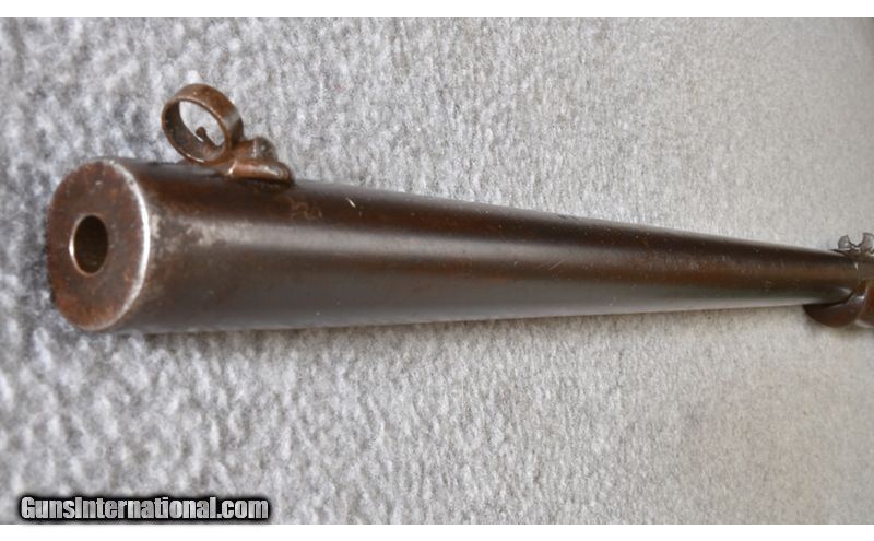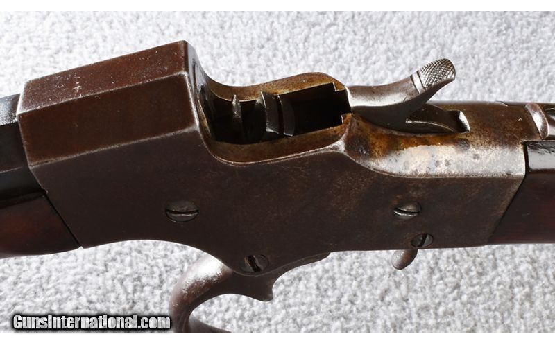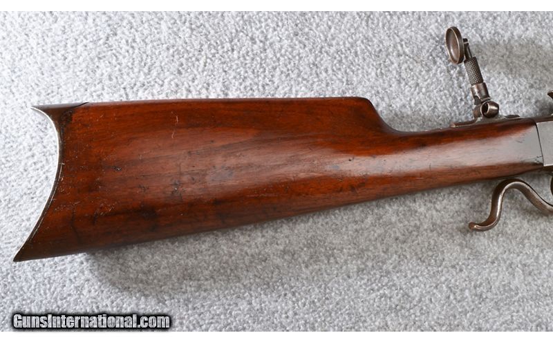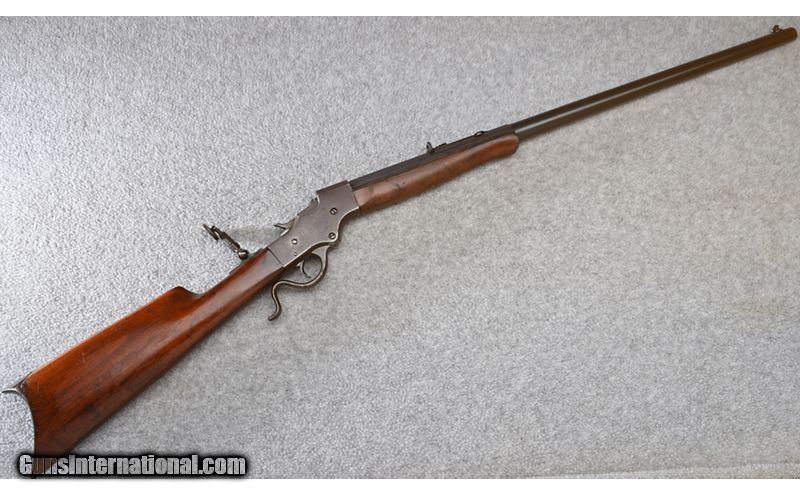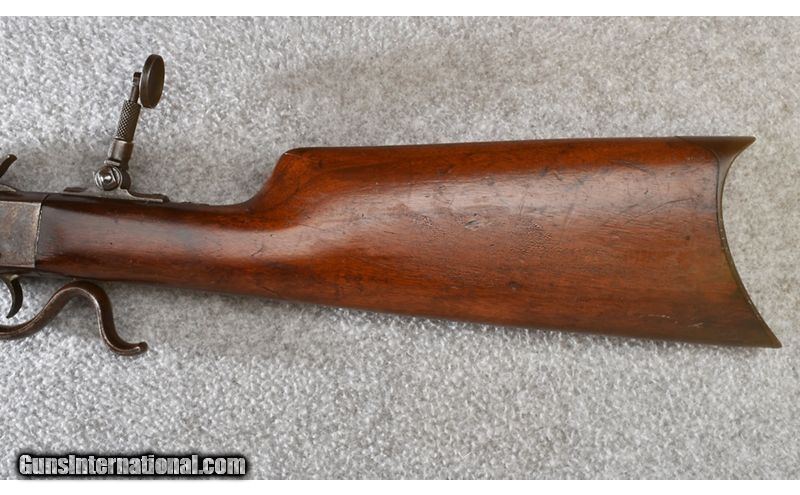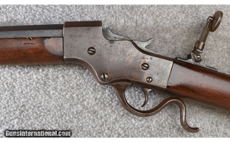 Description: J. Stevens founded in 1864 in Chicopee Falls, Massachuesettes, and in 1889 was changed to J. Stevens Arms & Tool Co. Wood is good with a hairline crack on right side above barrel. Metal has patinaed with age and shows some light oxidation. Bore is lightly pitted with rifling still visible. Complete with folding globe front sight and folding rear tang sight! Very interesting old gun! SOLD Metal Condition: Good Wood Condition: Good Bore Condition: Good Barrels: 26" Half Round/Half Octogon Heavy Barrel Triggers: Original Stock Dimensions: 13" LOP Fore End: Uncheckered Walnut Fore End - Uncheckered Walnut Straight Grip Stock Butt Pad: Crescent Metal Butt Plate Weight: 7.5 lbs. Sights: Folding Globe Front Sight - Adjustable Buckhorn Rear Sight - Folding Tang Rear Peep Sight Item Location: Wheeling |