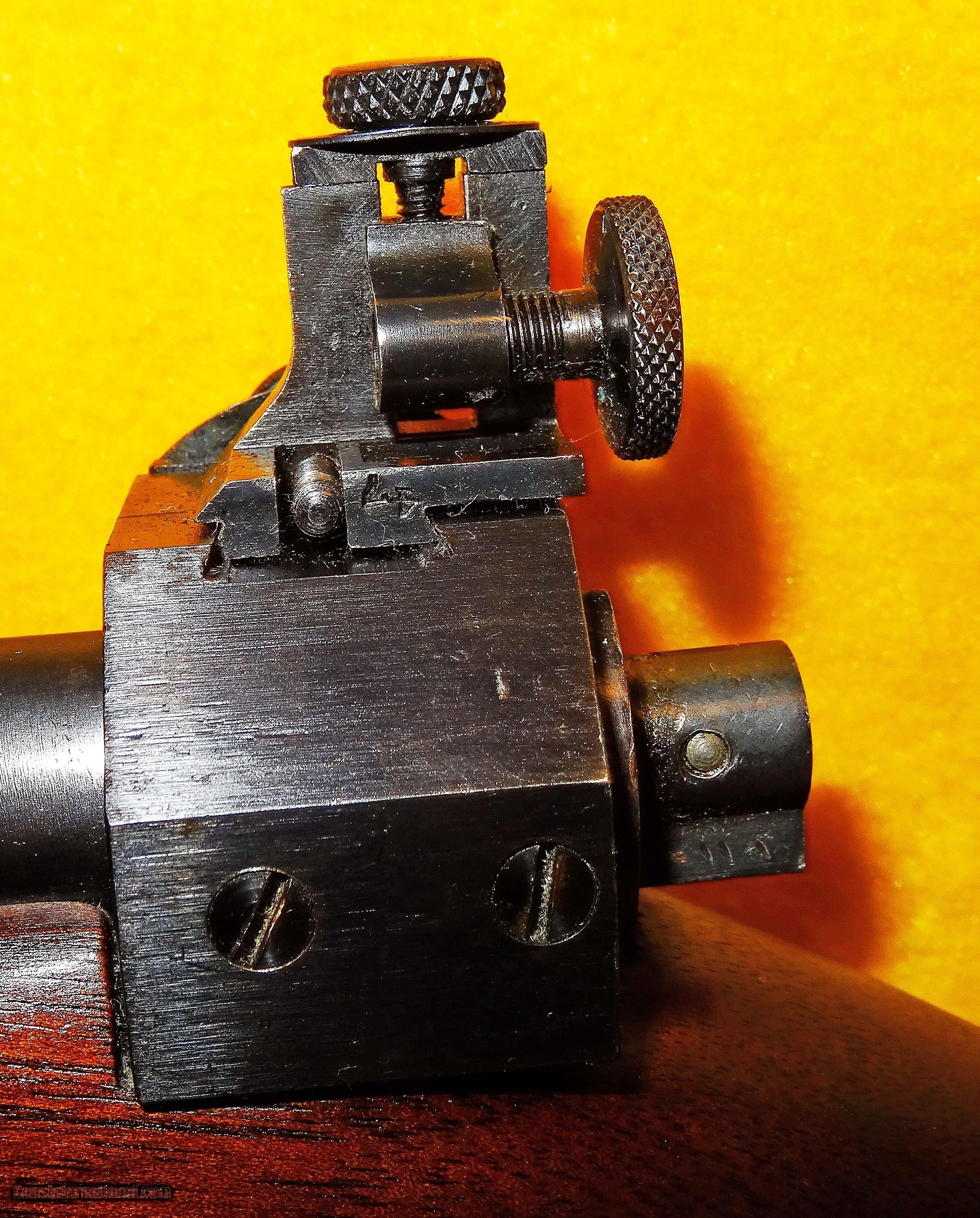 Description: STEVENS (CIRCA WWII) 416 (U.S. PROPERTY MARKED) IN .22 L.R. CAL., WITH 26" BARREL. COLOR BLUE. CONDITION 98%. SERIAL NUMBER 202216. STEVENS MODEL 416 (U.S. PROPERTY MARKED WITH FLAMING BOMB CIRCA WWII), X HEAVY TARGET BARREL WITH MIRROR BORE, WOOD EXCELLENT, REAR PEEP SIGHT, HOODED FRONT SIGHT, SET UP FOR A UNERTL STYLE SCOPE, COMES WITH A FACTORY FIVE ROUND MAGAZINE, 98% OVERALL CONDITION , OUR STOCK # D1299. SOLD |