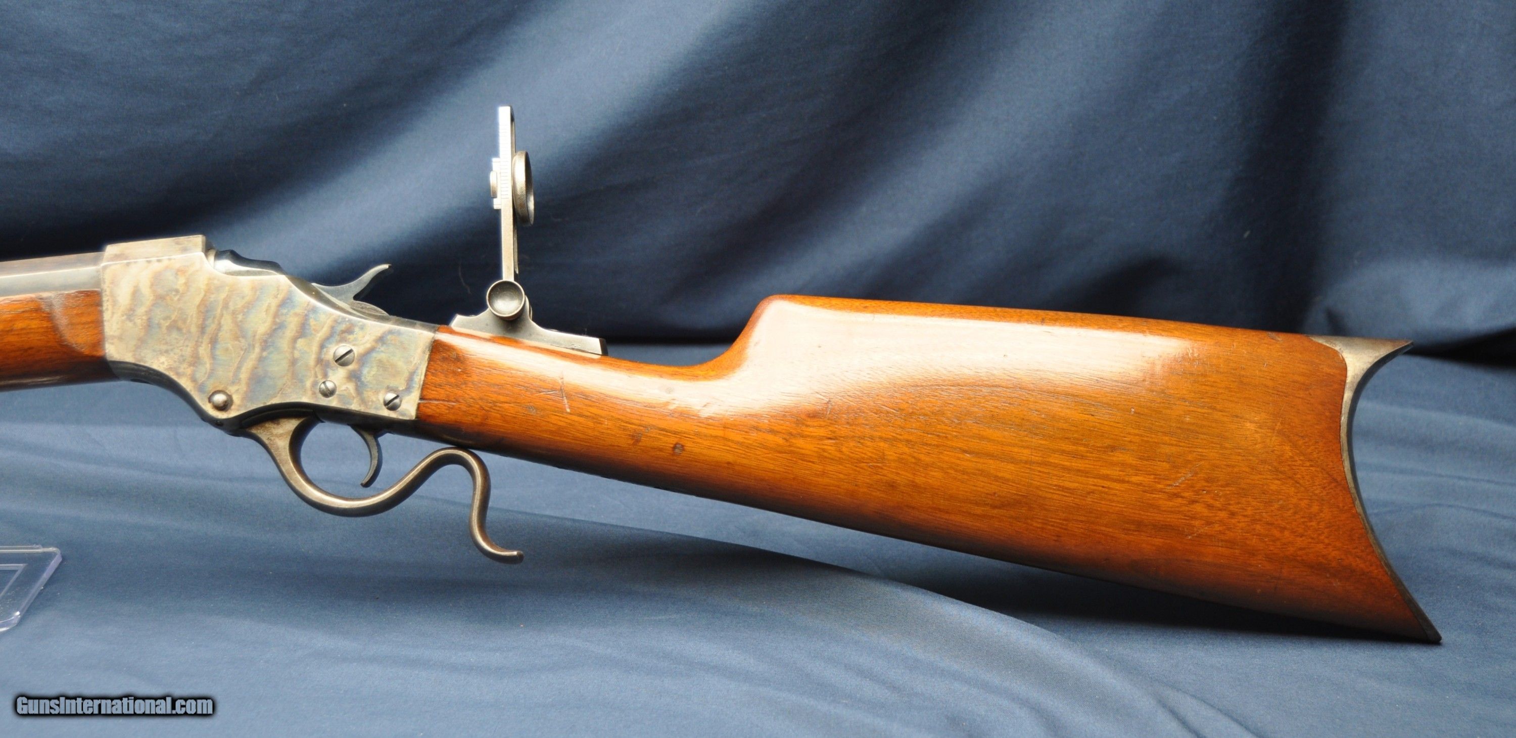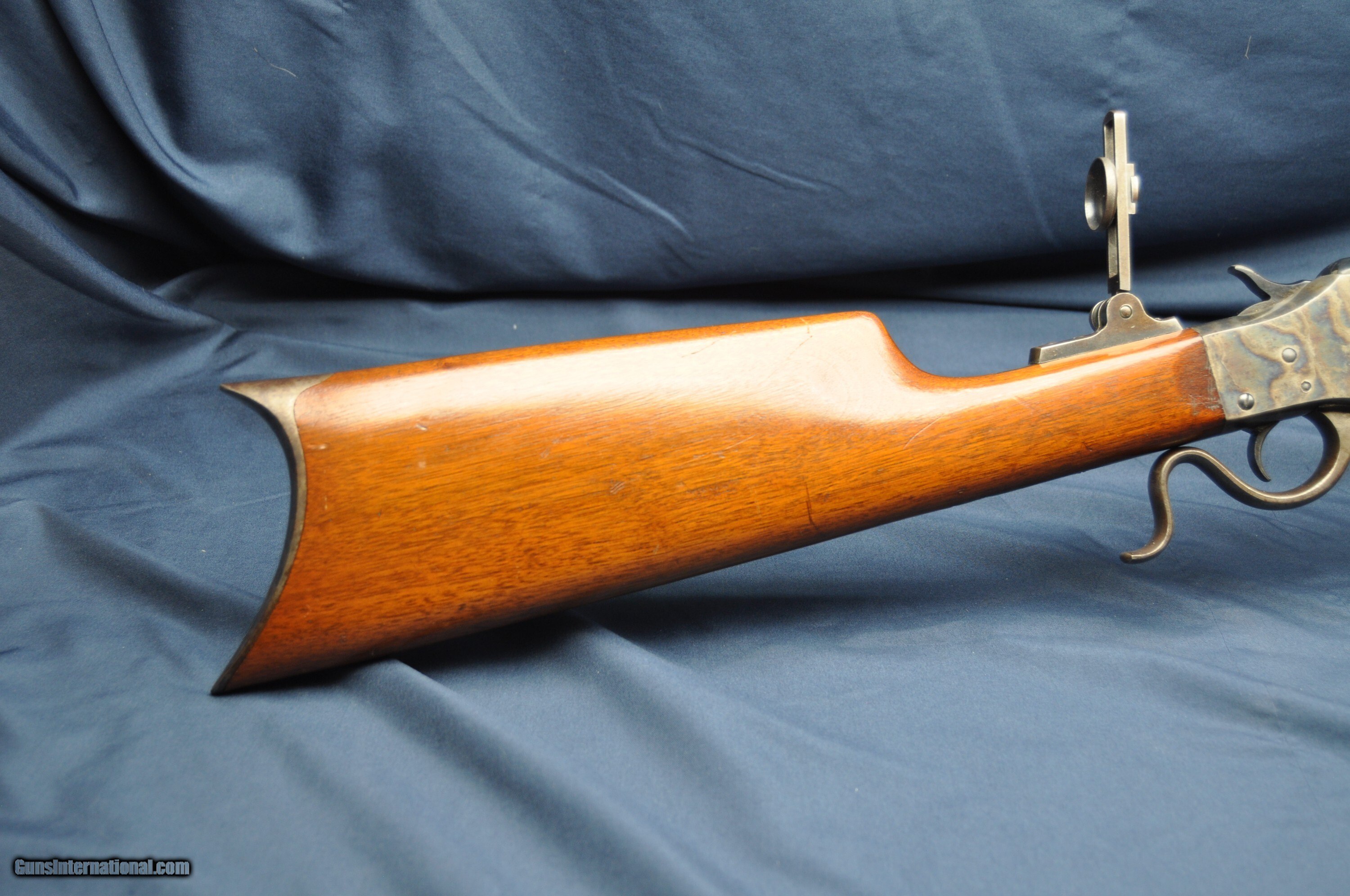 Description: A very nice, original J. Stevens 44 1/2 falling block rifle. Serial number 2792 chambered in .22lr. with a 24" half octagonal barrel. Case on the reciever is in very nice, vivid condition, with some light usage wear on the edges. Butt shows case but is dulled a bit. Blueing is nice, with some light wear and scratches, especially near the muzzle. Stock and forend are in very nice condition with normal wear from usage over the years. Bore is very nice. Action works smoothly and locks up tight. Email with any questions, for more pictures or to make an offer. Curio/Relic: Yes Rifle Caliber: .22 Long Rifle Manufacturer: J Stevens Model: 44 1/2 Serial Number: 2792 Barrel Length: 24 Condition: very nice Price: $1,350.00 Contact Seller |