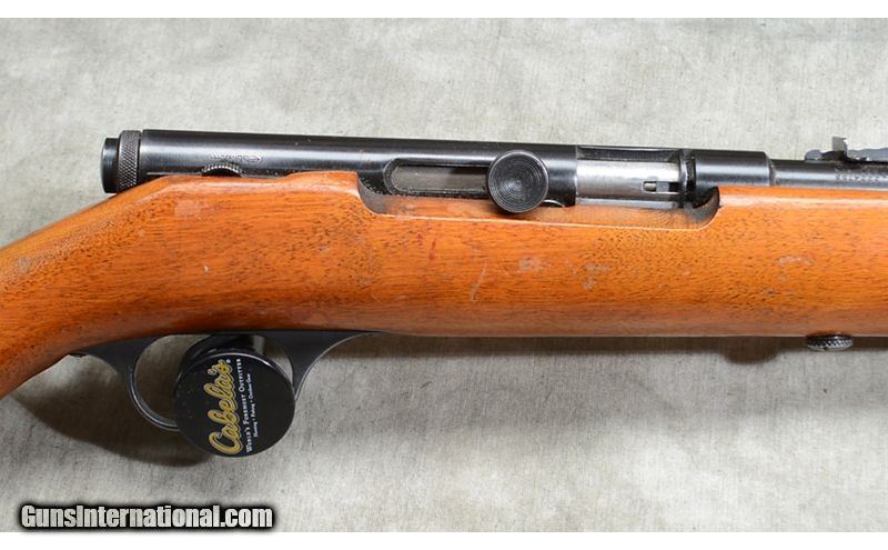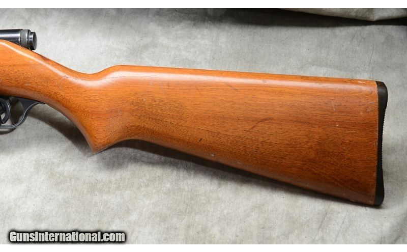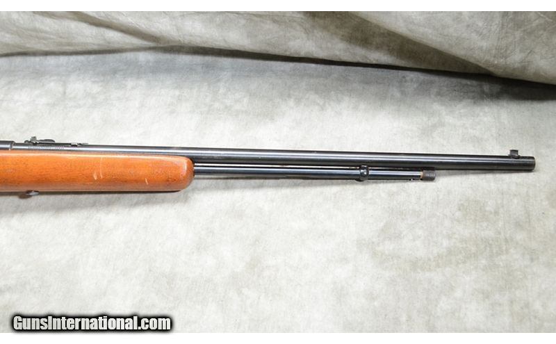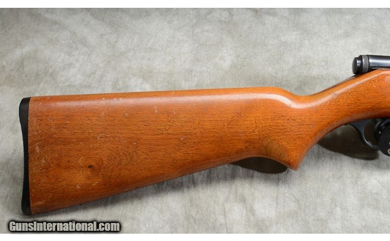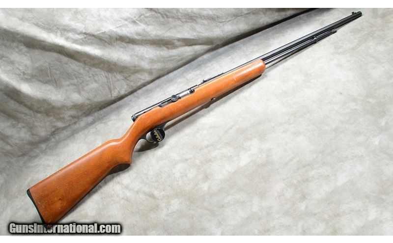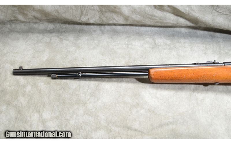 Description: Features hardwood stock, tubular magazine and bright bore. Nice little everyday hunting and pest control rifle. .22 Long Rifle SOLD Chambers: 15 Metal Condition: Good. Some blue wear and handling marks. Wood Condition: Good. A number of small scratches and dents. Bore Condition: Shiny and bright with good rifle. Barrels: 24 inch Triggers: Factory trigger. Stock Dimensions: 13-3/4 inch LOP. Butt Pad: Black plate. Weight: 6 lb - 5 oz Sights: Bead and notch "iron" sights. Item Location: Rogers |