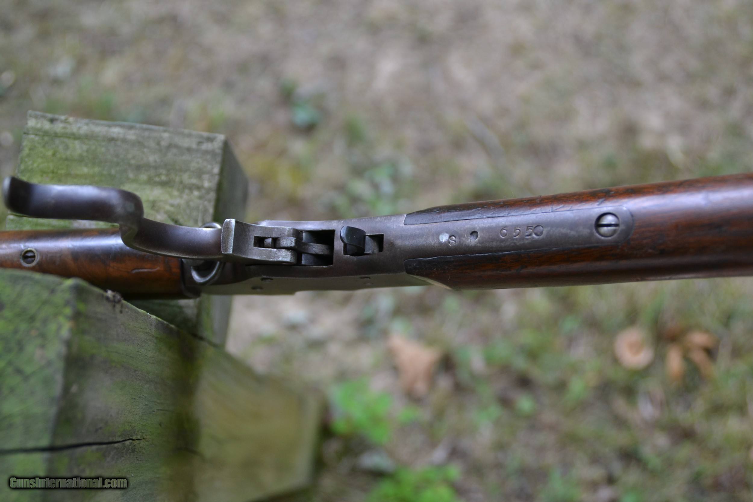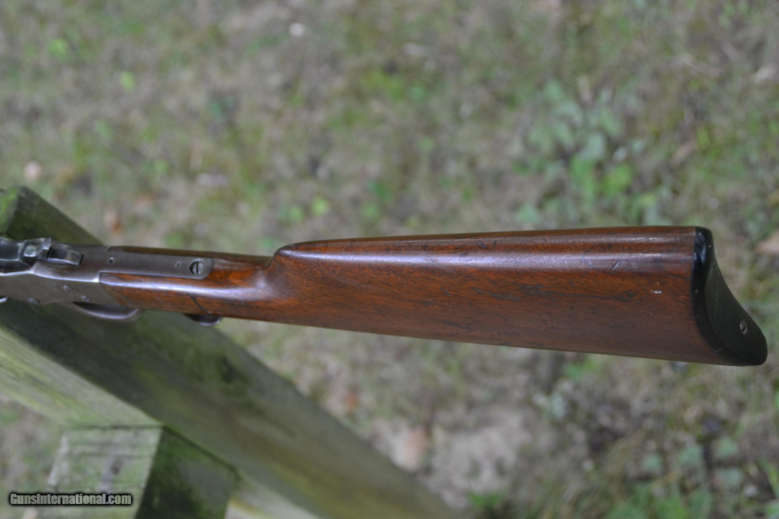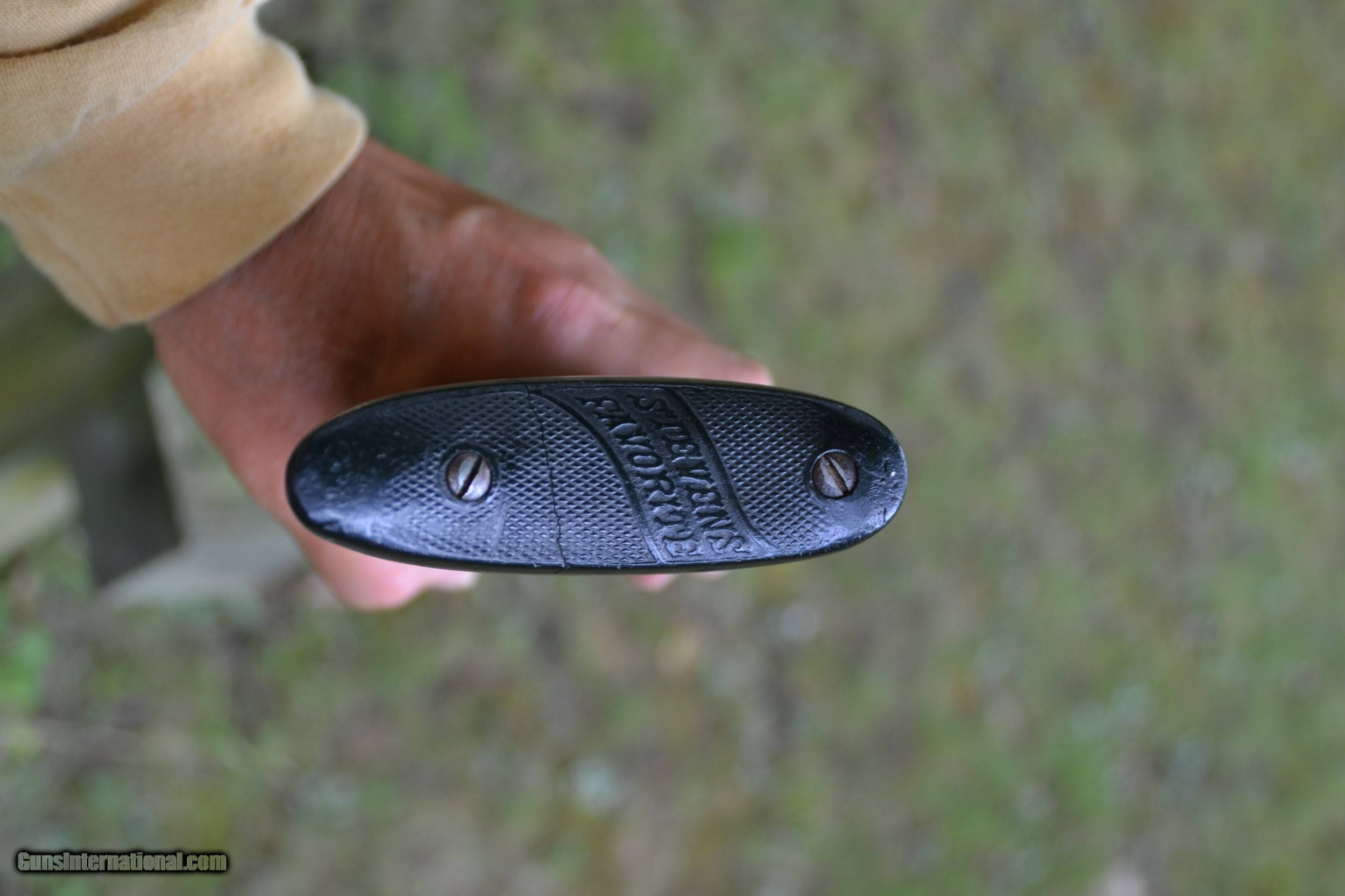 Description: THIS GUN HAS BEEN SOLD TO STUART. THANKS. This one is a .22 takedown, serial # S 550, two line address, half round, half octagonal barrel, putting it between 1894 and 1920. Decent condition except for a few "minor" beaver attacks on the buttstock. The beaver was dispatched and his hide sold for beer money in 1932. The butt plate has a hairline horizontal crack. As far as a cool little rifle goes, this one fits the bill and would be a great first rifle for a young one (pronounced as "young in" in Southern IN). Buyer pays shipping and yes, I will even break it down to save you money on the USPS new length sur charge. Yeah, I can send you more/better/specific pics if you need them. If you ask me how it groups at 50 yards, I may have to track you down and beat you over the head with it. OK, that might have been a little harsh, but you get the general idea. Buyer pays shipping. SOLD Rifle Caliber: .22 Long Rifle |